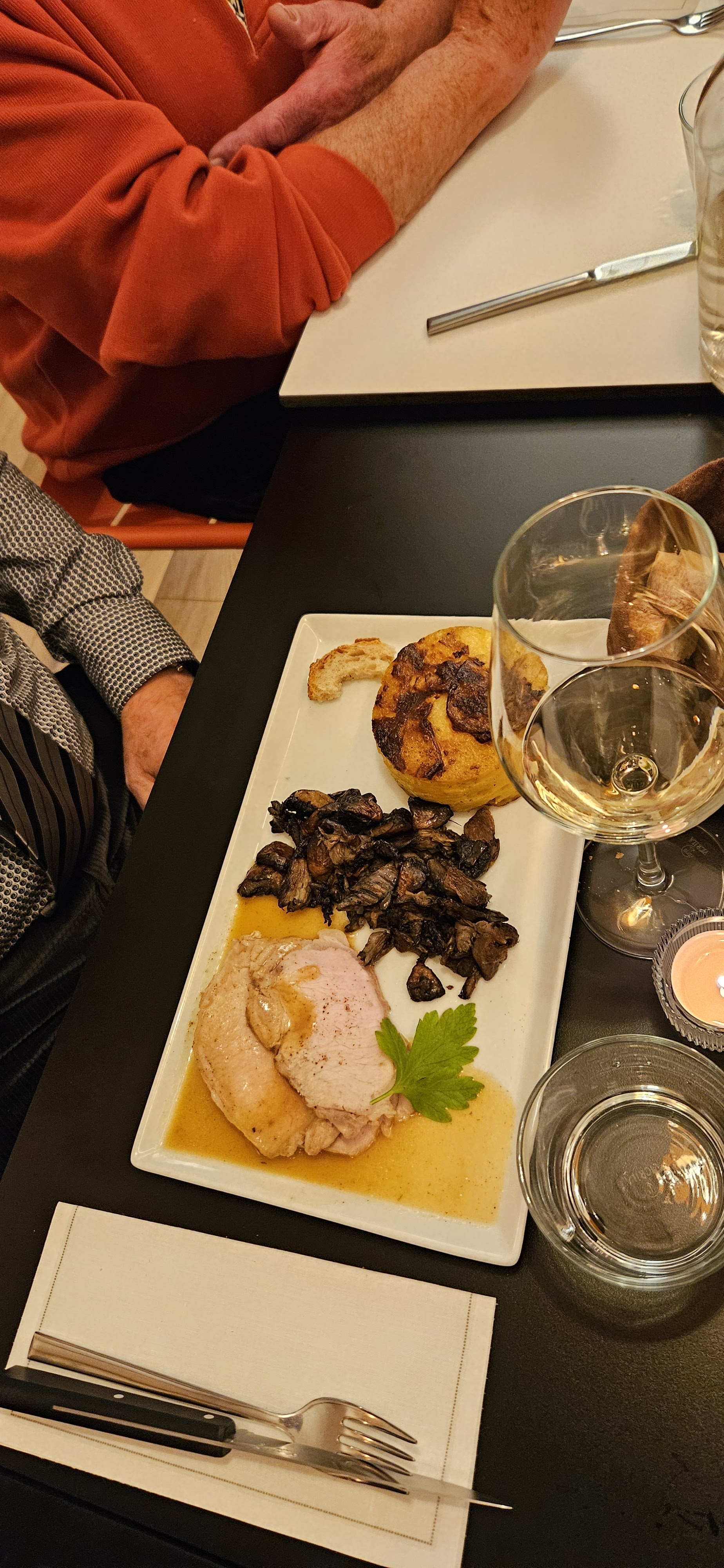 Très bon repas serveuse professionnelle qui connait parfaitement son travail et les produits de la carte. Il faut absolument réserver . Le service a été très long après le plat chaud .
