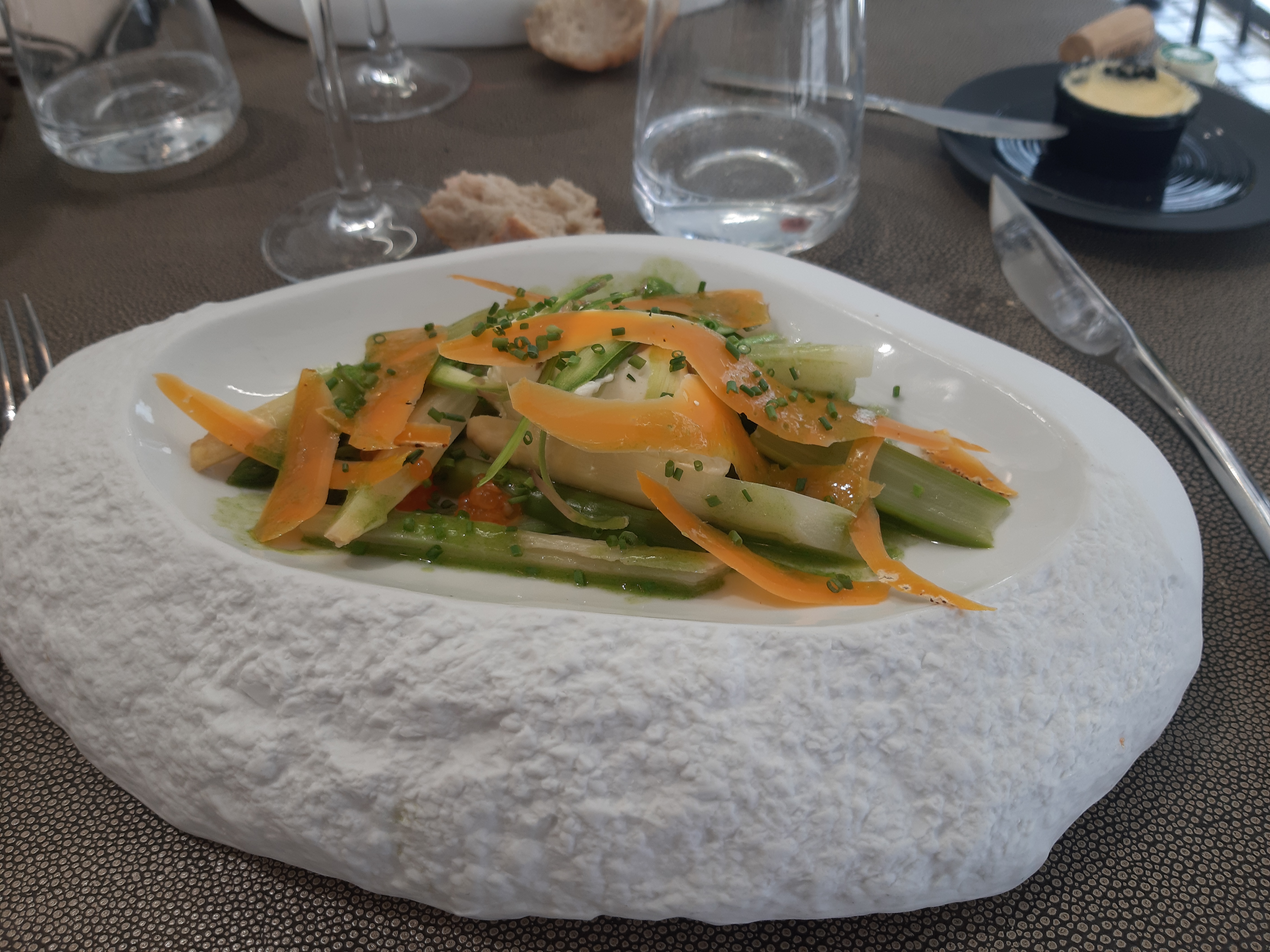 Nous avons passé un excellent moment Un menu dégustation digne d 'un restaurant étoilé Cuisine raffinée travaillée avec des produits frais Seul bémol, le serveur acariâtre qui nous a pris les commandes des apéritifs Fort heureusement , la serveuse plus âgée a pris la suite . Très attentionnéeet et à notre écoute malgré qu 'elle assurait seule le service de la salle Nous reviendrons sans aucun doute