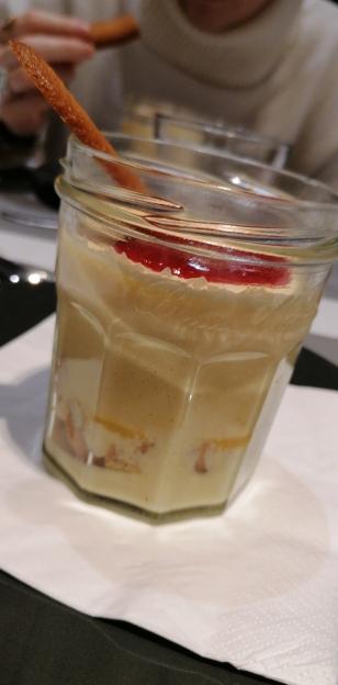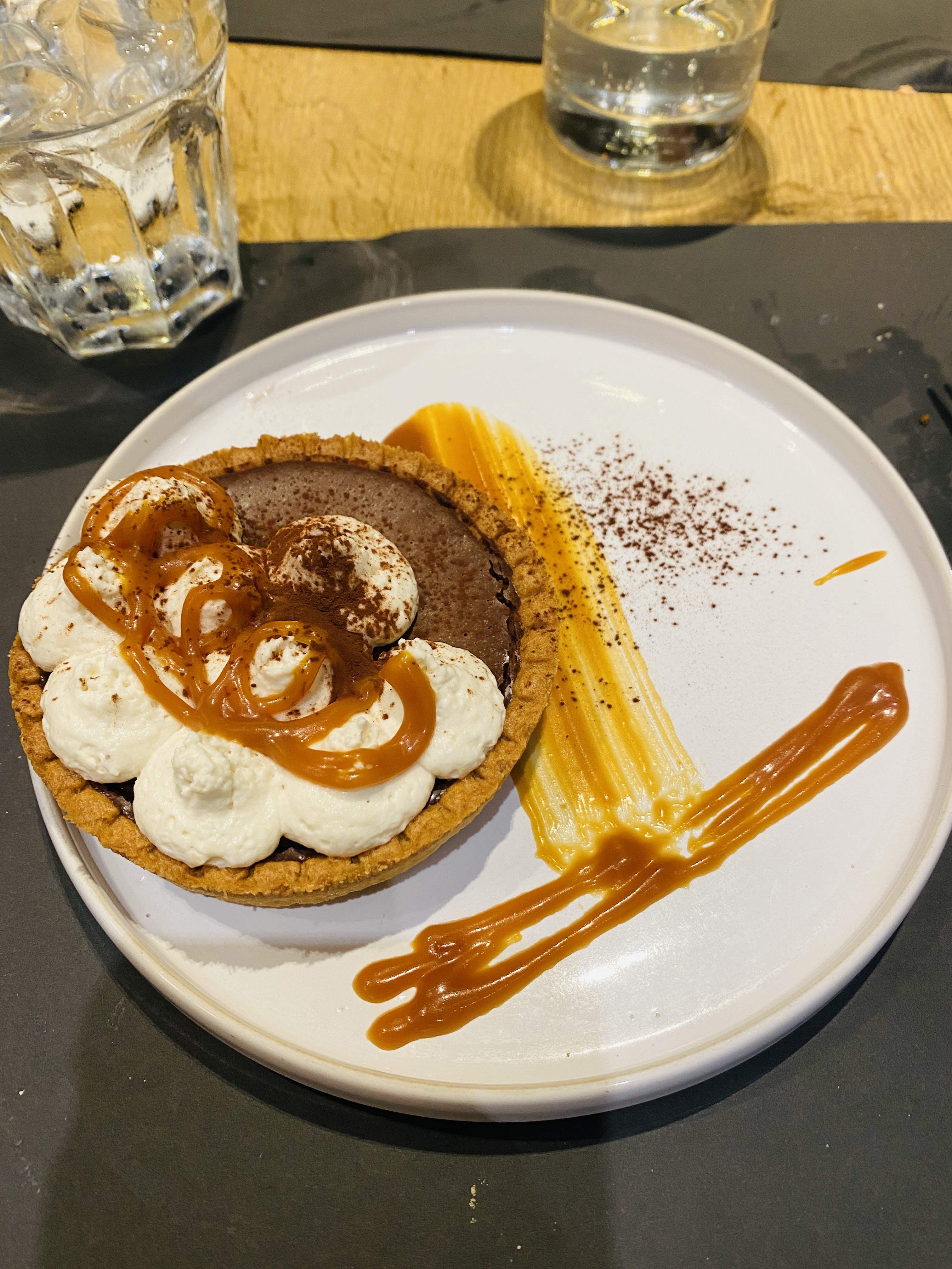 Lieu sympathique, personnel sympathique. Nous avons été déçus par la cuisine. Velouté de butternut avec ses graines, posées juste nettoyées, pas grillées, bof. Saumon au miel, bon, avec un carré de polenta, pas fan. Crème brûlée, trop compacte, pas de goût. Duo de chocolat et fruits rouges, c'était un gâteau au chocolat avec à côté une mousse de fruits rouges et une barre de chocolat au milieu, cela semblait sortir d'une boîte et non d'une cuisine.