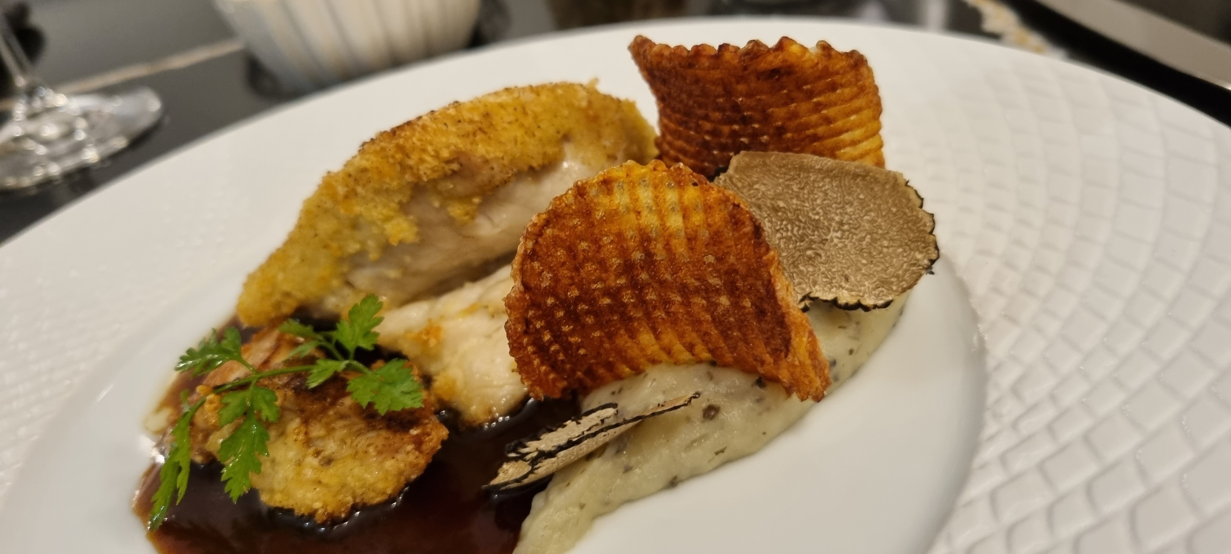 Accueil impeccable et sourire au rendez-vous. Un petit apéritif au comptoir avant de me lancer et une table située près de la terrasse. Le menu laisse un large choix et la carte bien garnie propose entre autre des ravioles d'escargots en entrée et des ris de veaux parfaitement cuits accompagné de truffes finements tranchées. En dessert je me suis laissé guidé par le serveuse qui visiblement avait due rester attentive à mes choix pour me conseiller un delicieux dessert au citron finement présenté et gustativement parfait. Les prix sont justes au vu des produits travaillés et de la qualité du dressage harmonieux et soigné. Bref la fête est dans l'assiette et aiguise les papilles. Carte des vins très garnie et variée de vins du Médoc et d'ailleurs. Un endroit idéal pour déguster de bons mets dans un cadre simple et paisible. Pas de bling bling mais une association de professionnalisme et de bonne humeur en font à mon goût une adresse à conseiller.