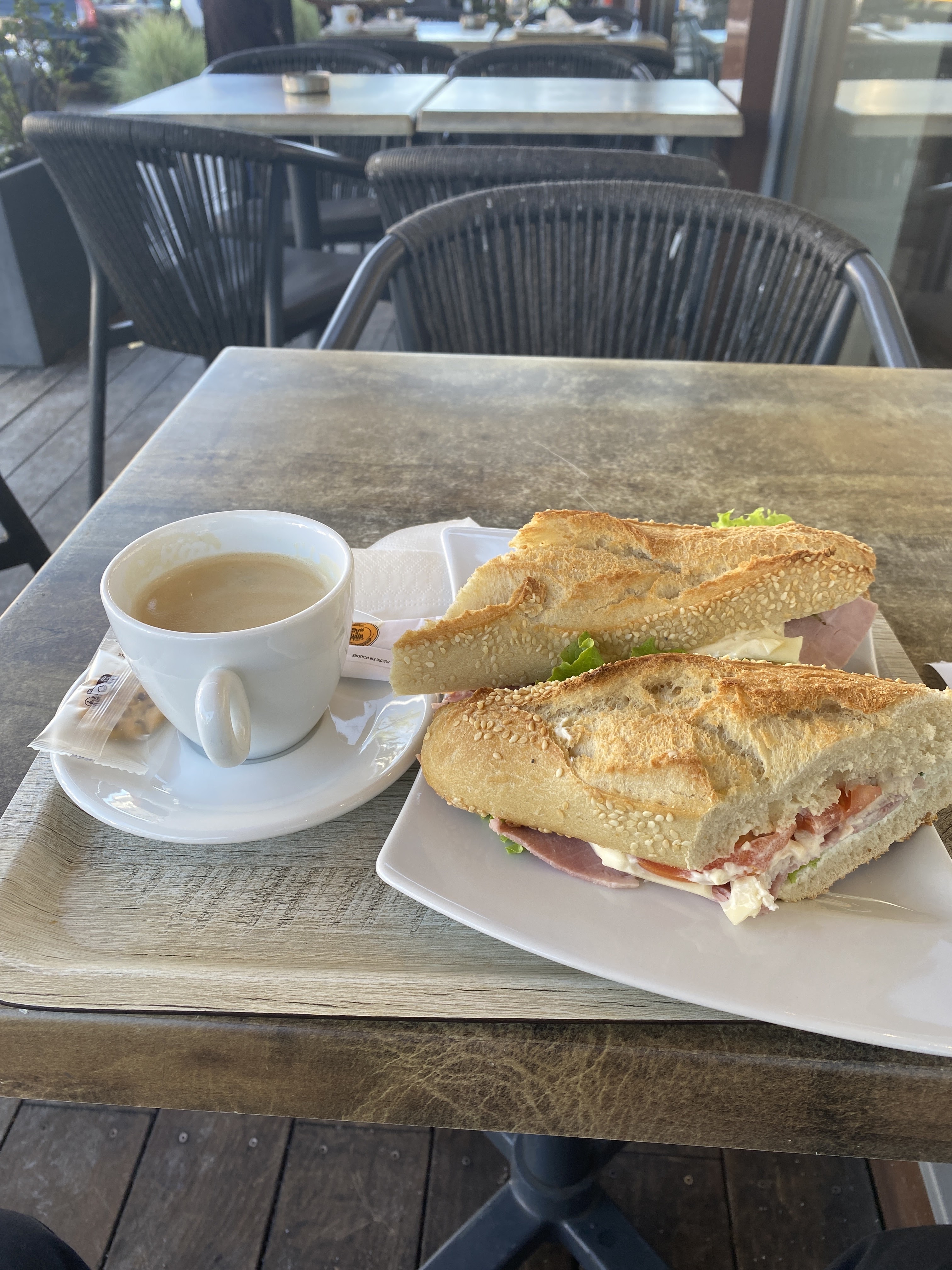 Logeant dans un hôtel sans service petit déjeuner, je suis venu le prendre dans cet établissement. Accueil agréable des vendeuses. Service du plateau à ma table en extérieur. Bonne boisson chaude Très bonne viennoiserie Bref belle prestation. Je reviendrai