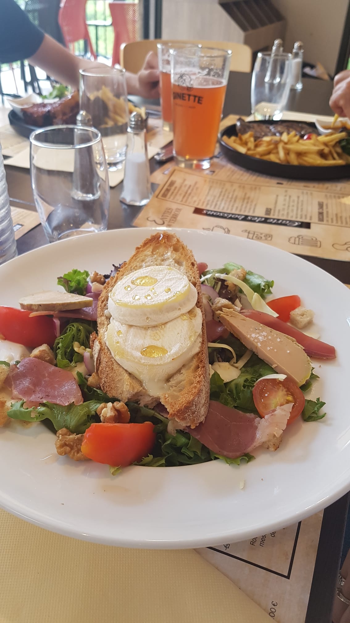 Très bon moment passé. Les assiettes de salade « Amadourienne » et « père coin coin » étaient excellentes. Les produits étaient bons et la vinaigrette (avec une légère touche de miel) rajoutait une petite touche sucrée délicieuse. Le jeune serveur était très calme et sympathique. Je recommande l’adresse.