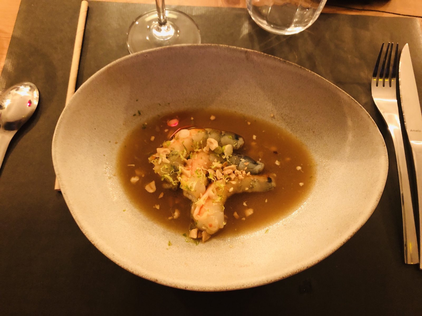 Petit restaurant, décoration sobre et chic, dans une ambiance feutrée avec un fond sonore zen. La cuisine est élaborée avec des produits de qualité et des découvertes gustatives de l'amuse bouche jusqu'au plat. Le prix est justifié.