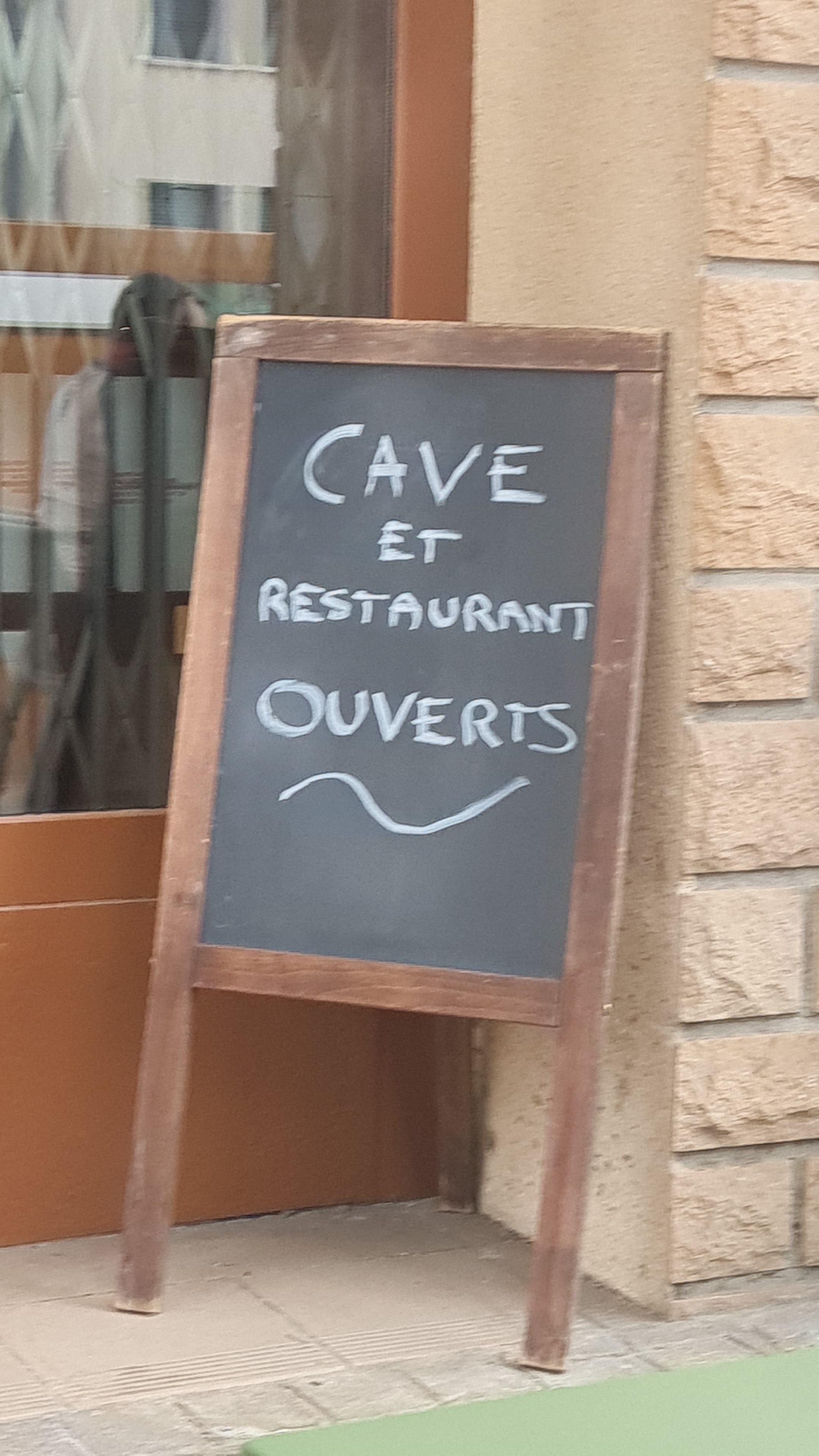 Arrêt déjeuner. Carte réduite signe de choix sur la qualité. Verre au vin. Caviste en plus.