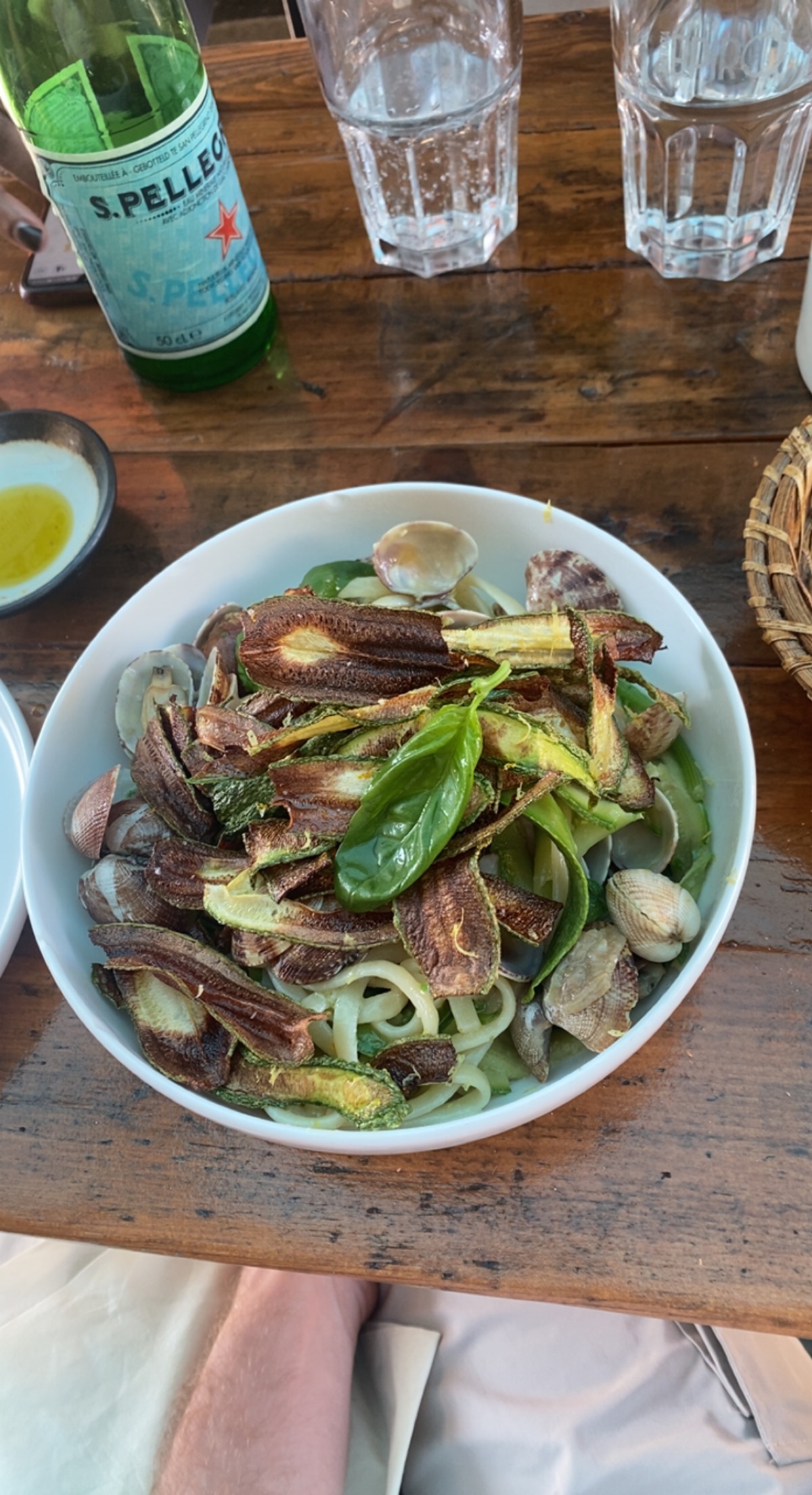 Cuisine goûteuse et originale, pâtes aux courgettes, palourdes, moules et poutargue divines. Vins vivants. Service amical et efficace. Bravo à l’équipe !
