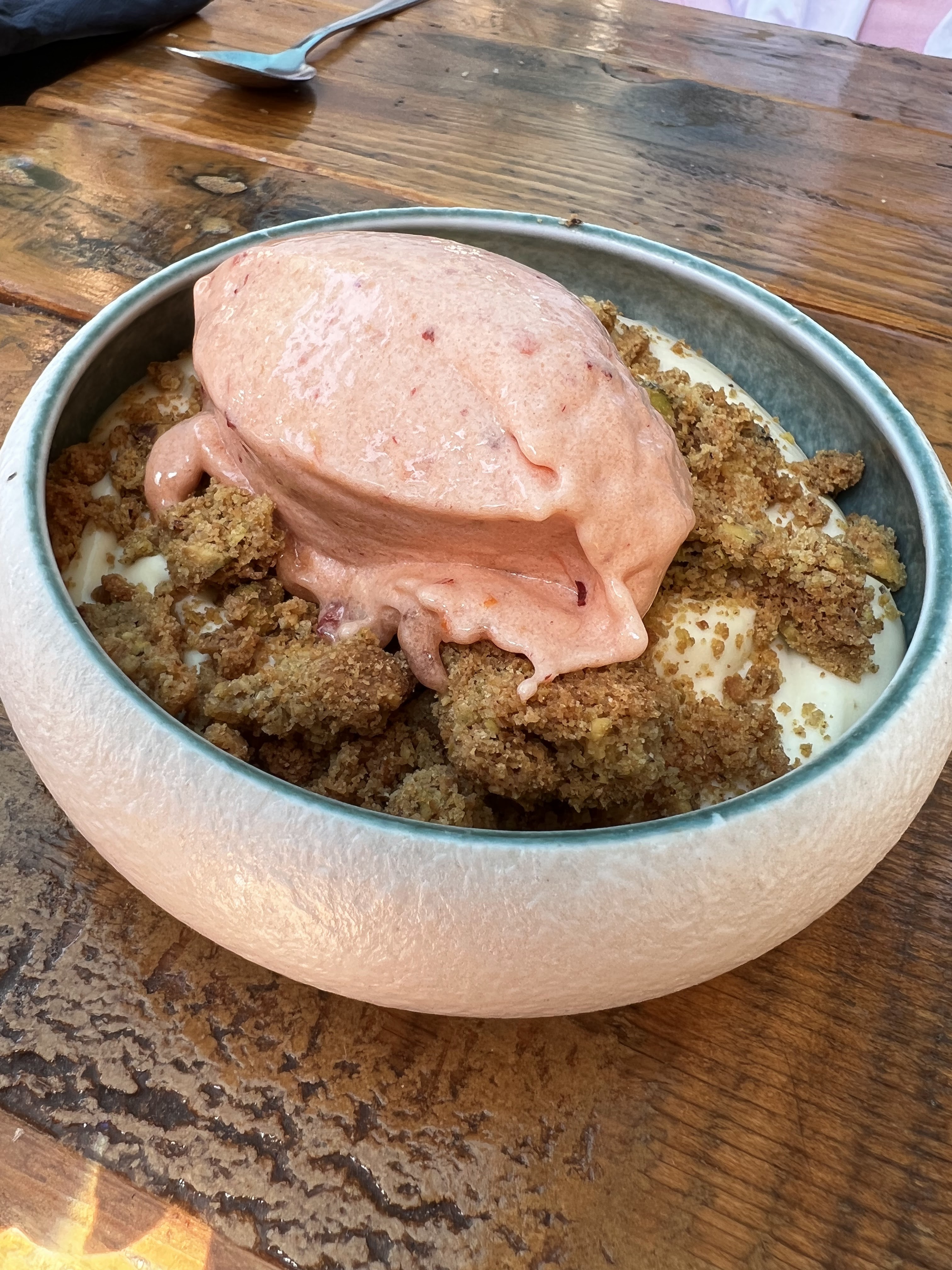 J'ai vraiment apprécié le dîner ici! J'ai eu le risotto accompagné d'un vin blanc recommandé par le serveur. Nous avons pris le crumble en dessert qui était également délicieux.