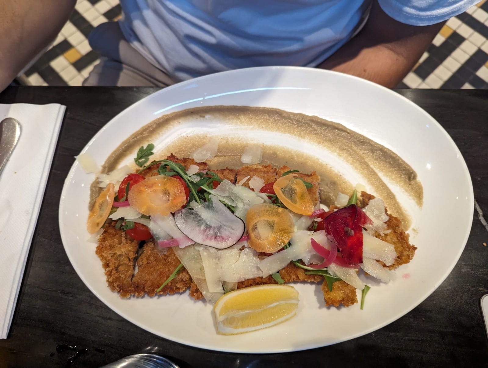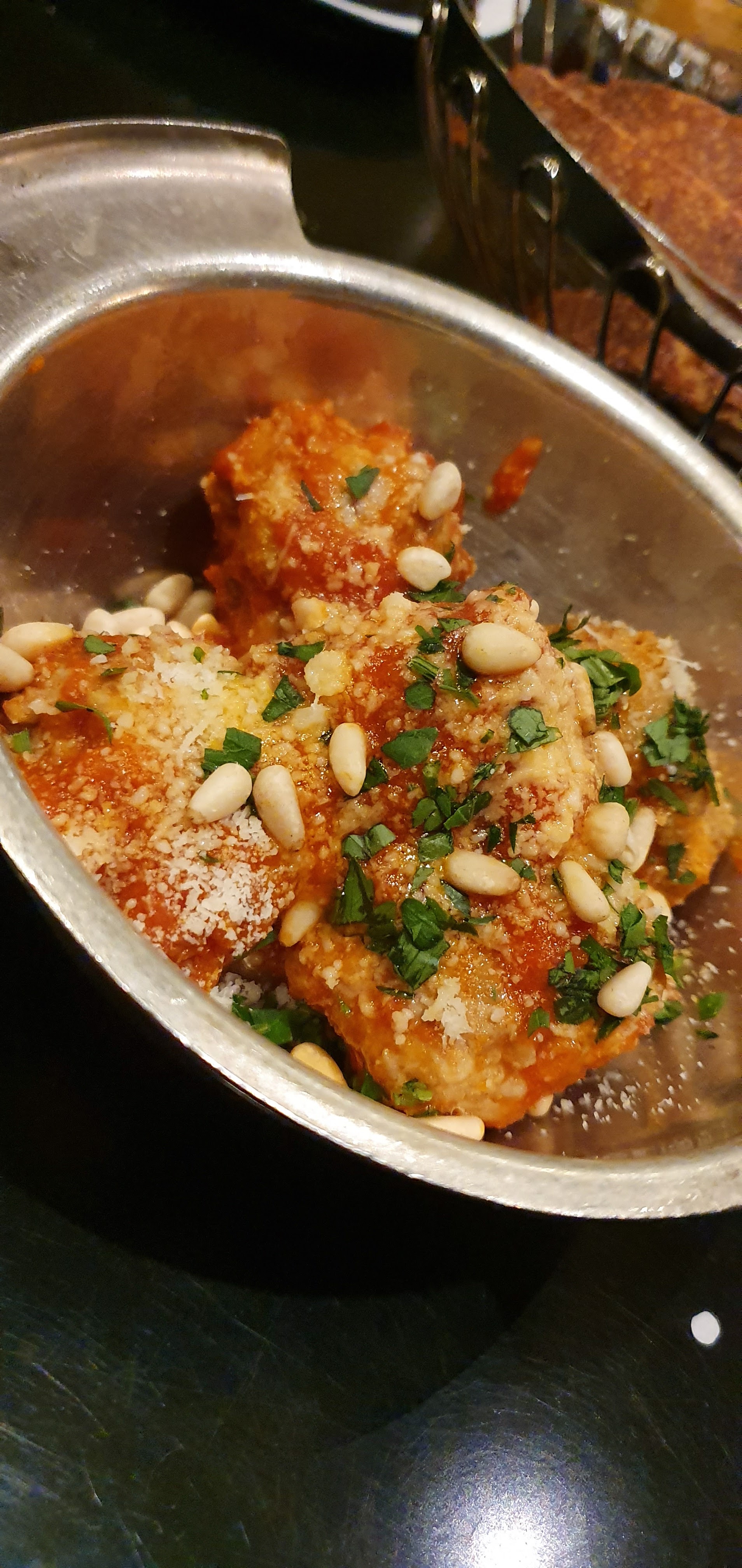 Globalement déçu. Tramezzo, vu ça comme un petit sandwich sur du pain italien, en fait, pain de mie, fait à l'avance. Pas terrible. Le Vitello, complètement raté, petite portion, veau caché sous une tonne de parmesan (?), goût ruiné par un anchois au sel dont la place est très discutable. Milanaise sans spaghettis (??) - un peu l'usage pourtant... Panure trop croquante, mais bon quand même. Donc, pas terrible au final, SAUF le tiramisu qui est un des meilleurs dégustés au restaurant, très bien imbibé d'un café bien goutu, une réussite. Vin au verres pas terrible, et un peu chaud. Service sympathique mais pas au niveau.