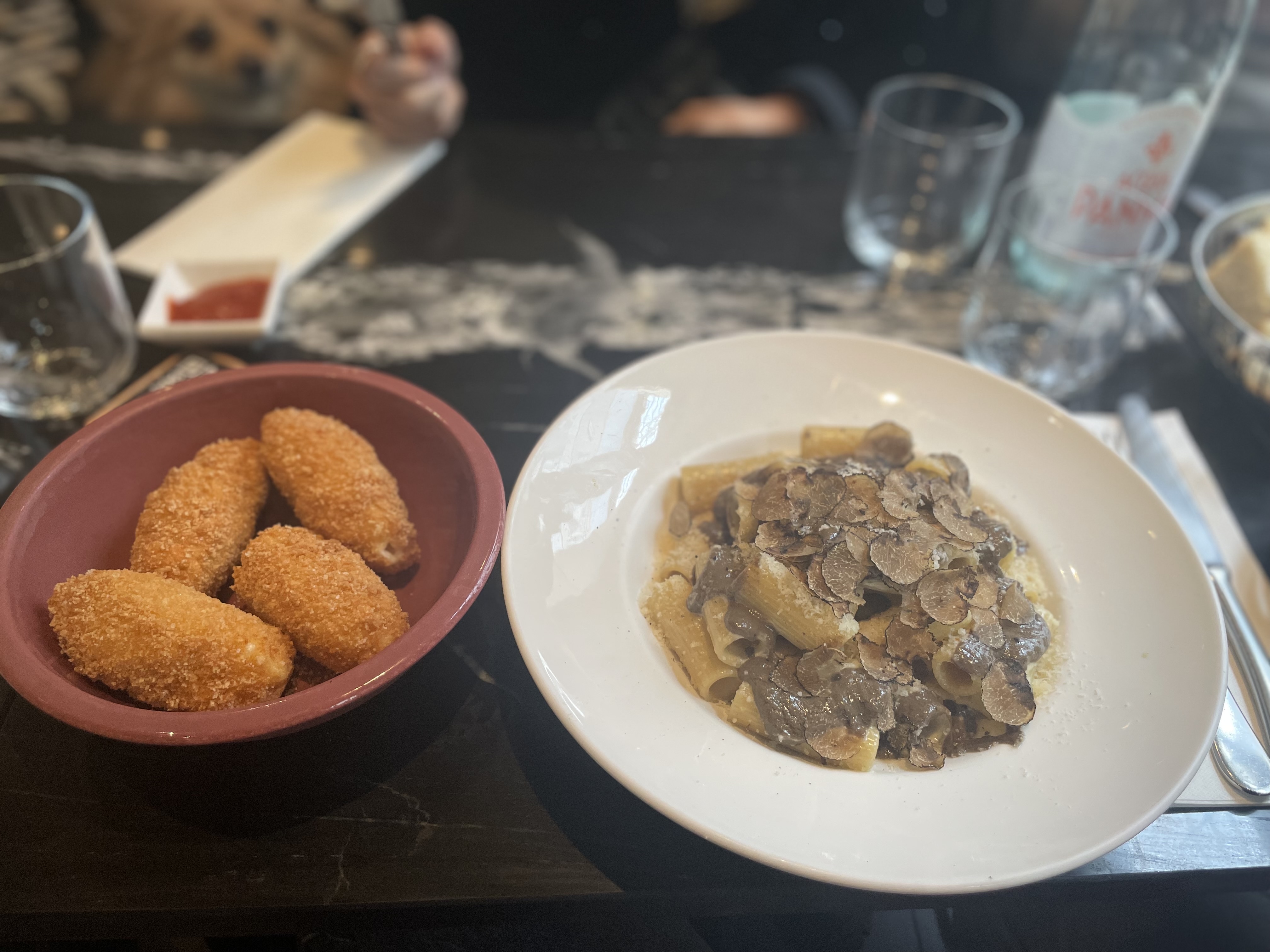 Très déçues... 18€ pour des pâtes avec de la brebis râpée et de la crème fraîche.... Nous venions pour manger des pâtes à la truffe fraîche, à 20h30 on nous annonce qu'il n'y en a plus.... Très déçues par la qualité des plats. En revanche, les serveurs étaient très agréables
