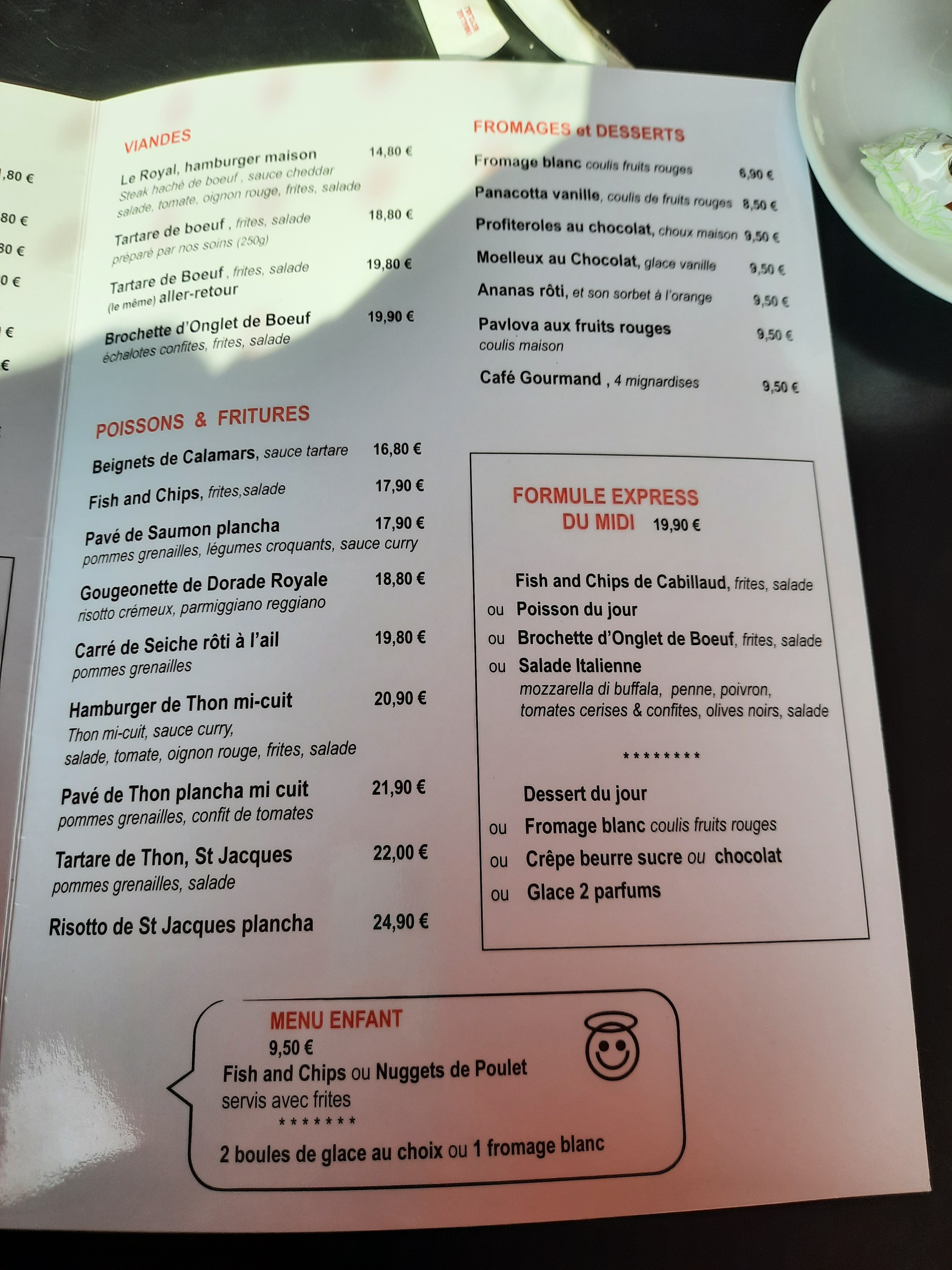 Restaurant avec vue mer Bon repas et prix raisonnable