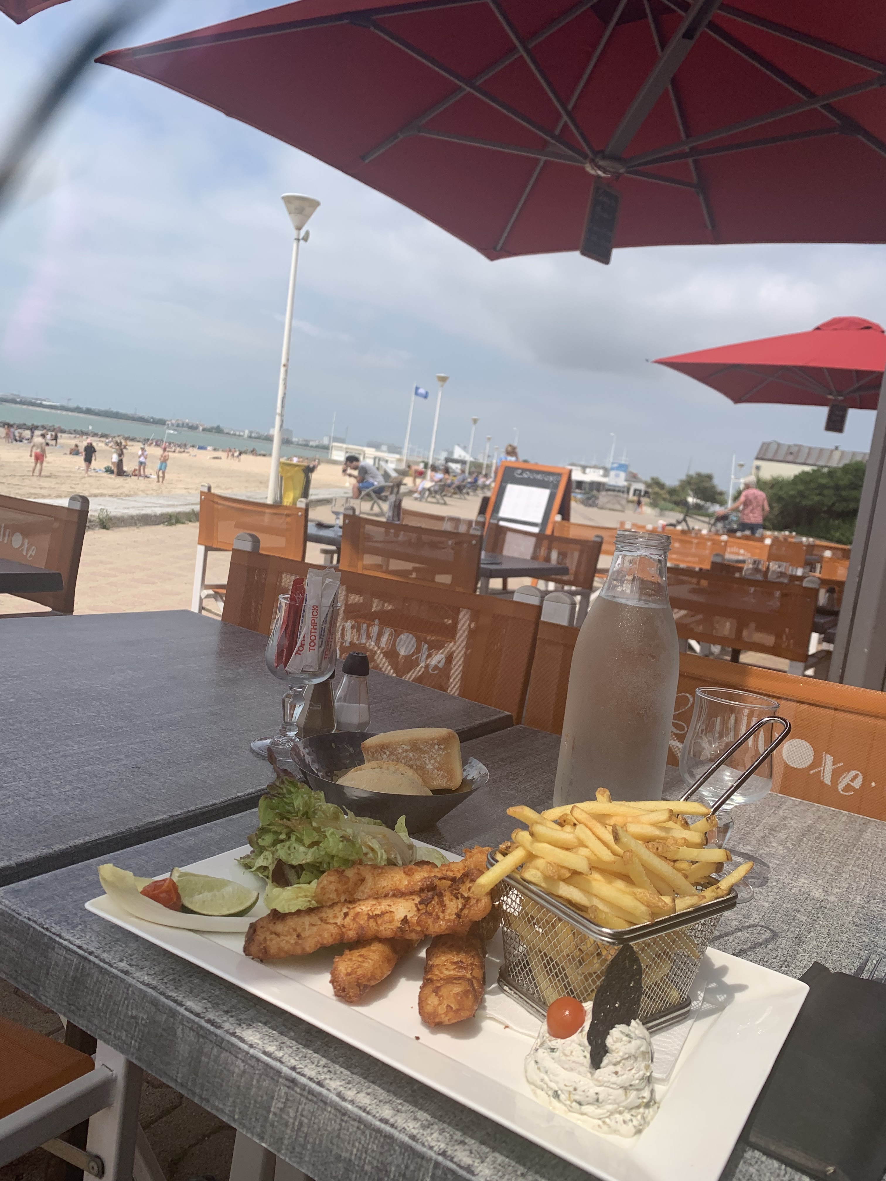 Restaurant super bien placé avec une belle vue de la plage des minimes, très bon service avec des serveurs et serveuses souriant et attentifs au clients je reviendrais avec plaisir .