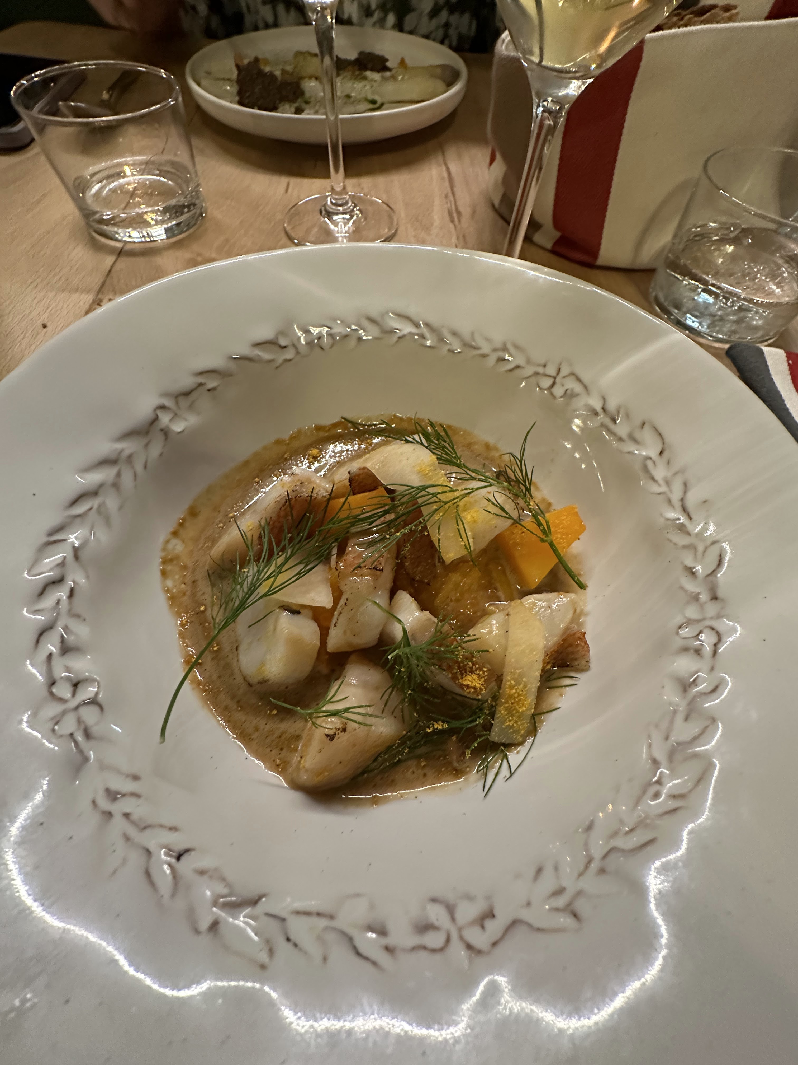 Cuison parfaite du lieu jaune,de la criée, tout est juste,bien equilibré. Acceuil sympathique,et de bon conseils On reviendra avec plaisir