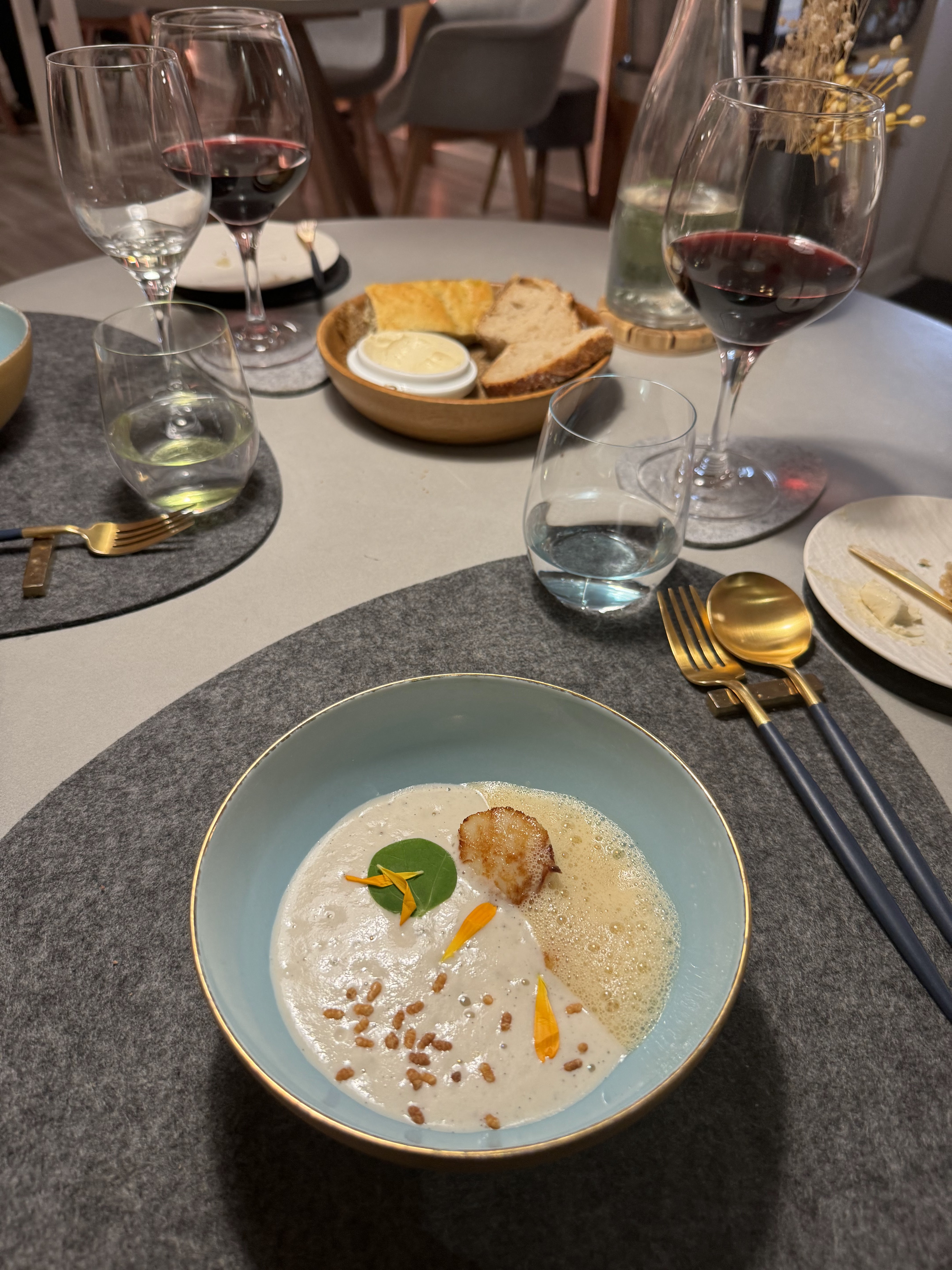 Restaurant trouvé pour l’anniversaire de mon fiancé. On a tous les 2 adorés! Restaurant très chaleureux et familiale. Ambiance calme et très luxe très propre. Cuisine très spécial avec des ingrédients nouveaux pour ceux qui ont l’habitude de faire des restaurants. Expérience au top! Accueil au top! On reviendra!