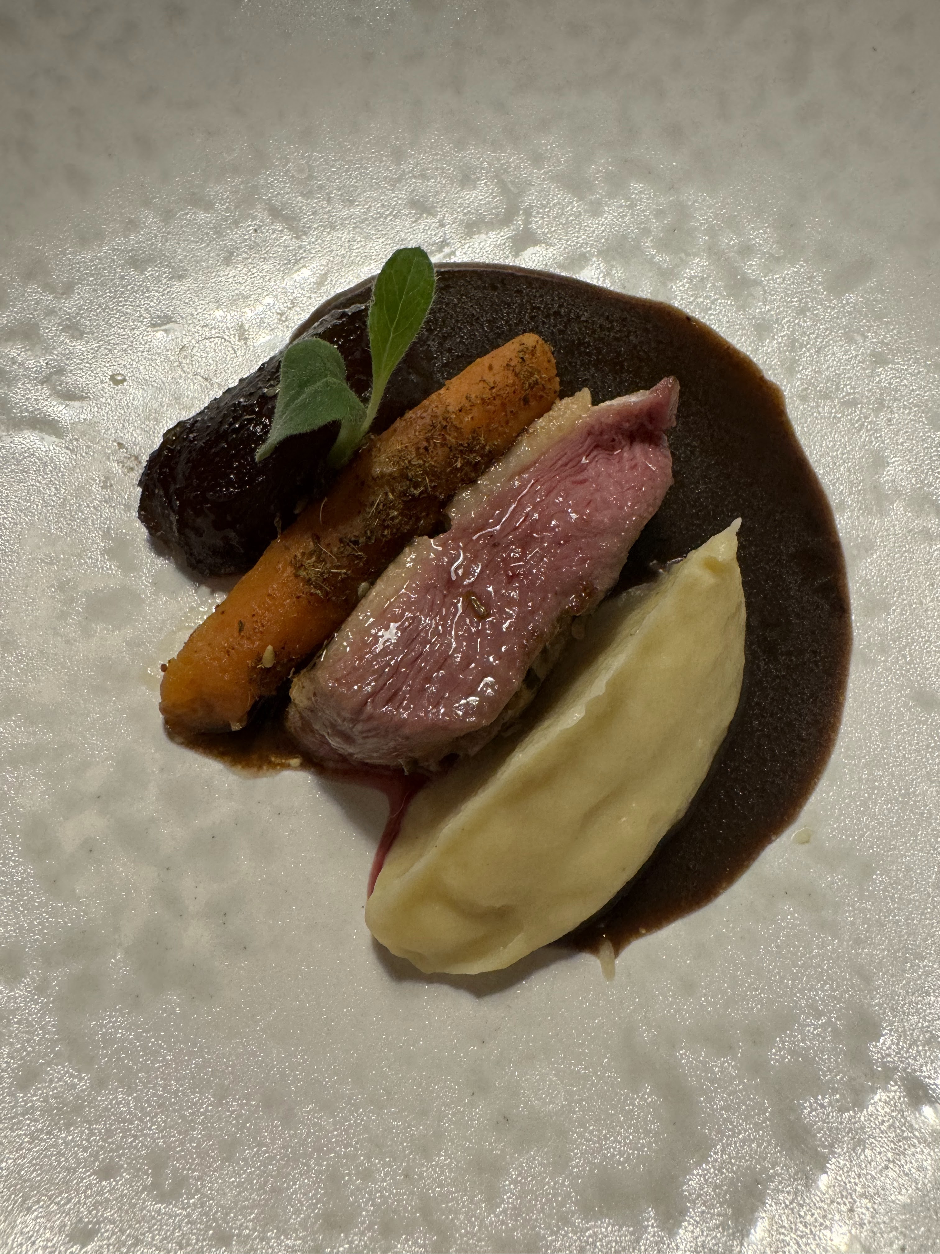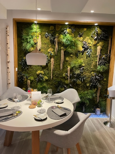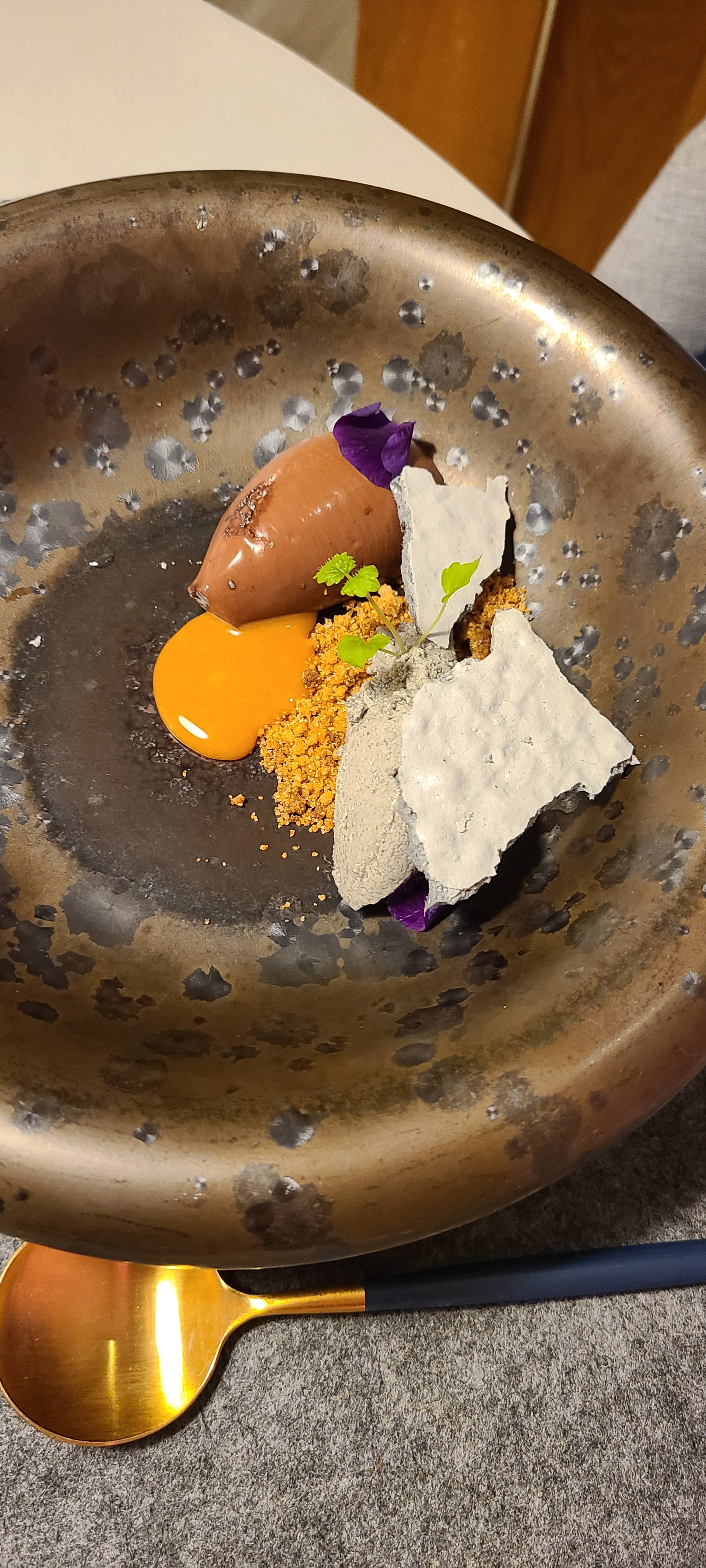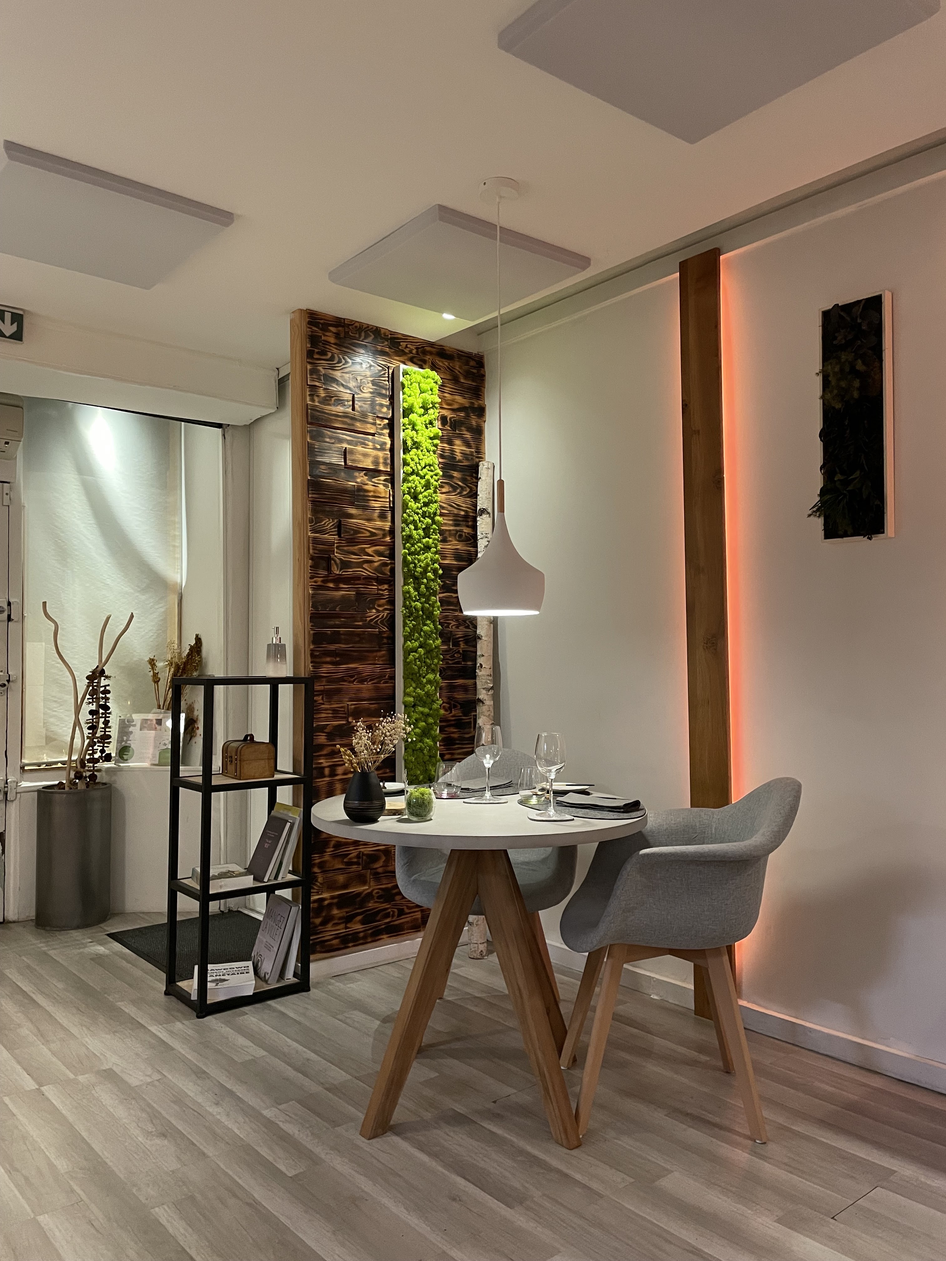 Une soirée remarquable avec un accueil du chef lui-même dans un cadre hyper cosy avec des matériaux nobles/brut , un magnifique mur végétal, les plats étaient tous sublime, la nage de concombre au jasmin avec un coté fumé était a tomber, les cuissons exceptionnelles du poisson et du canard et un dessert au chocolat avec de belles saveurs boisées pour terminer en apothéose, BRAVO et merci pour cette belle soirée .