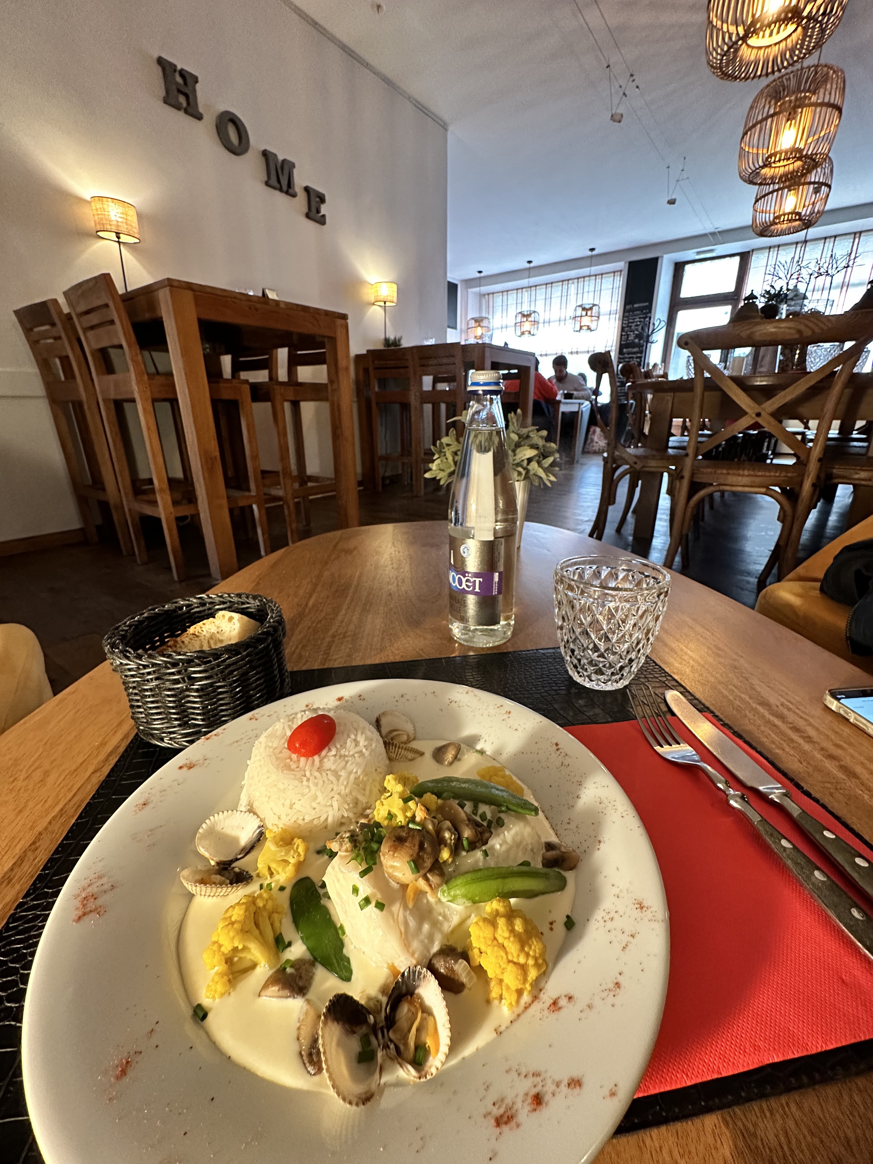 Ambiance super chaleureuse, déco très tendance, repas sympa mais classique.