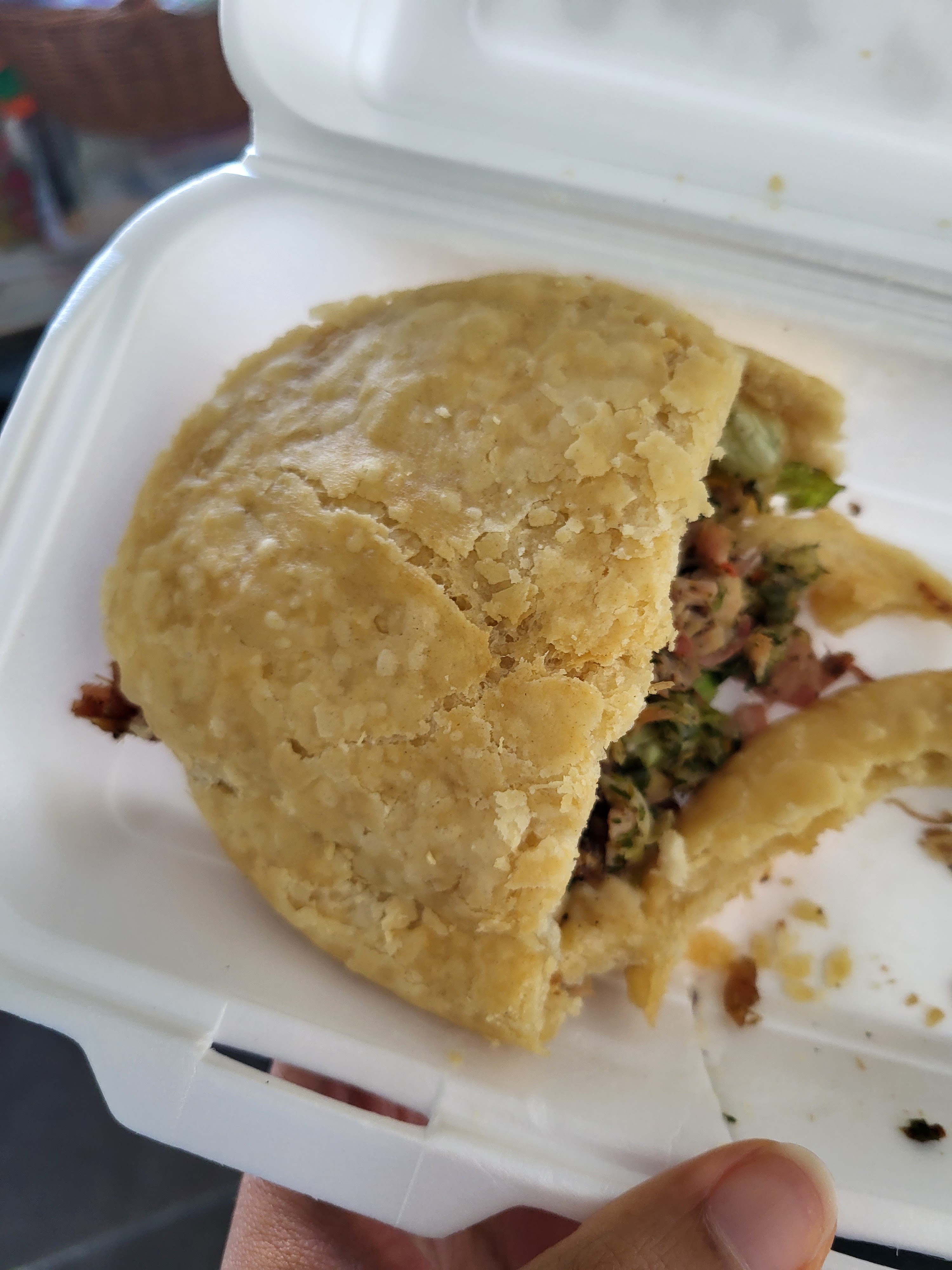 Bokit pas coloré bokit blanc comme du pain non cuit kokit avec des trous donc sauce plein les doigts un peu déçu