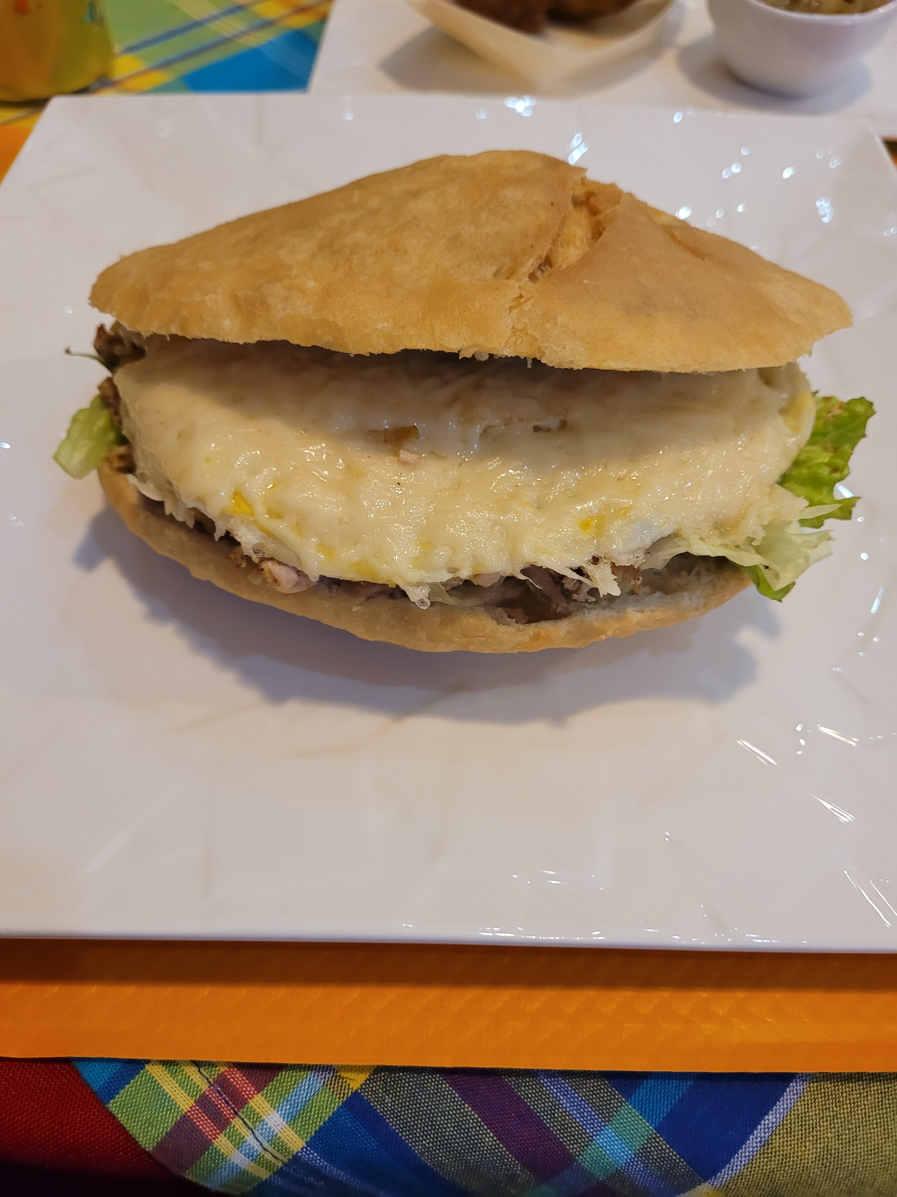 Un accueil très chaleureux digne des Antilles. Nous avons eu vraiment l’impression d’être au pays pendant une court instant ☺️ le bokit complet boucané est juste délicieux, c’est copieux aux point que je n’ai même pas pu le finir et en accompagnement frite de patate douce 🍠 Je recommande vivement si vous voulez faire escale aux Antilles.