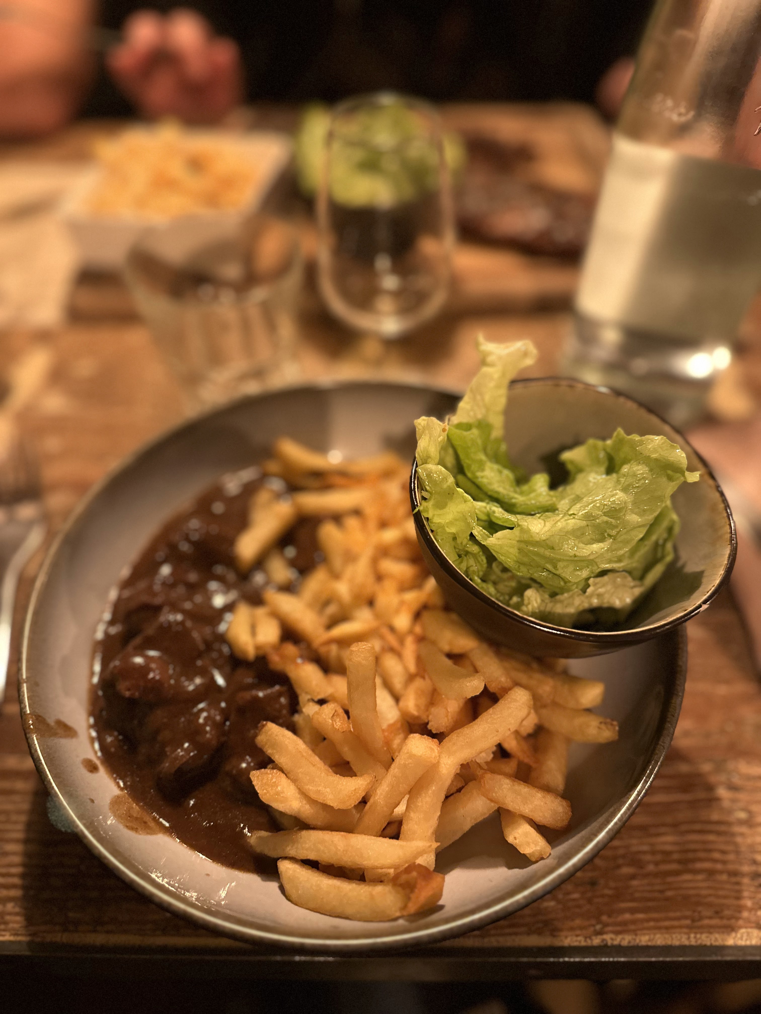 Un vrai Estaminet, décor, ambiance et nourriture. Je crois que je place leur carbonnade en top 1 de toutes les carbonnades que j’ai mangé ( gros morceaux, pas de gras et filandreuse) menu incrusté dans le bois sur chaque table ! 🤪 j’y reviendrai c’est sûr !! Très belle découverte 👍