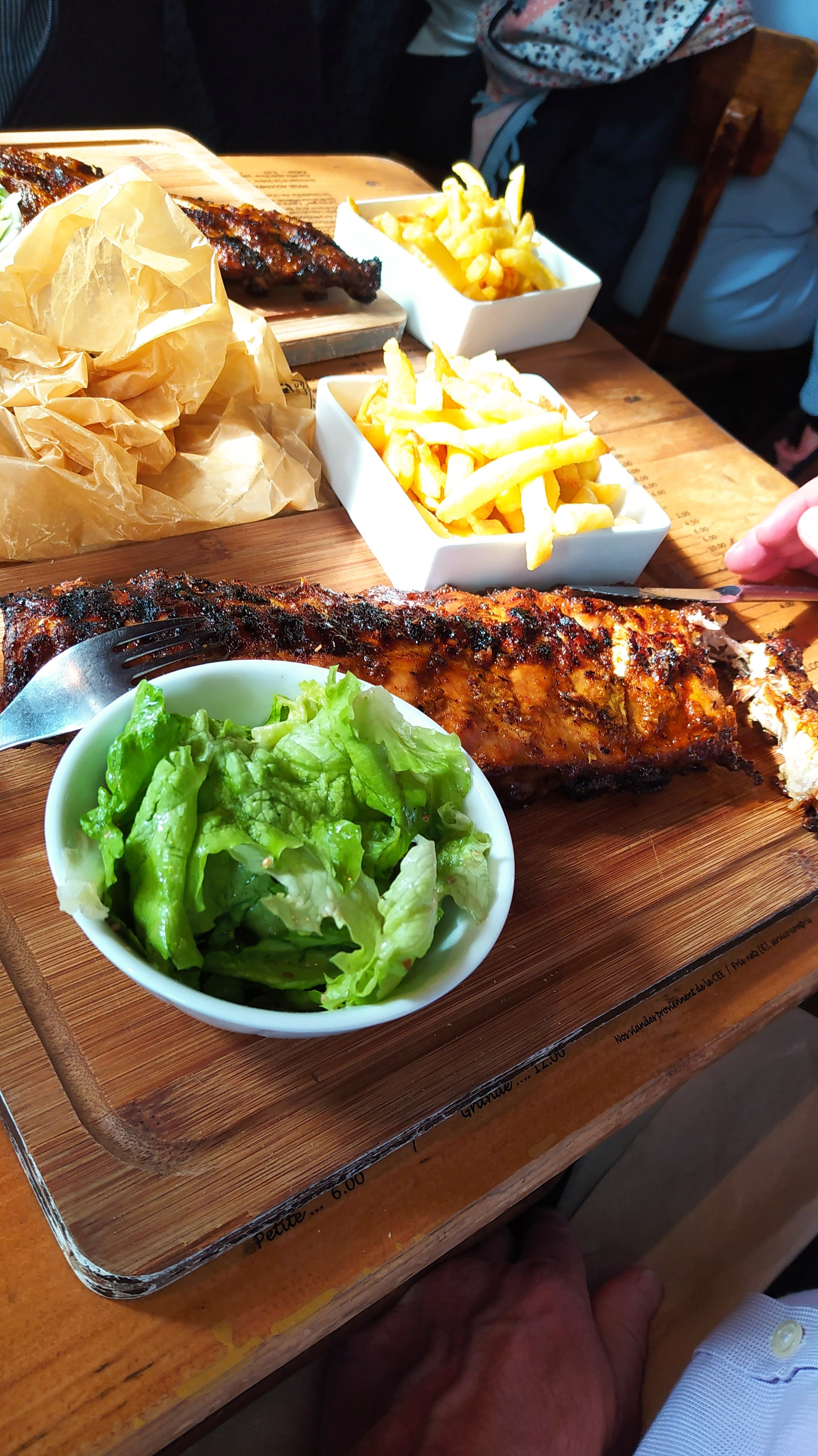 Très belle découverte ! Je n'ai pas eu le temps de prendre en photos les plats tant ils ont été rapidement dévorés. Travers de porc parfaitement épicé, andouillette Et saucisses grillées au feu de bois. C'était un régal! Pour les desserts, une image vaut mille mots! Ils étaient aussi bons que beaux! Sucré, salé, tout est réussi ! Bravo!