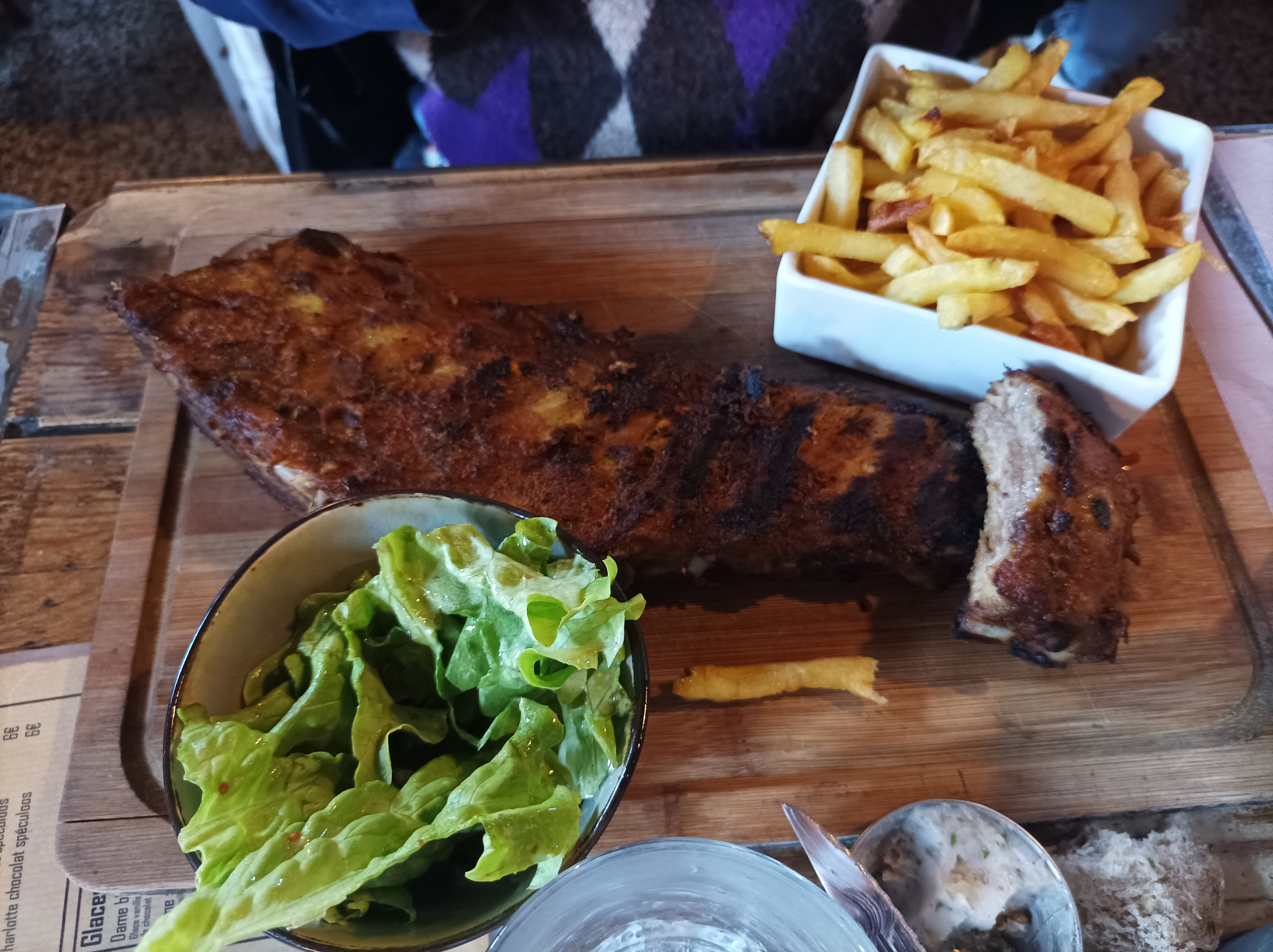 Des supers plats nous nous sommes vraiment regalé. Service un peu long lors de la prise des desserts mais l'équipe est très sympathique. L'ambiance est top avec les grillades dans la salle pour les plus courageux comme nous les tables proches de la cheminée offre un beau spectacle même si il fait très chaud 😄. Dommage pas de duvel pression souci de fut il va falloir revenir pour la goutter.