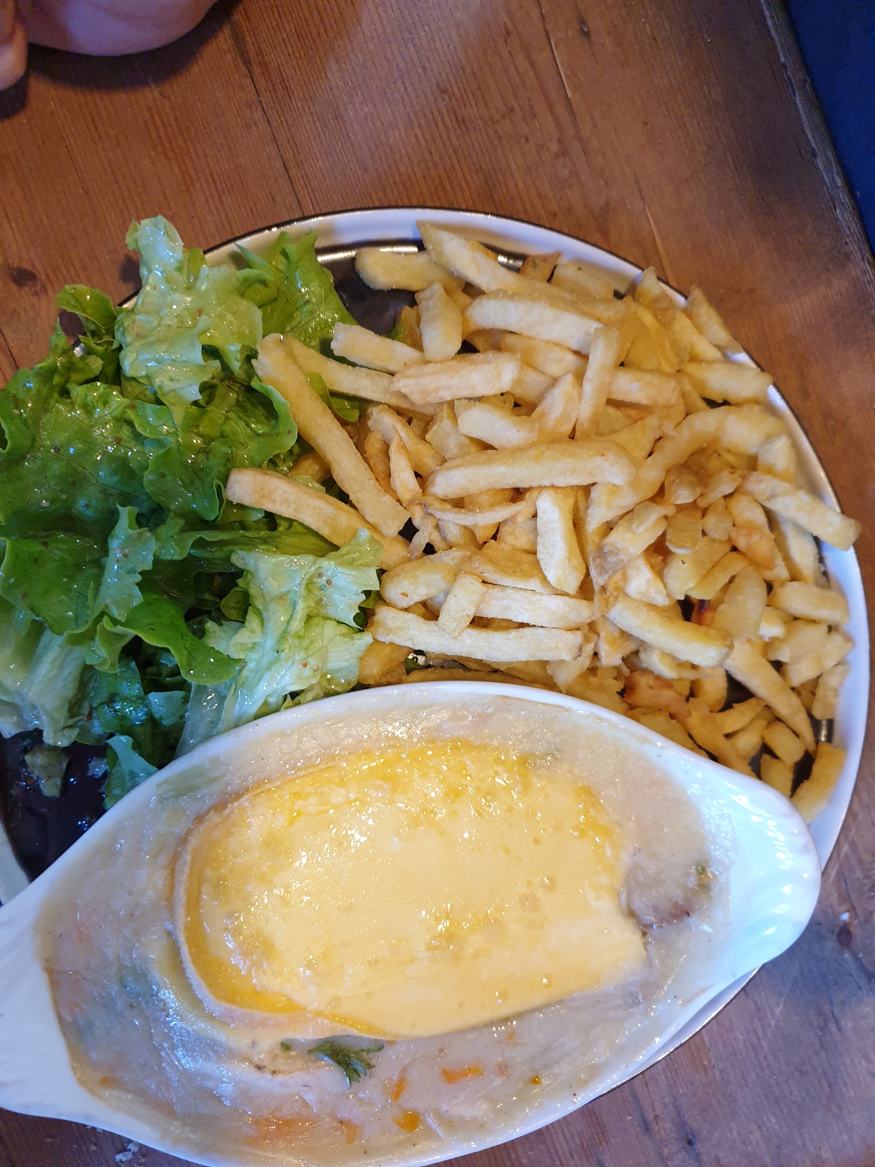 Accueil super chaleureux, établissement avec une culture et une cuisine locale ! Quand on regarde la carte, étant flamand j’avais envie de tout choisir ! Au final nous avons choisit, (après avoir pris une petite planche apéro qui nous a donné l’eau à la bouche ♥️) poulet gratiné au fromage, tripes de porc grillées et les incontournables travers de porcs épicés 😍😍😍