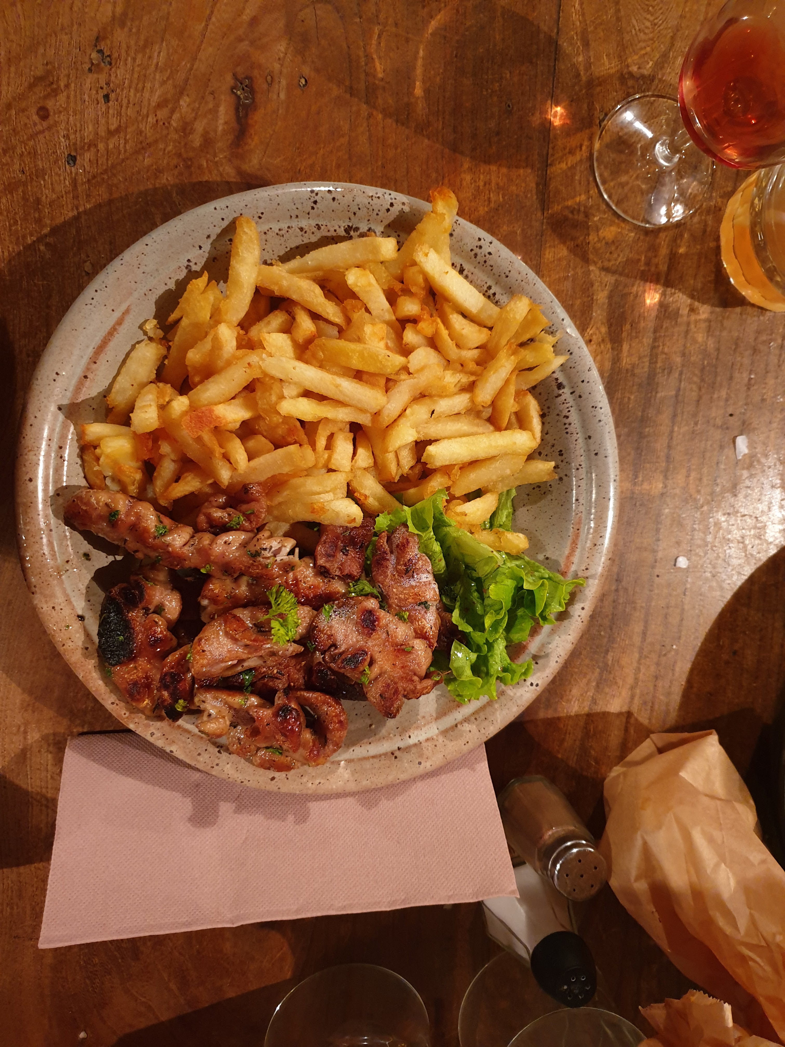 Le cadre est tres mignon, une deco chinée nous plonge direct dans une anbiance d'antan. Une grande cheminée ou grille la viande ! Parfait en hiver. Cuisine simple et tres bien exécutée. Pour ma part, jai pris les trippes grillees ! Un delice! Tres tres copieux ! Personnel jeune et sympathique. Bref une belle adresse ! Merci.