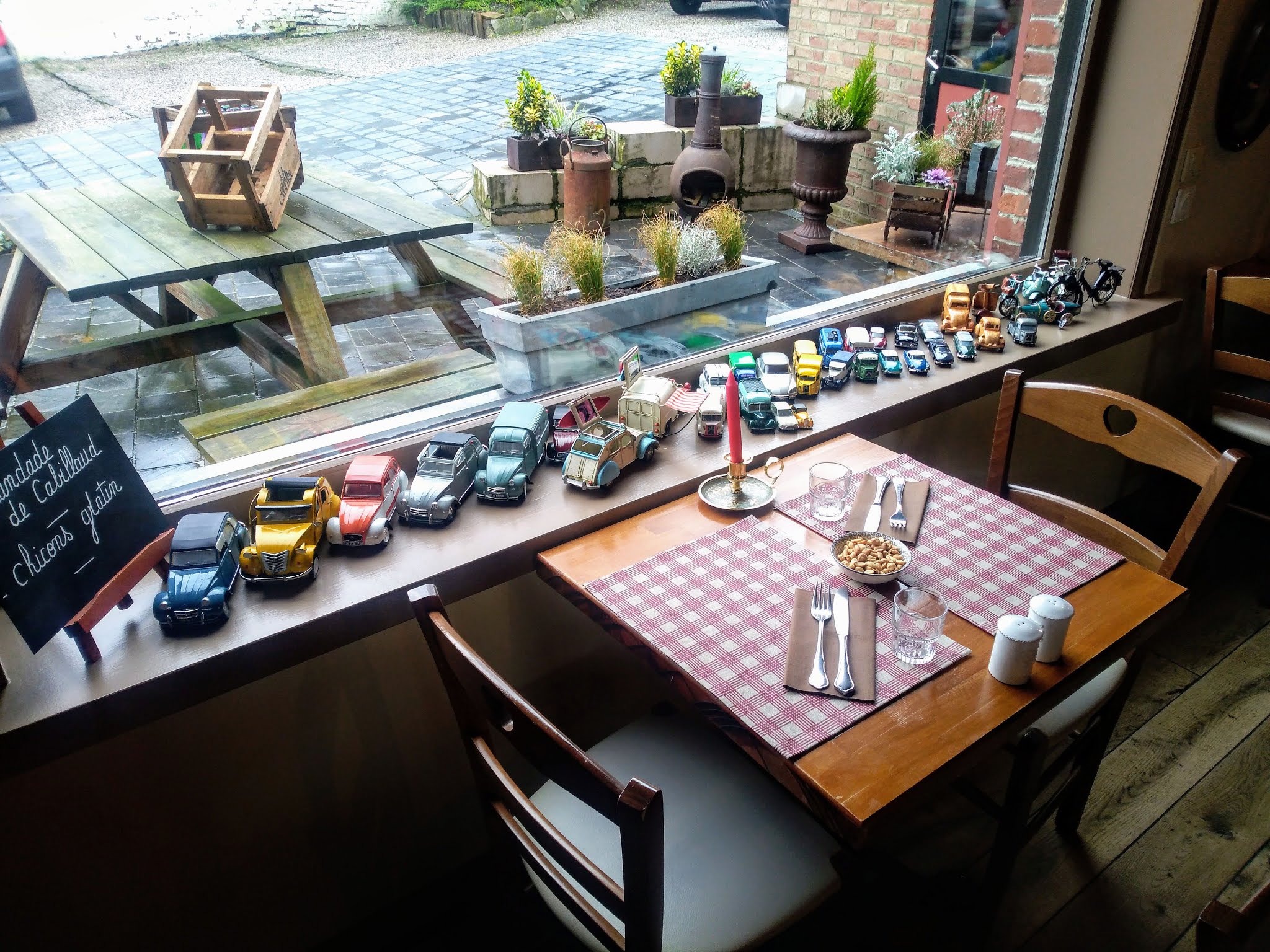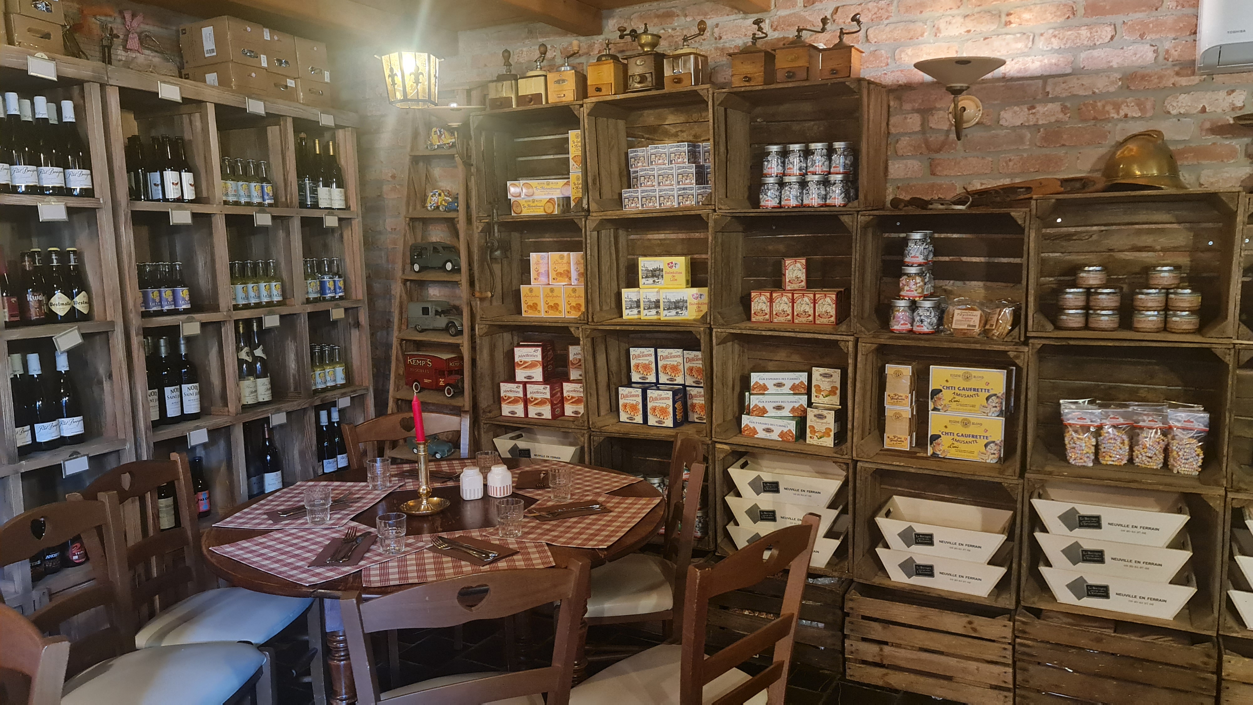 Une adresse qui ne vous décevra pas ! Accueil et service sympathiques, décor rétro dans le pur style estaminet, et les plats... savoureux dans leurs présentations et de grande qualité. Une partie boutique permet d acheter les produits proposés. Un bon conseil : il est impératif de réserver quelques jours avant de venir : le succès du lieu oblige constamment les propriétaires à refuser les clients sans réservation...Par contre, nous avons voulu acheter deux bouteilles de vin de noix...qui nous ont coûté...98 euros ! C est complètement indécent ! C est la dernière fois que nous achetons un produit issu de la boutique...
