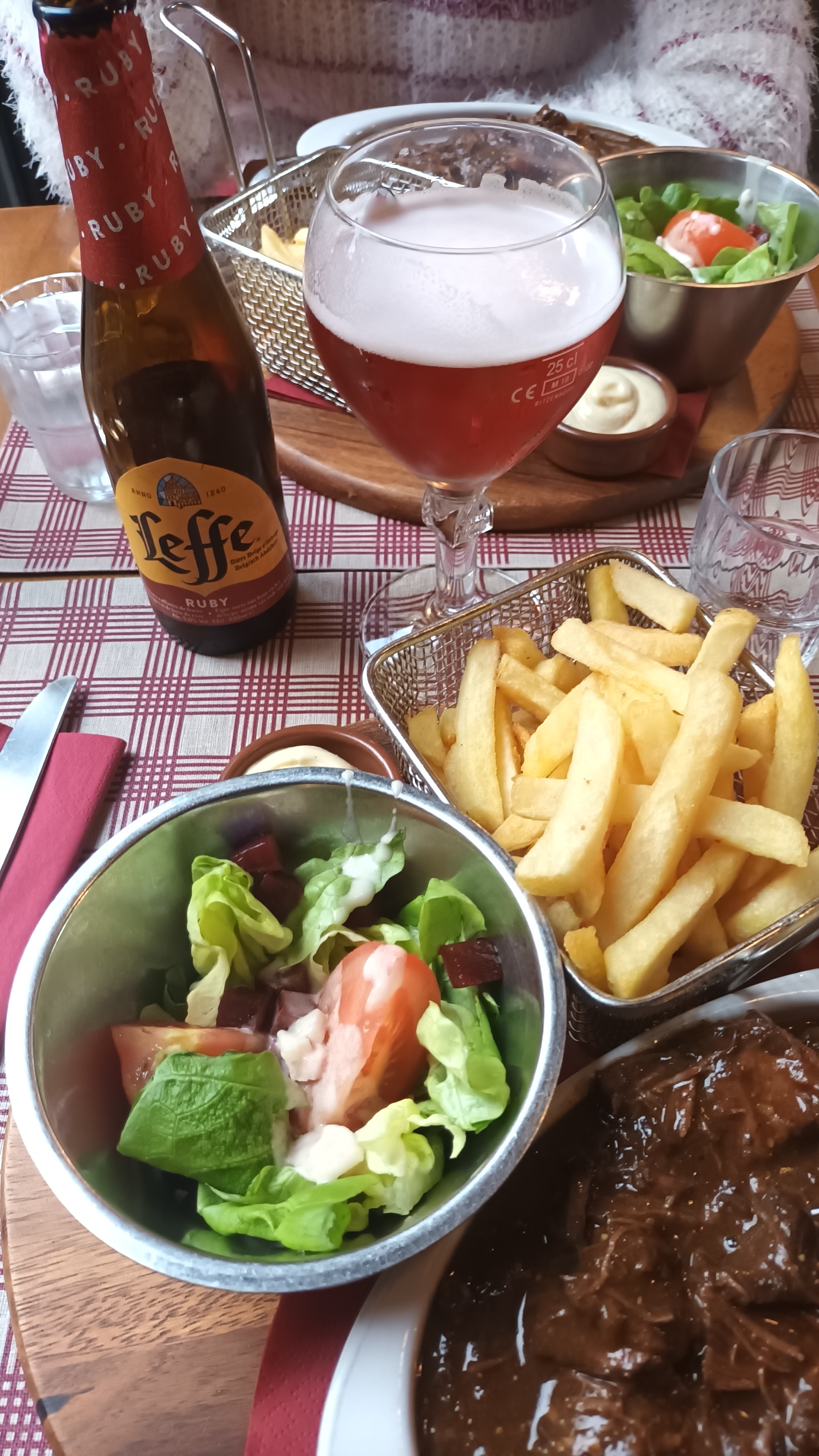 Nourriture fraîche cuisinée généreusement. Les gens sont joyeux et accueillants. Un excellent souvenir. Et, en plus, de la Karmeliet Tripel à la pression !