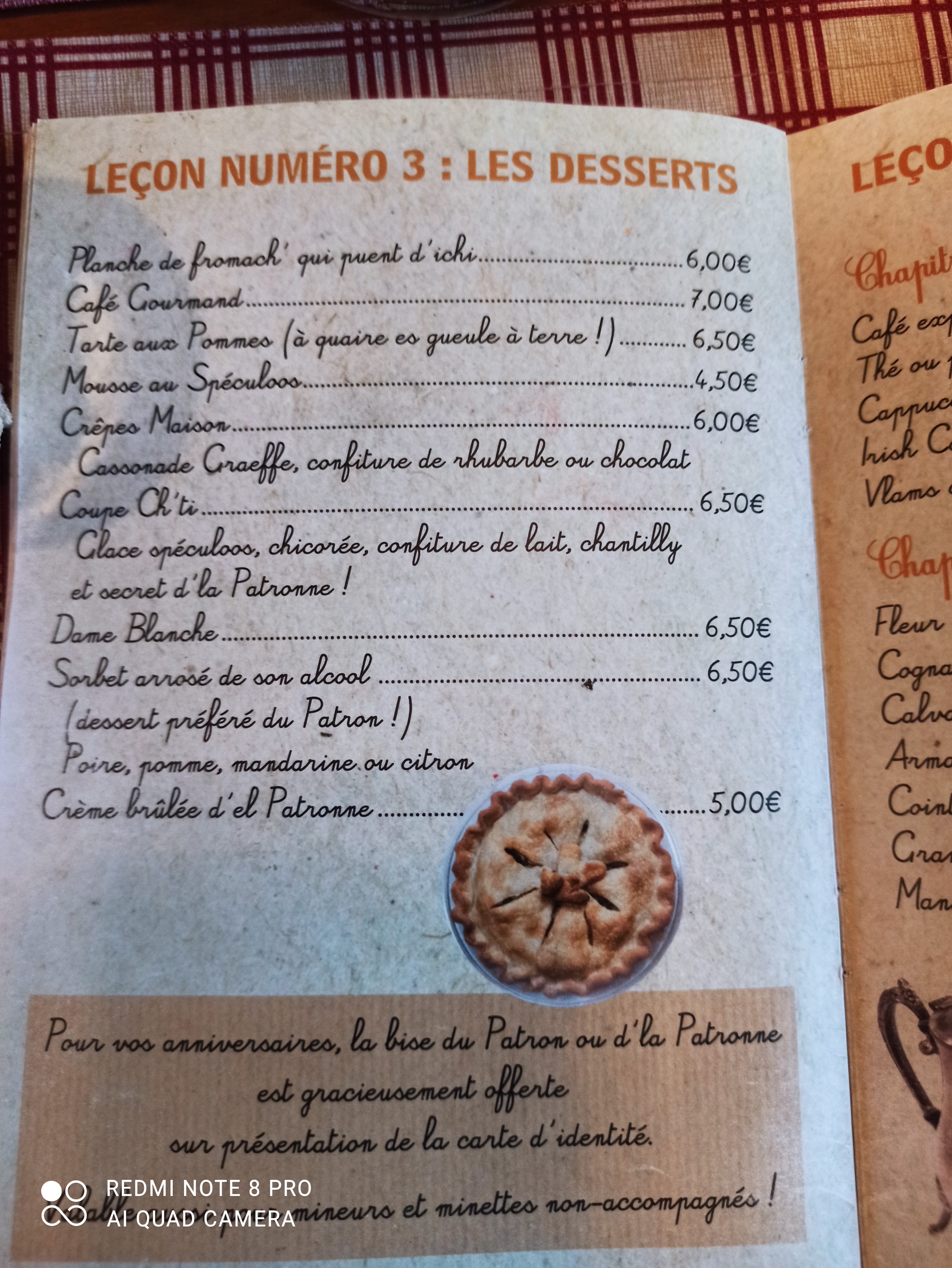 1ere fois dans cet estaminet, sûrement pas la dernière la patronne très professionnelle et le personnel . Nous avons bien mangé rapport qualité super , ne rien changer surtout à bientôt….. vaut mieux réserver une semaine avant.