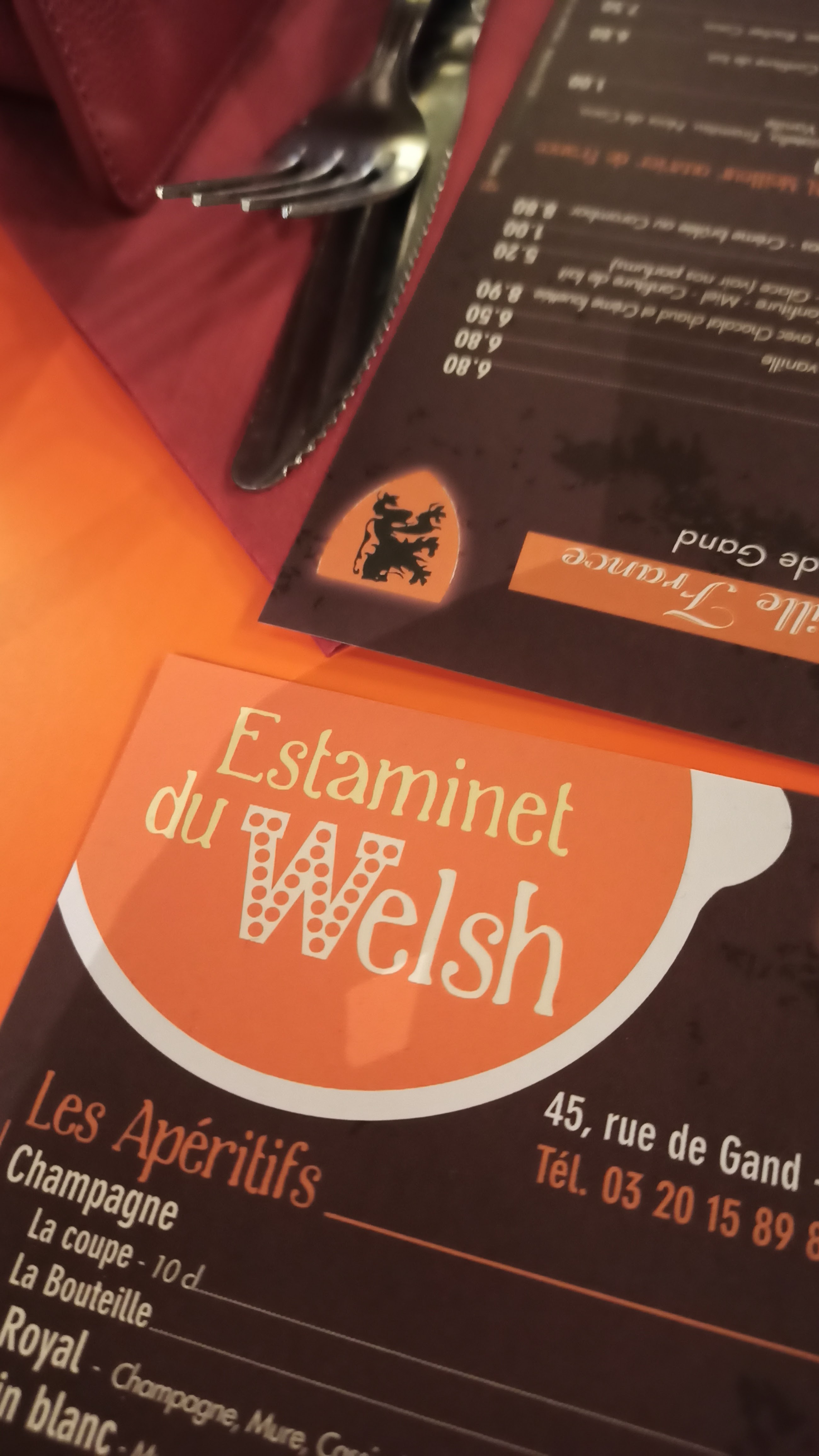 Repas en famille un jeudi soir à 20h30: Certes c’est l’estaminet du Welsh mais nous aurions aimé prendre en plus de la carbonnade flamande pour faire goûter aux proches qui ne sont pas du Nord, c’est d’ailleurs pour cette raison que nous avions réservé dans un « estaminet ». Hors plus de carbonade du tout lorsque nous commandons les plats, déçus… Tables très serrées les unes avec les autres, notamment en terrasse, difficile d’accéder au restaurant sans demander aux personnes en train de manger de se décaler. Les serveurs qui courent partout la goûte au front, débordés.. un serveur de plus serait peut être utile pour l’équipe et les clients. L’assiette régionale que nous avons tous prise ce soir là pour découvrir plusieurs spécialités du Nord était composé d’un mini Welsh au maroilles, d’une tarte au maroilles et d’une croquette encore au maroilles également, nous aurions préféré un mini Welsh cheddar tout de même. C’était quand même bon et digne d’un estaminet. Prix corrects. Nous avons cependant attendu 1h nos plats. Carte des Welsh très variée !