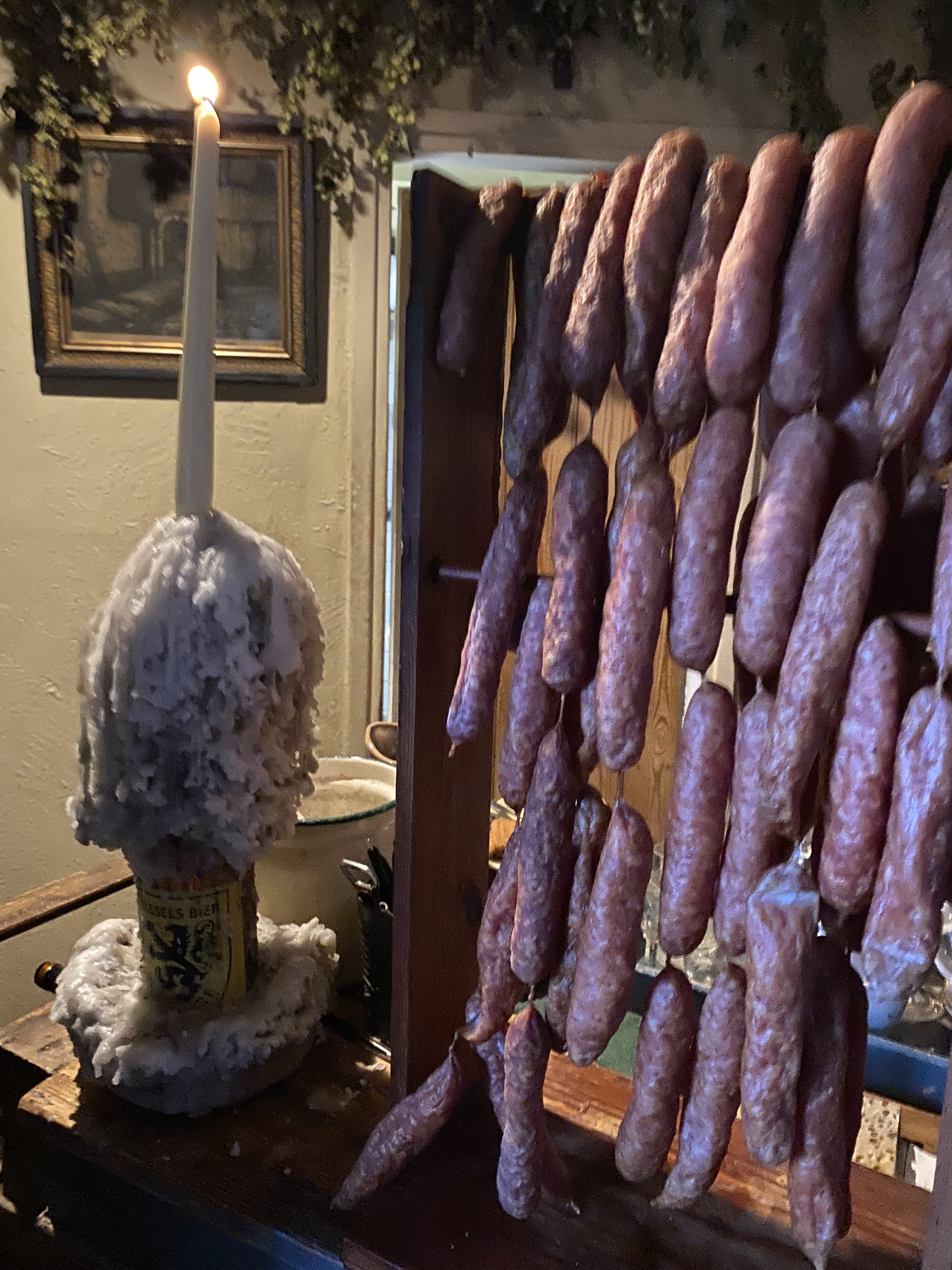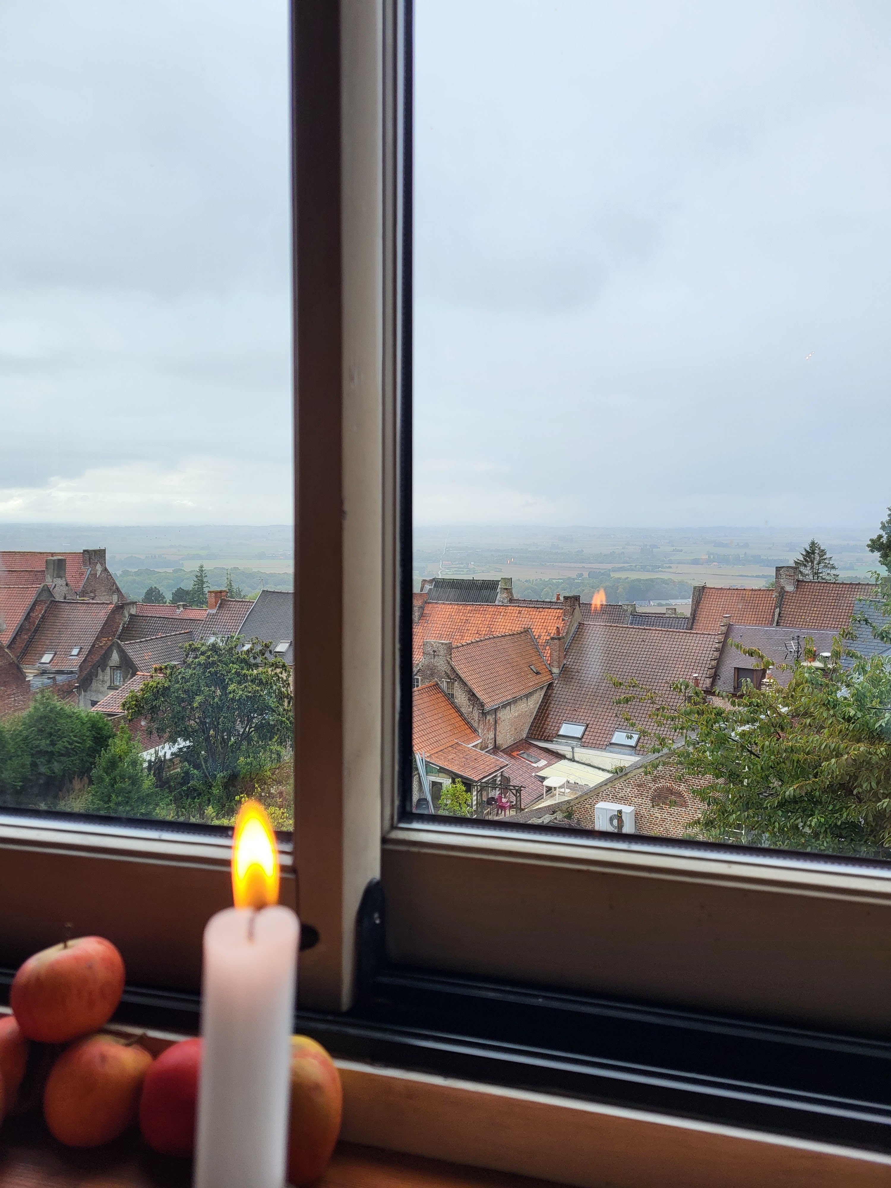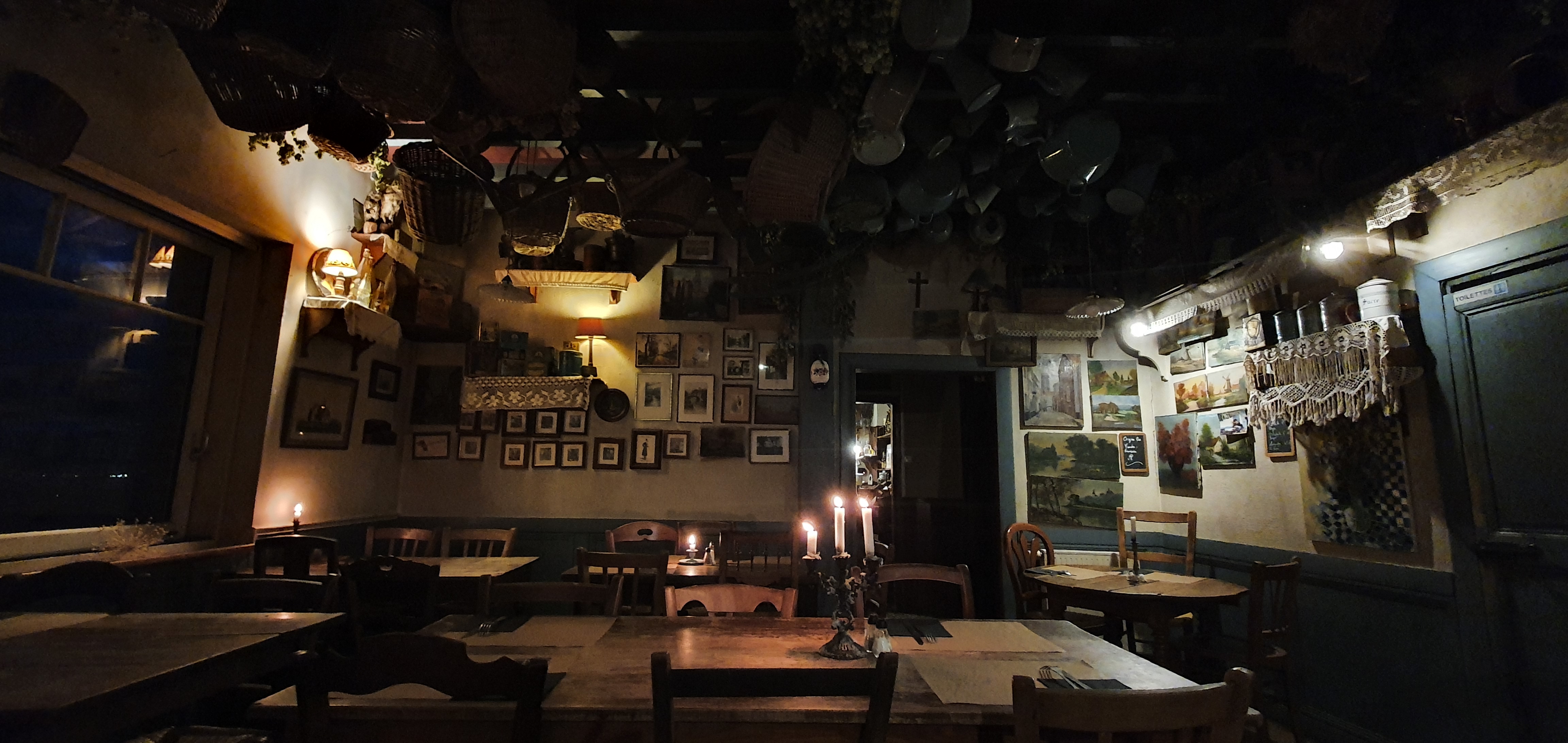 Simple passage dans l'après midi. Très bien reçus. Les yeux prennent plaisir à la vue sur les toits de Cassel, la campagne environnante et la décoration hors du temps de l'estaminet éclairé aux chandelles.