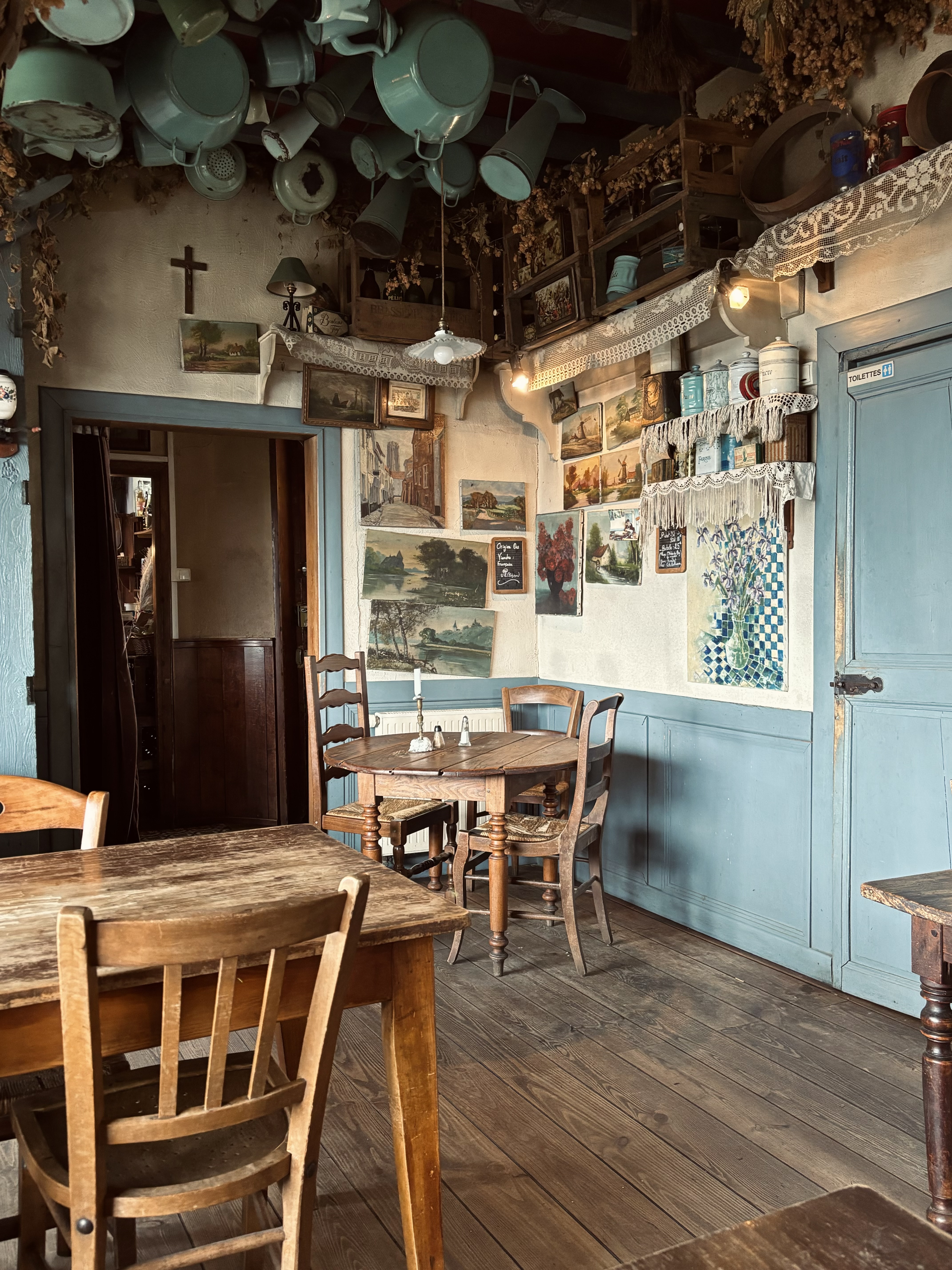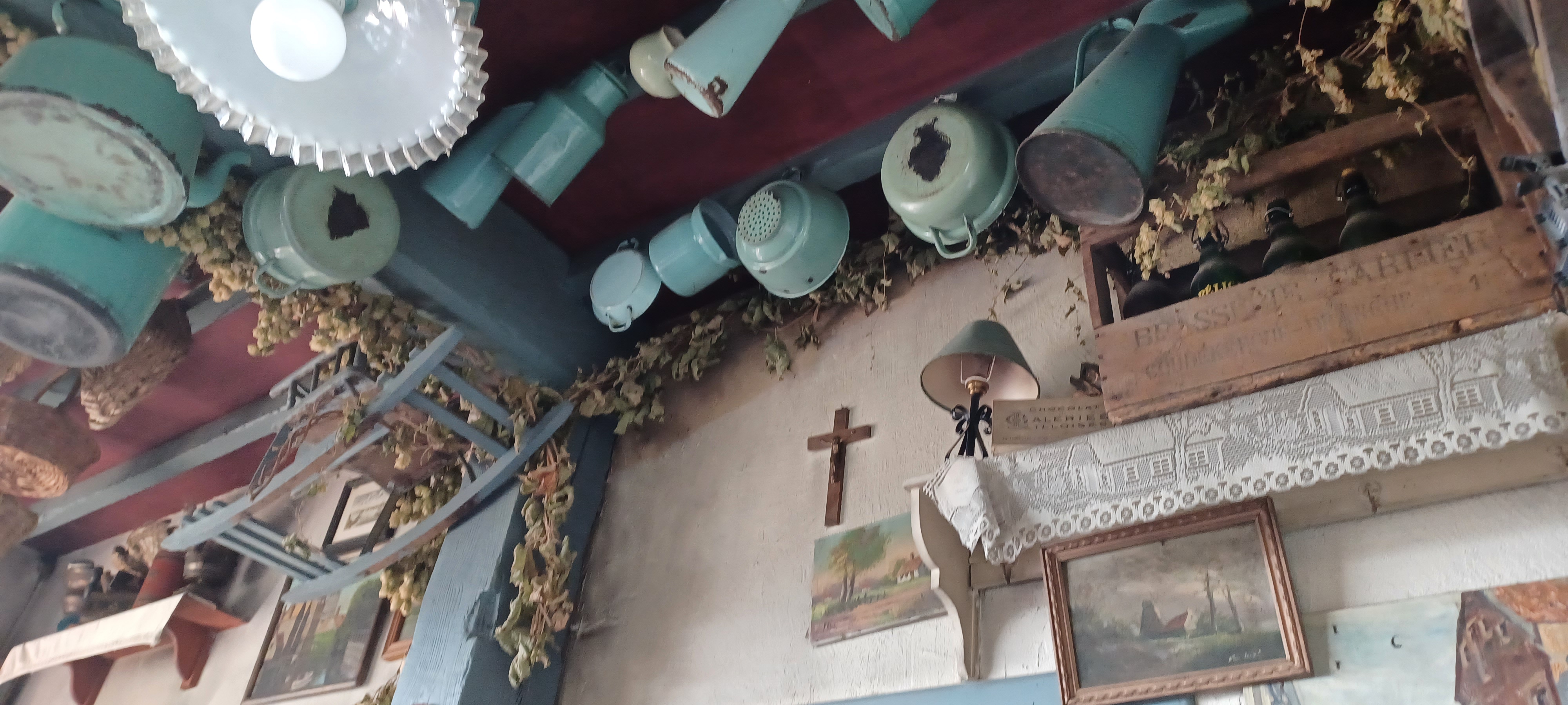 Restaurant atypique, cuisine traditionnelle très bonne. Propre malgré toute cette décoration suspendue pas une toile d araignée aucune poussière... Repas excellent... c est une belle découverte flamande...