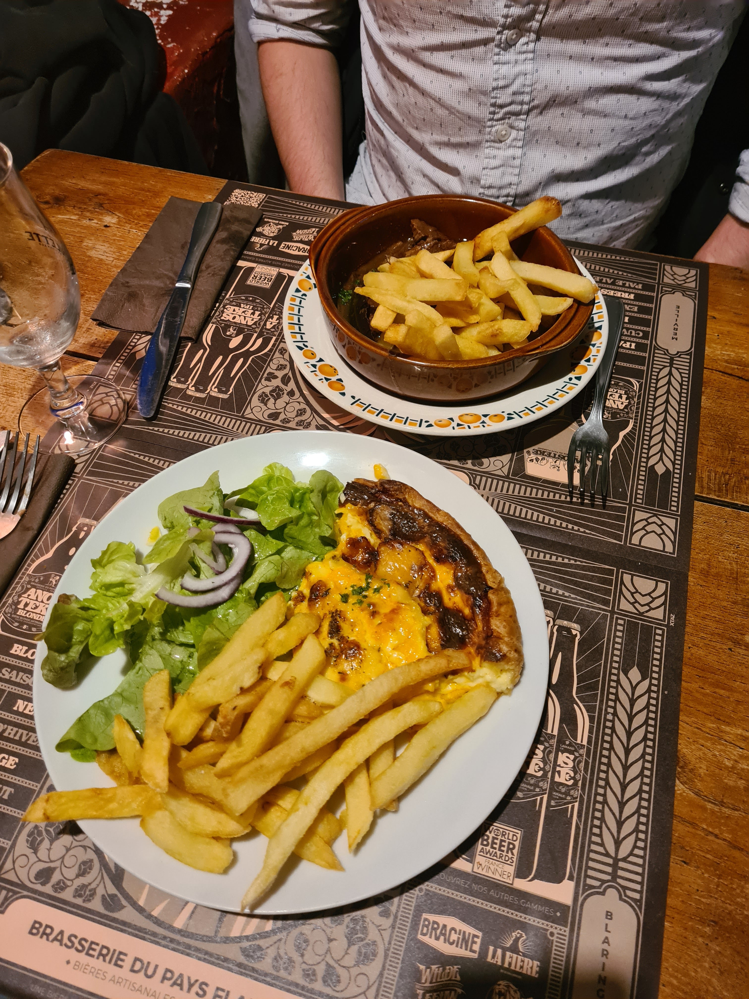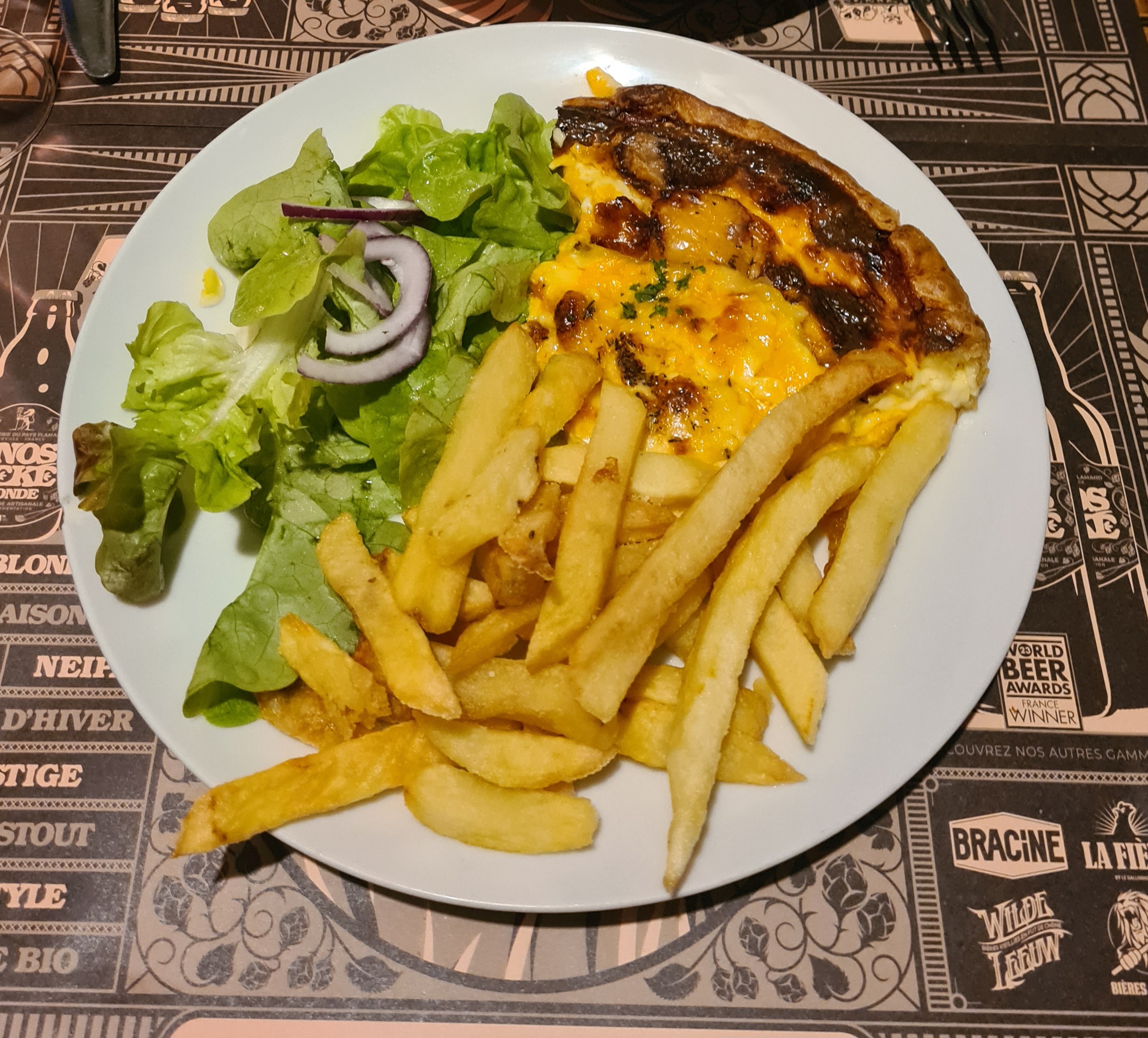 Parfait très très bien manger assiette correcte au niveau portion bière très bonne et ambiance chaleureuse très bonne adresse Ont reviendra 👍👍👍