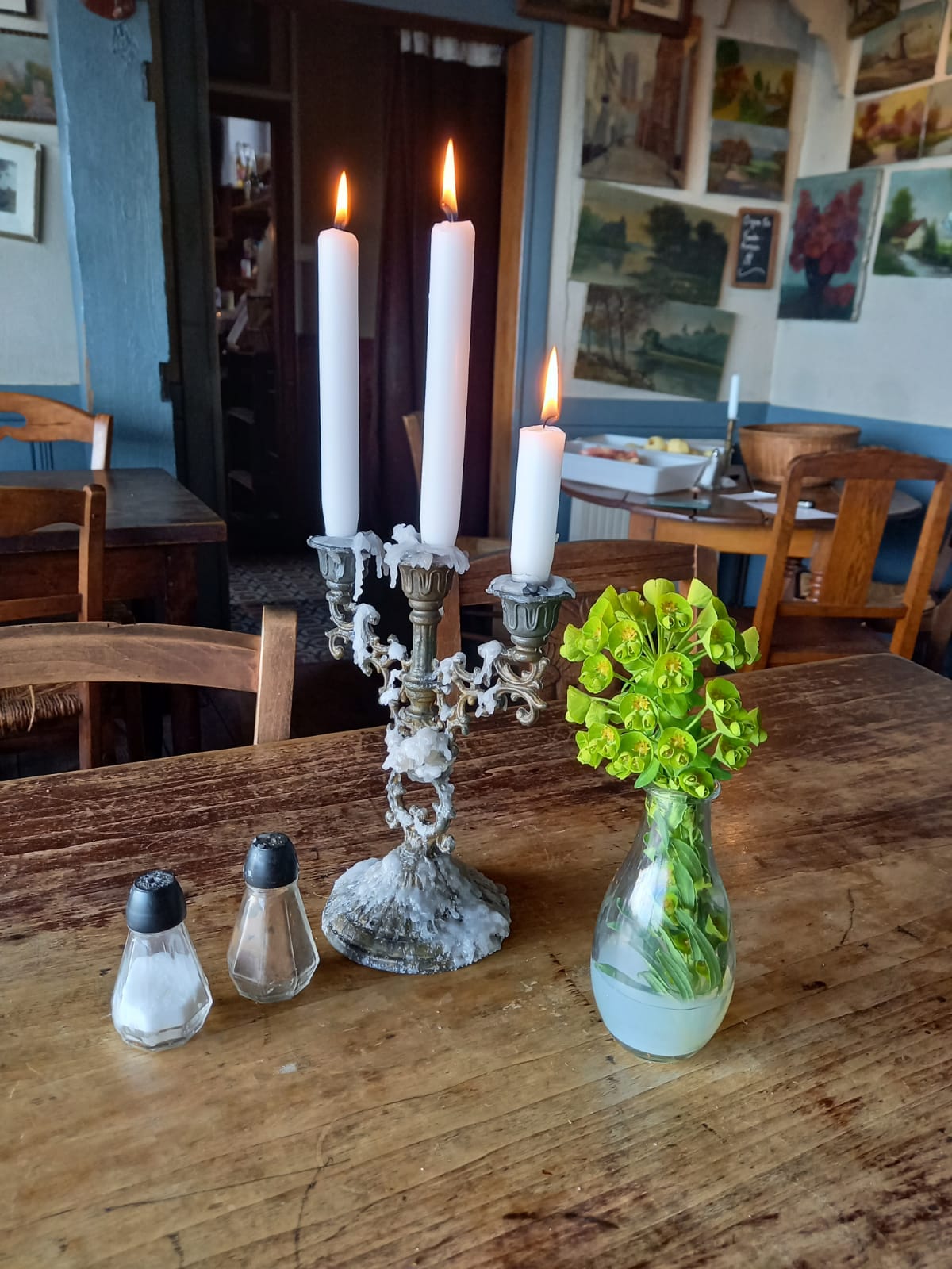 J'aime beaucoup cet endroit. L'ambiance le soir, à la bougie, un fond musical, de la bonne nourriture et des jeux en fin de repas. Un personnel top. Une ambiance très familiale. Venu également pour un petit quatre heure. Un régal. Un estaminet comme j'aime !