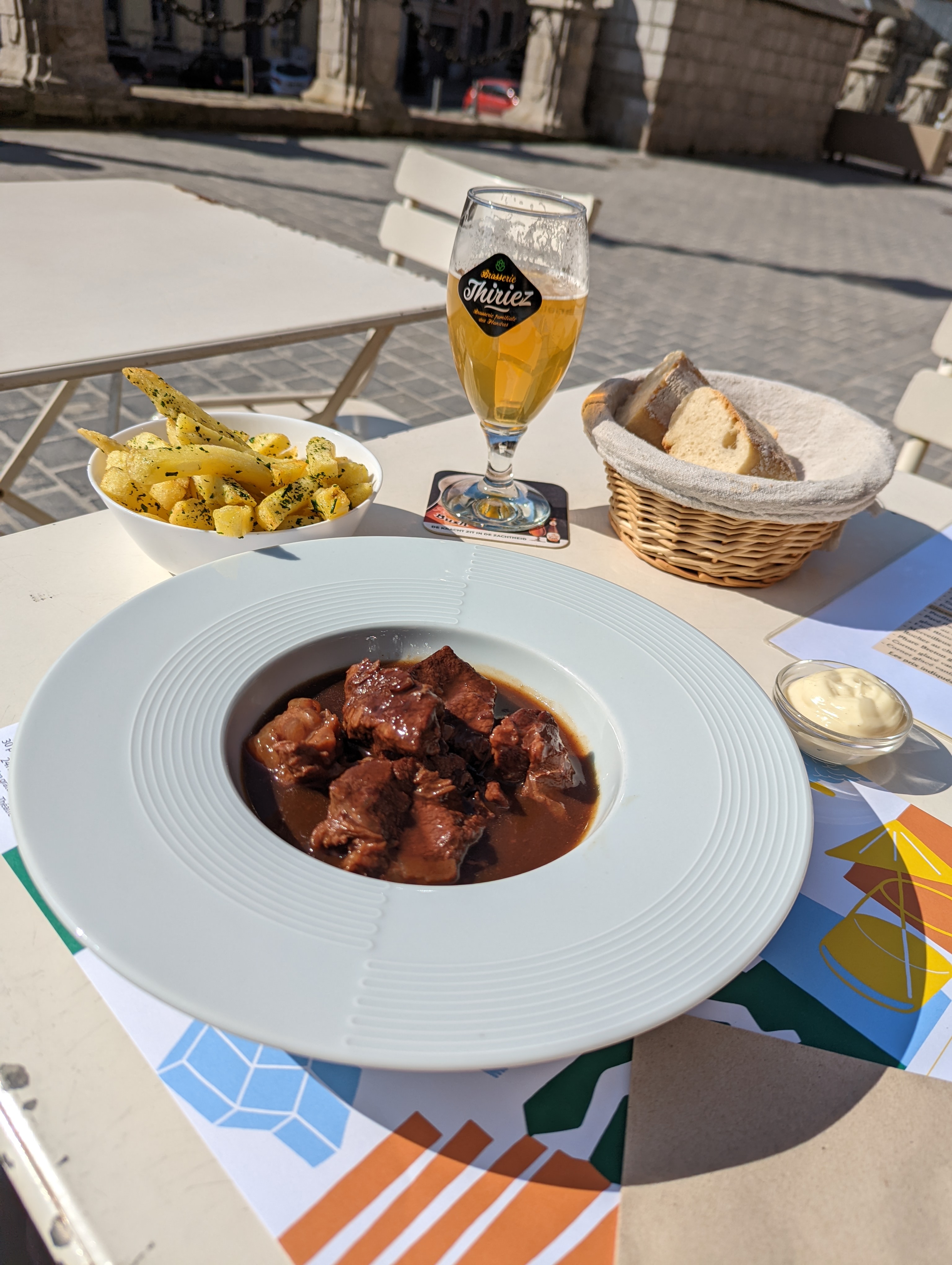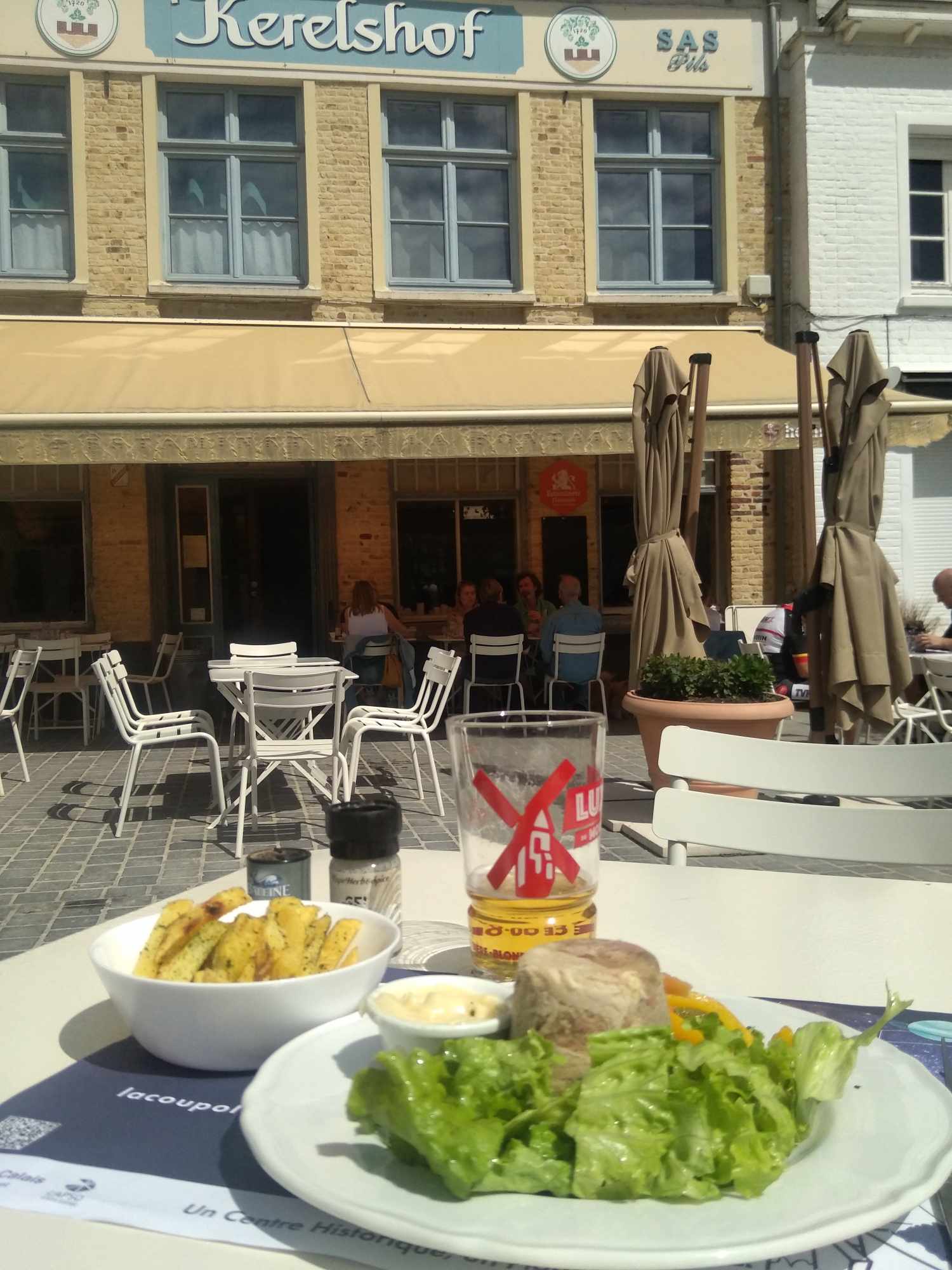 Une bière une saucisse sur la grande place de Cassel un joli moment en terrasse moins fan de la partie repas