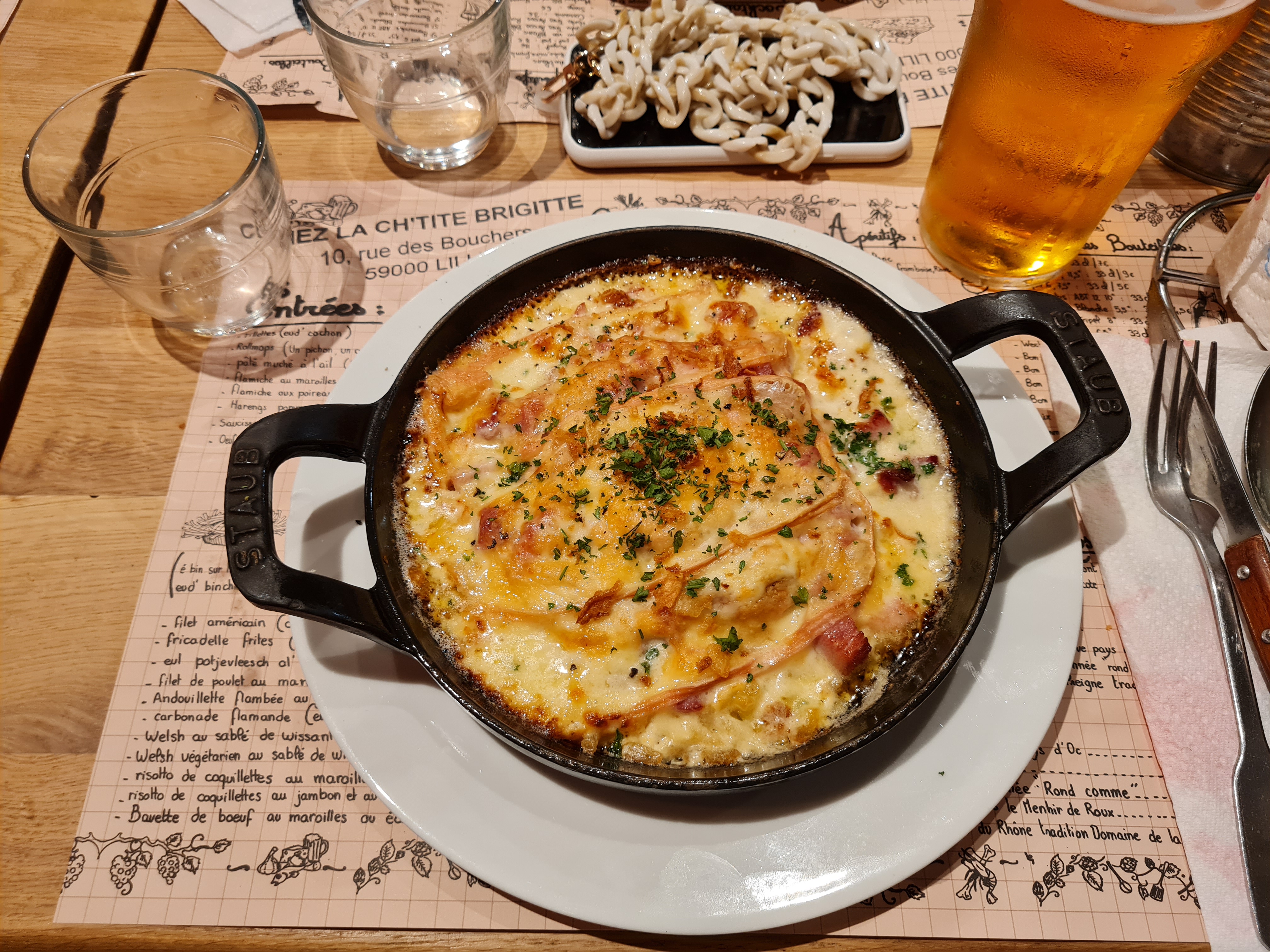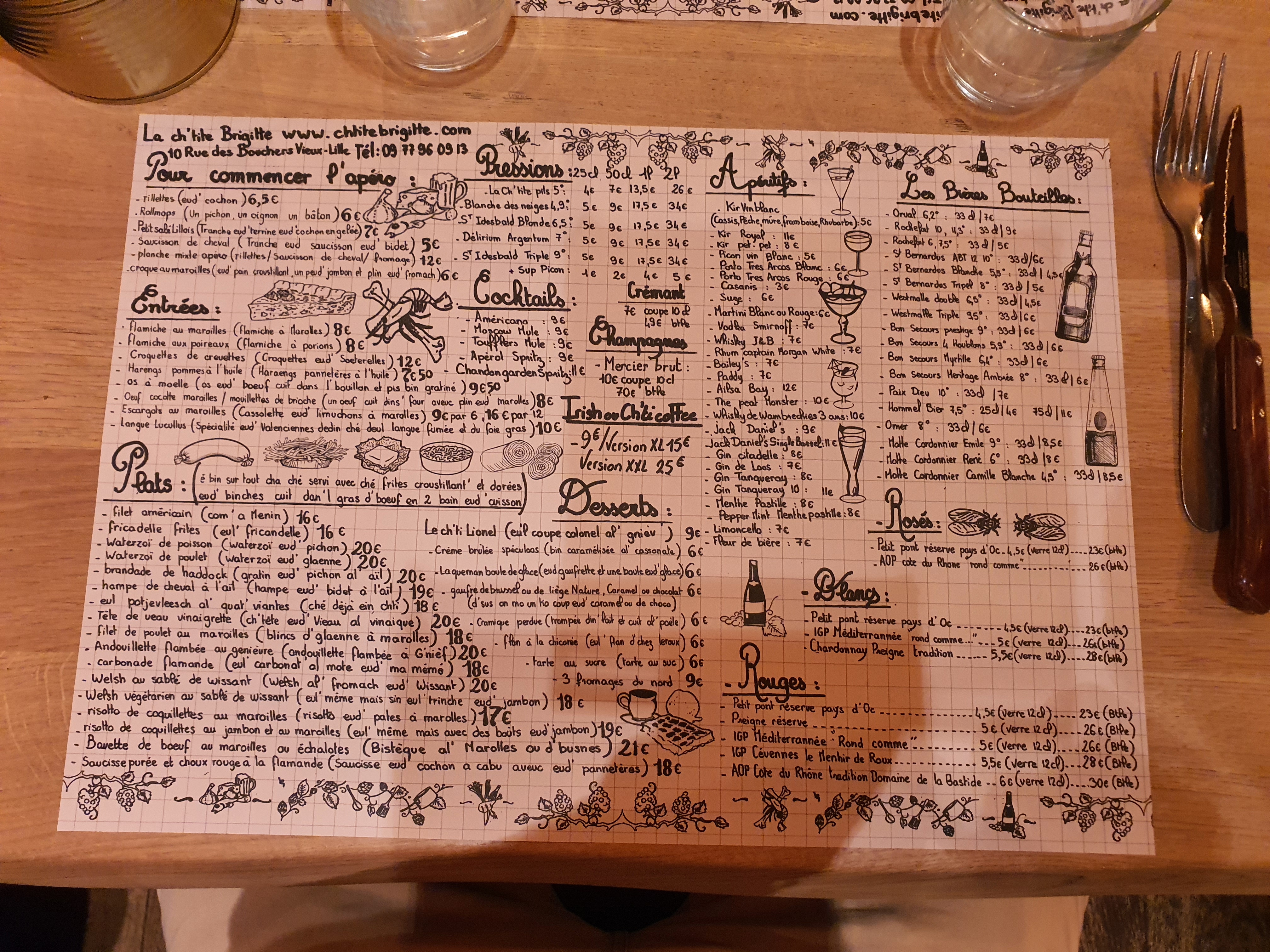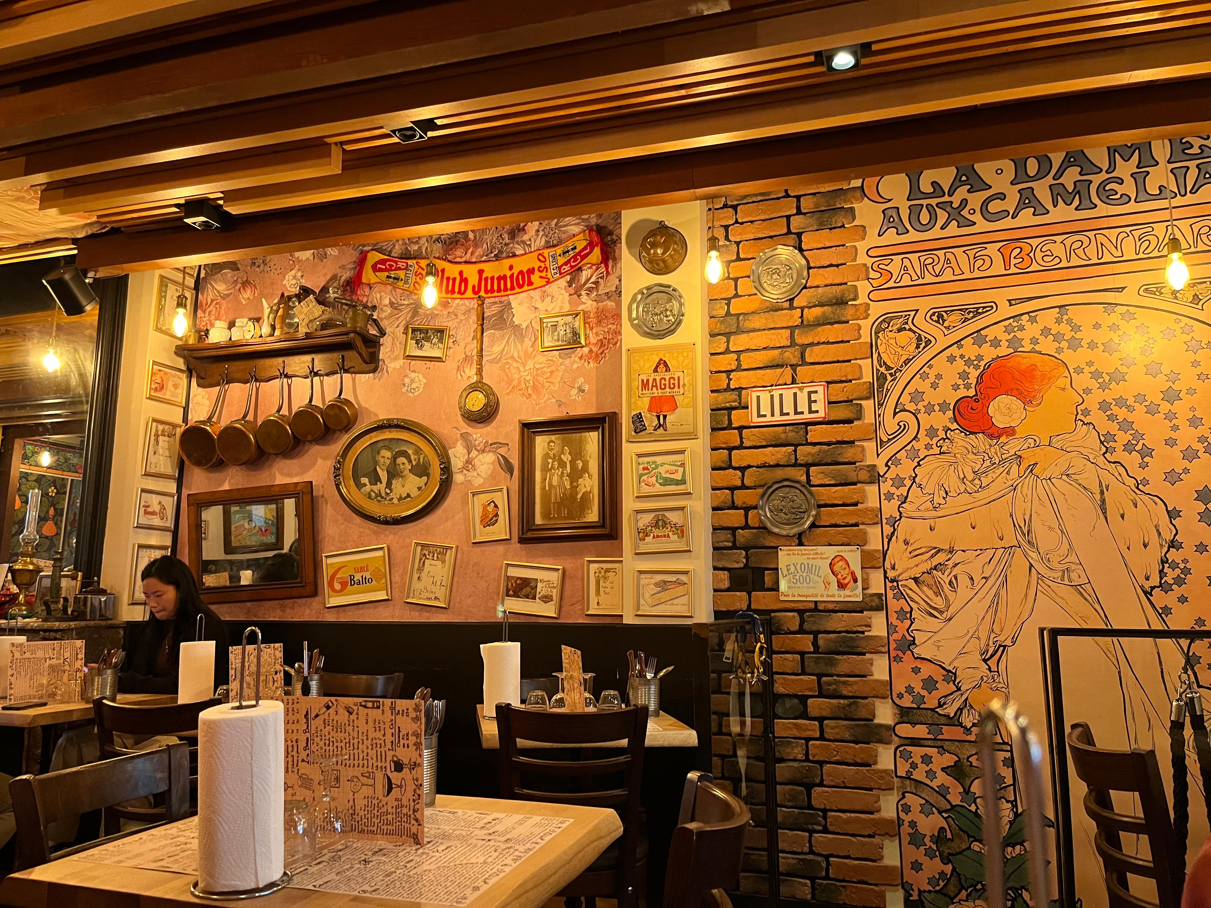 Belle ambiance dans cet estaminet lillois !!! Un accueil chaleureux, des plats généreux et une table comme à la maison avec de l'essuie-tout en guise de serviette et les couverts dans un pot, j'ai Adoré.
