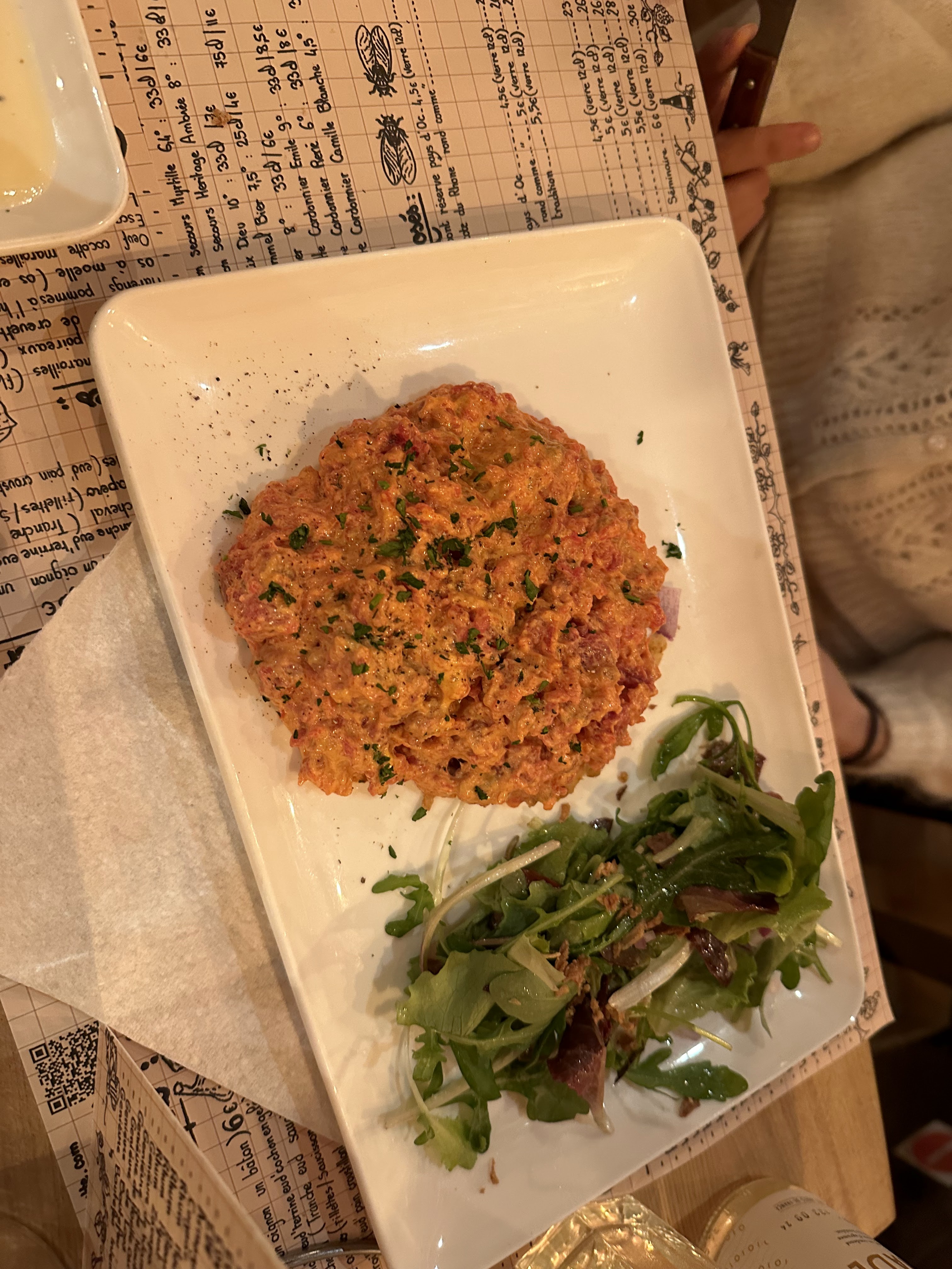 Je recommande vivement cet endroit si vous visitez Lille, en France. Bonne nourriture et personnel sympathique. L'endroit est confortable et décontracté. Nous venions juste de visiter et ne connaissions aucun plat français ou français. Nous avons été accueillis par une serveuse extraordinaire, qui s'est littéralement assise avec nous pour expliquer les plats et nous a aidés à commander. Essayez d'appeler et de réserver une table. C'était complet, mais nous avons heureusement eu une table en raison d'une annulation.