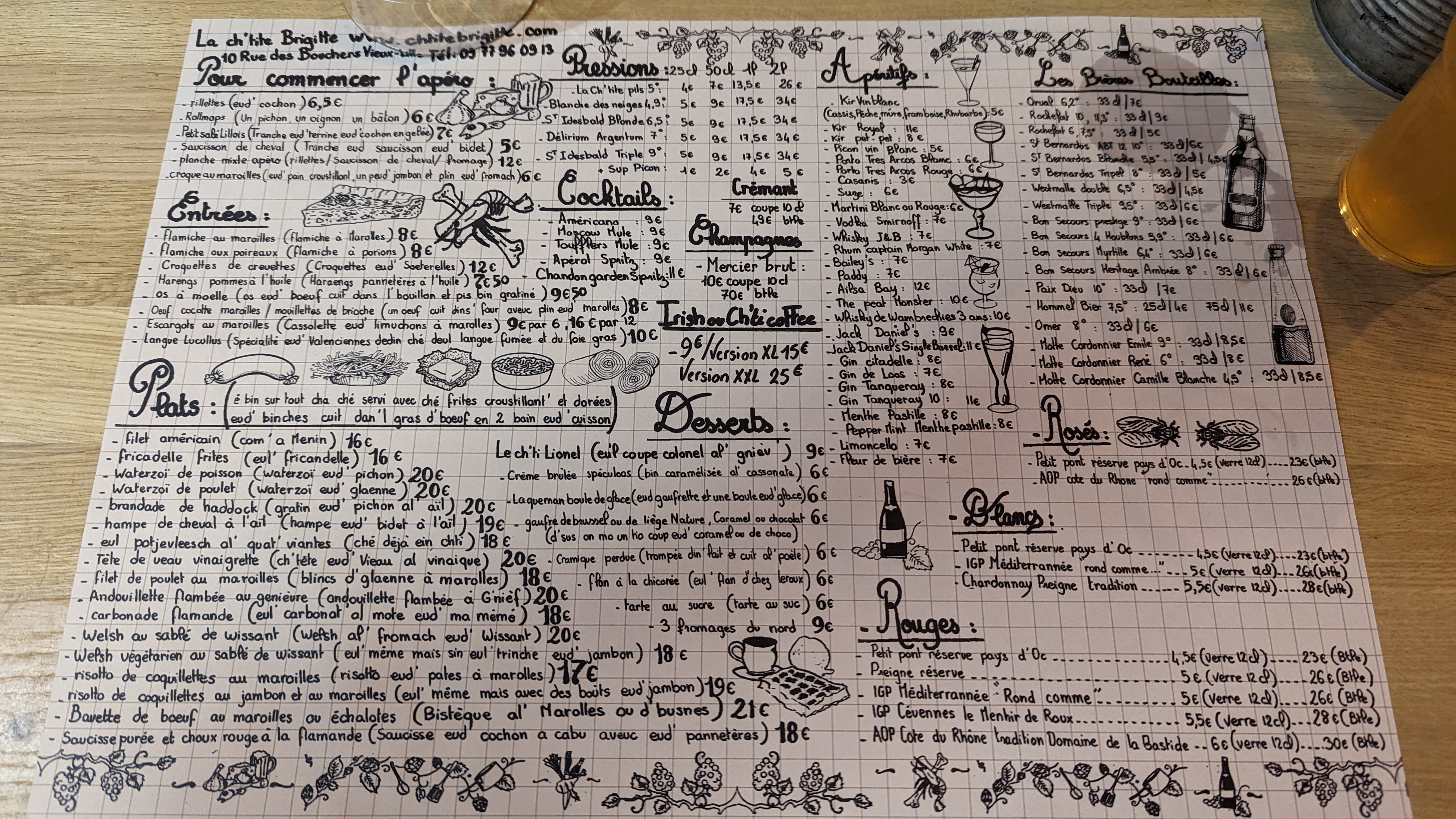 Petit estaminet chaleureux ou l’on passe un bon moment : - plats très bons et typiques du nord, délicieux welsh même s’il n’est pas au cheddar. Les frites sont à volontés - bonnes bières pressions qui ont l’air de changer régulièrement, il y avait une bière Noël le soir de notre venue - service aux petits soins