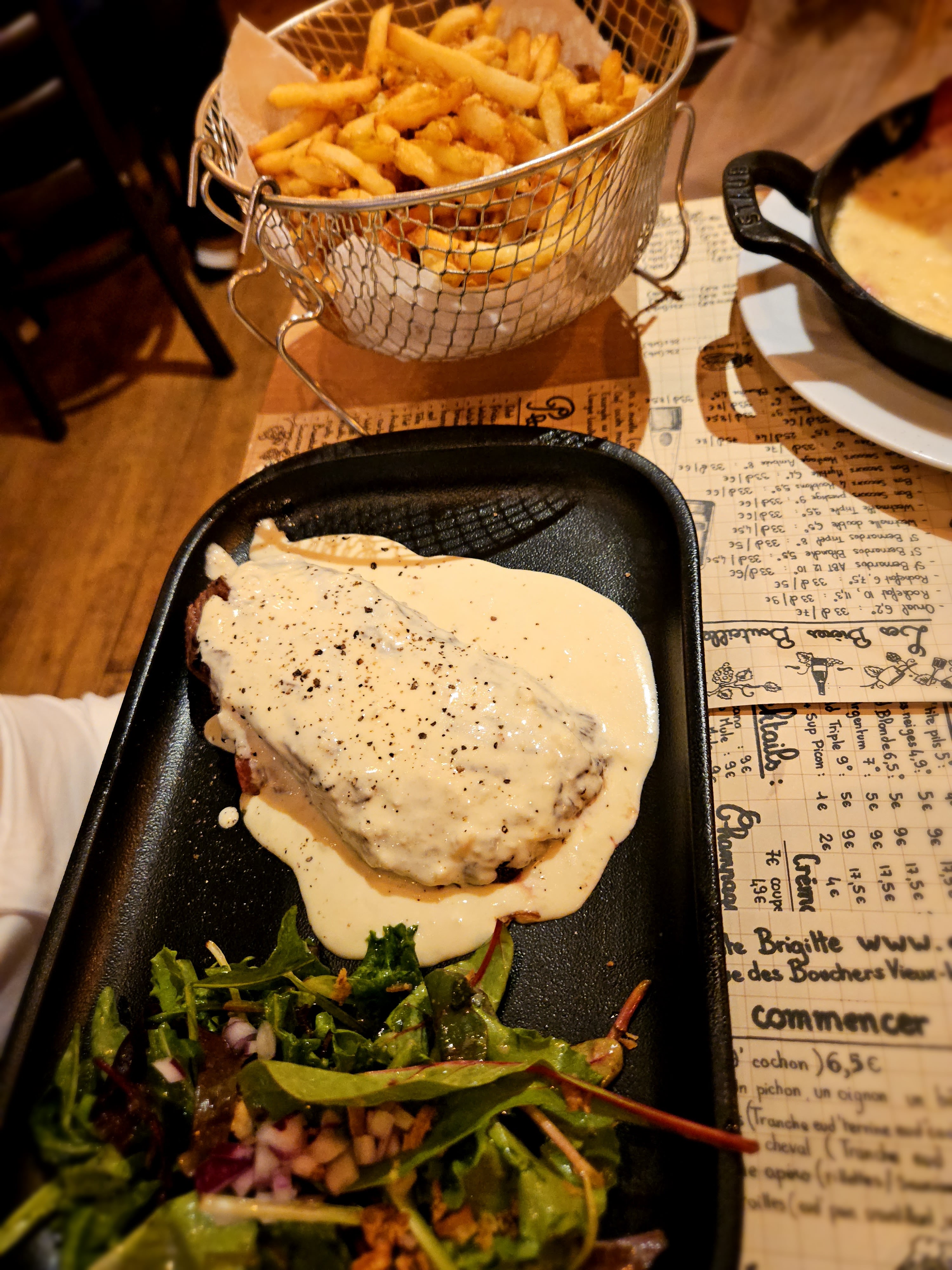 En famille, pour la deuxième fois et nous reviendrons! Super ambiance musicale, service chaleureux et très bonne cuisine. Frites et salade à volonté! Que demander de plus?