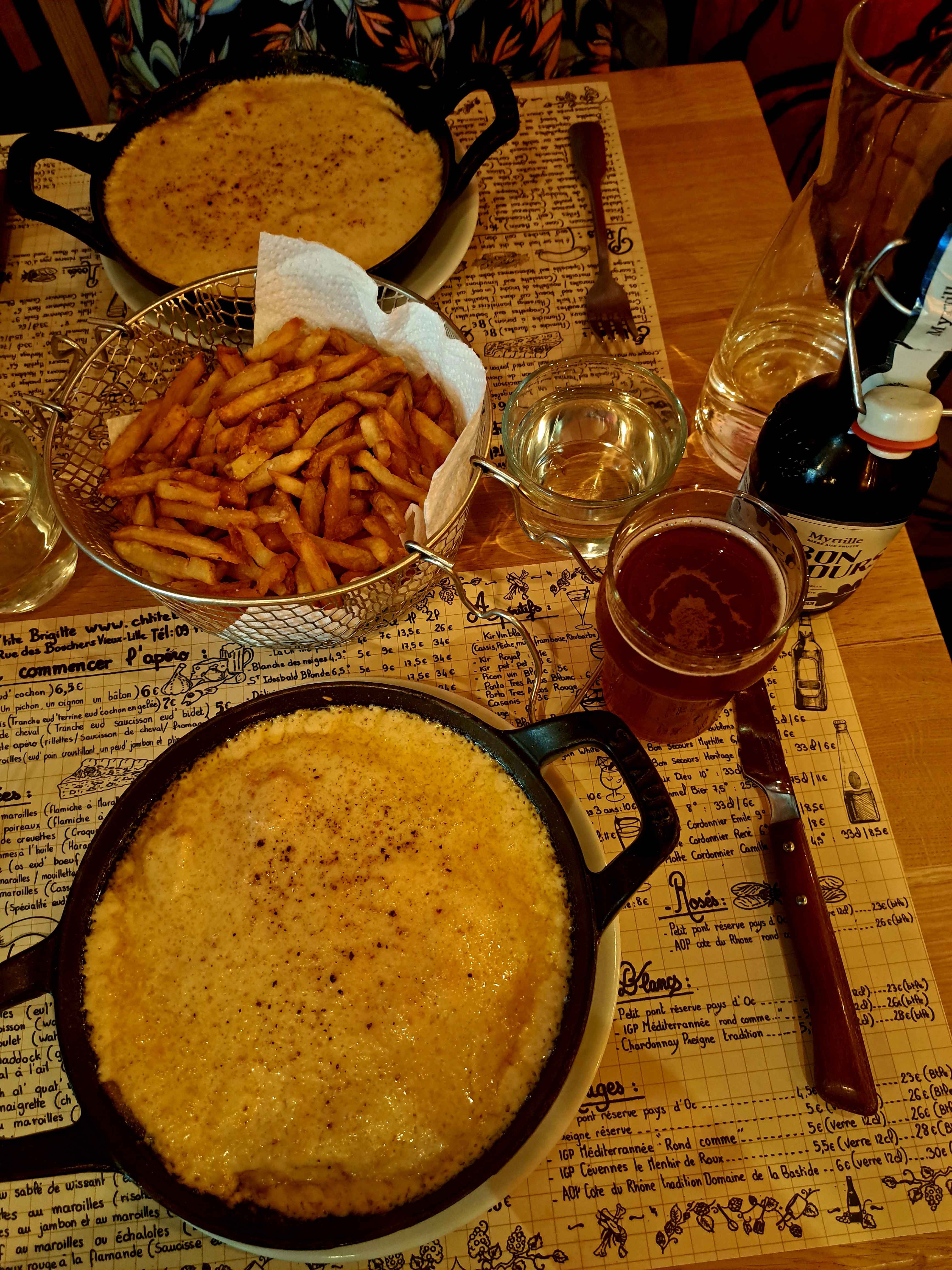 SUPER MOMENT ! 🧀🧀 Un EXCELLENT estaminet ET une ambiance au top par le staff du restaurant ! 😍😍 Pour nous, meilleur estaminet de Lille ! Un welsh au top et unique avec sa marmitte de frite mais gardez une place pour les desserts qui sont tout aussi excellents et fait maison 🍰 Je conseille sa crème brûlée speculos : Miaaaaam! 😋 Mais attention faute de son énorme succès, il est indispensable de réserver et ne pas confondre avec Chez Brigitte (comme nous l'avions fait 😅) situé juste en face qui semble être très bon aussi mais pas du tout un estaminet 🤗 MERCI A VOUS POUR CETTE EXCELLENTE SOIREE ! 🌞 Nous reviendrons sans hésiter !!!