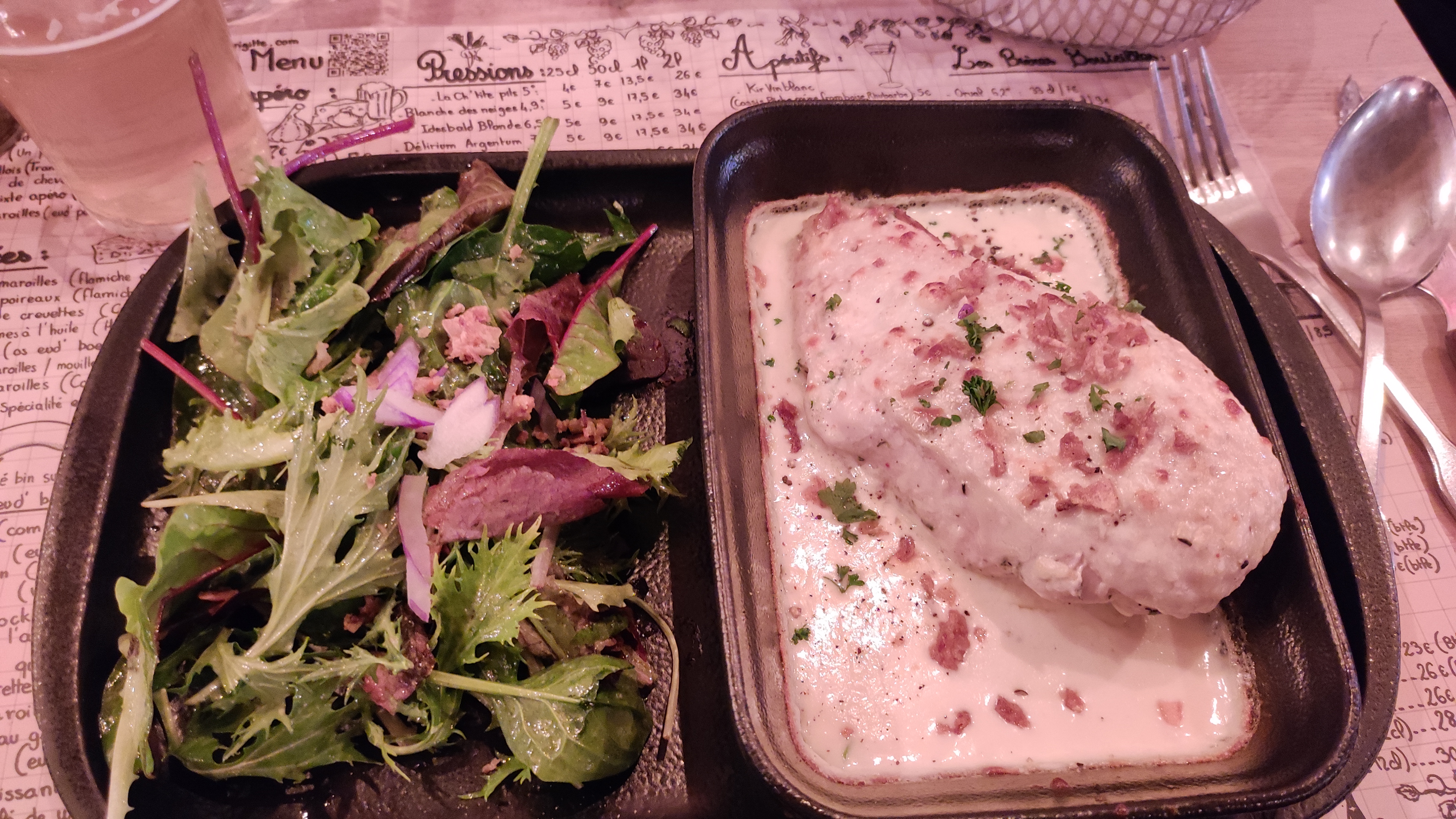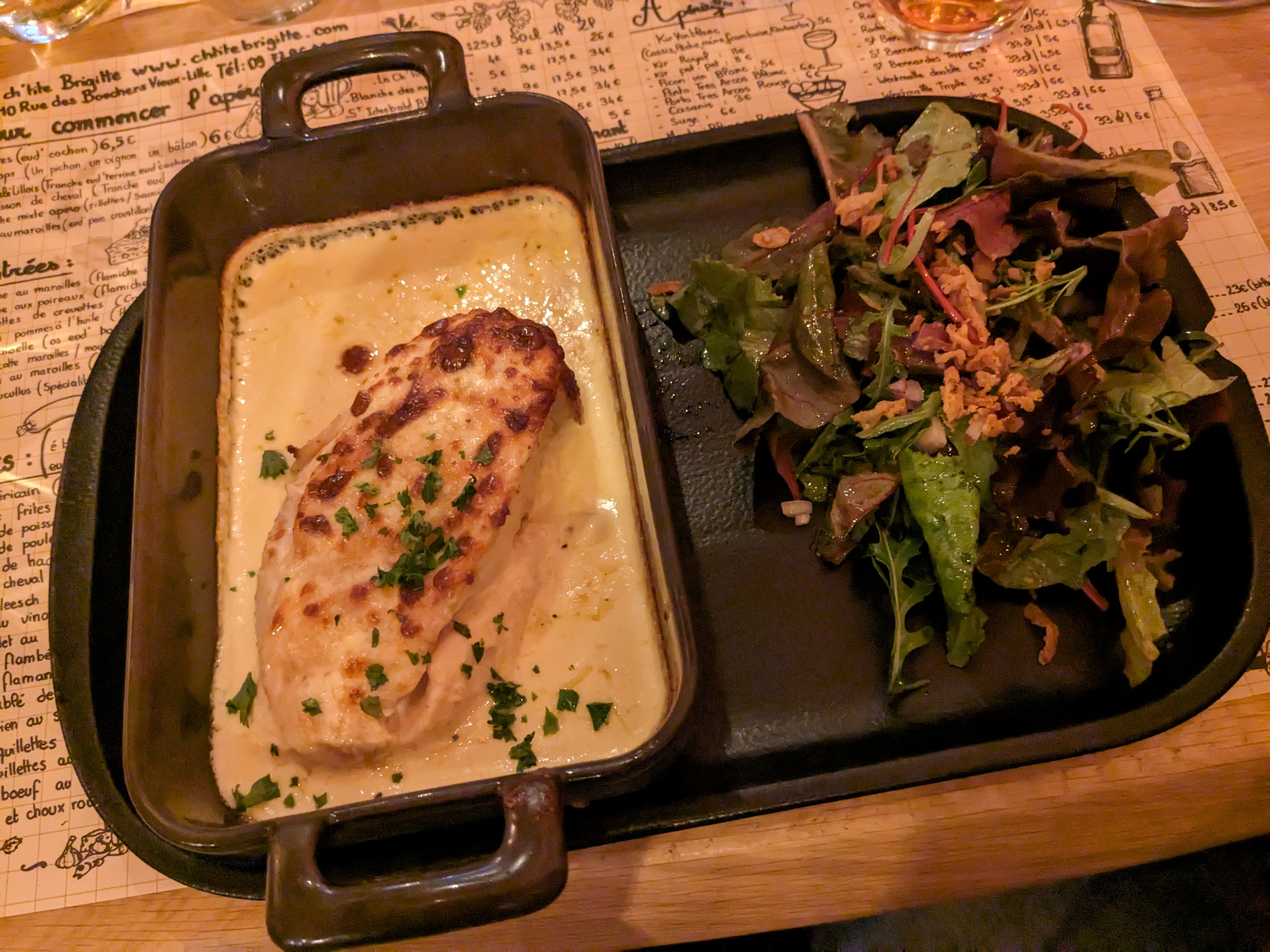 Très bonne adresse, j'ai pris le filet de poulet au maroilles, viande de qualité, cuisson ultra juste. Ambiance chaleureuse.