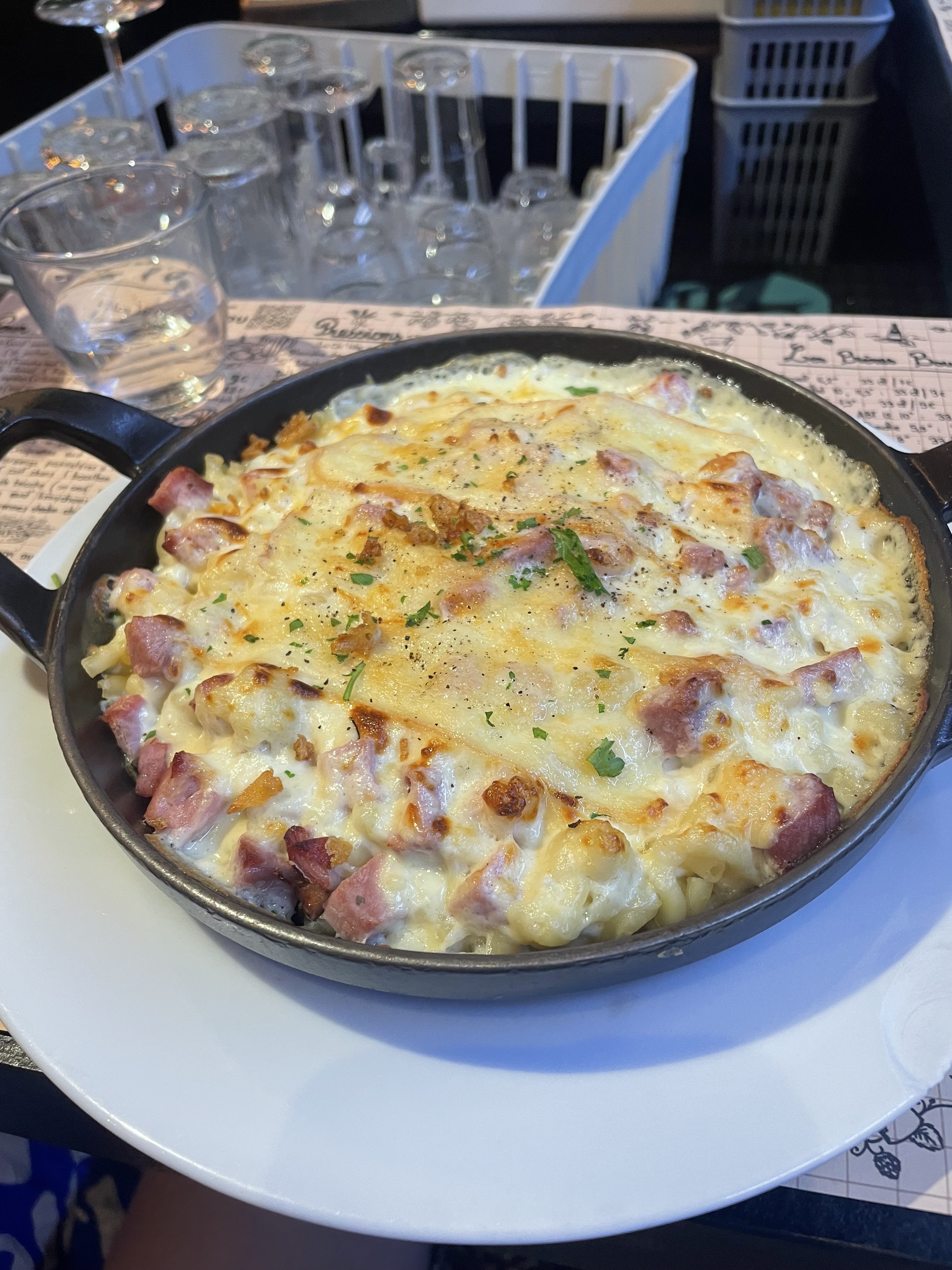 Un super moment passé dans cet estaminet typique du Nord. Le cadre est très chaleureux, on y retrouve de la déco à l’ancienne, les fameux verres avec les chiffres au fond qui nous rappelle nos moments cantine à l’école primaire. A la bonne franquette comme on aime. Le personnel est souriant, sympathique. Et la cuisine est délicieuse ! Étant maintenant sur Lyon depuis bientôt 7 ans, retrouver les frites du Nord nous rappelle combien ce sont les meilleurs ! On recommande à 100%