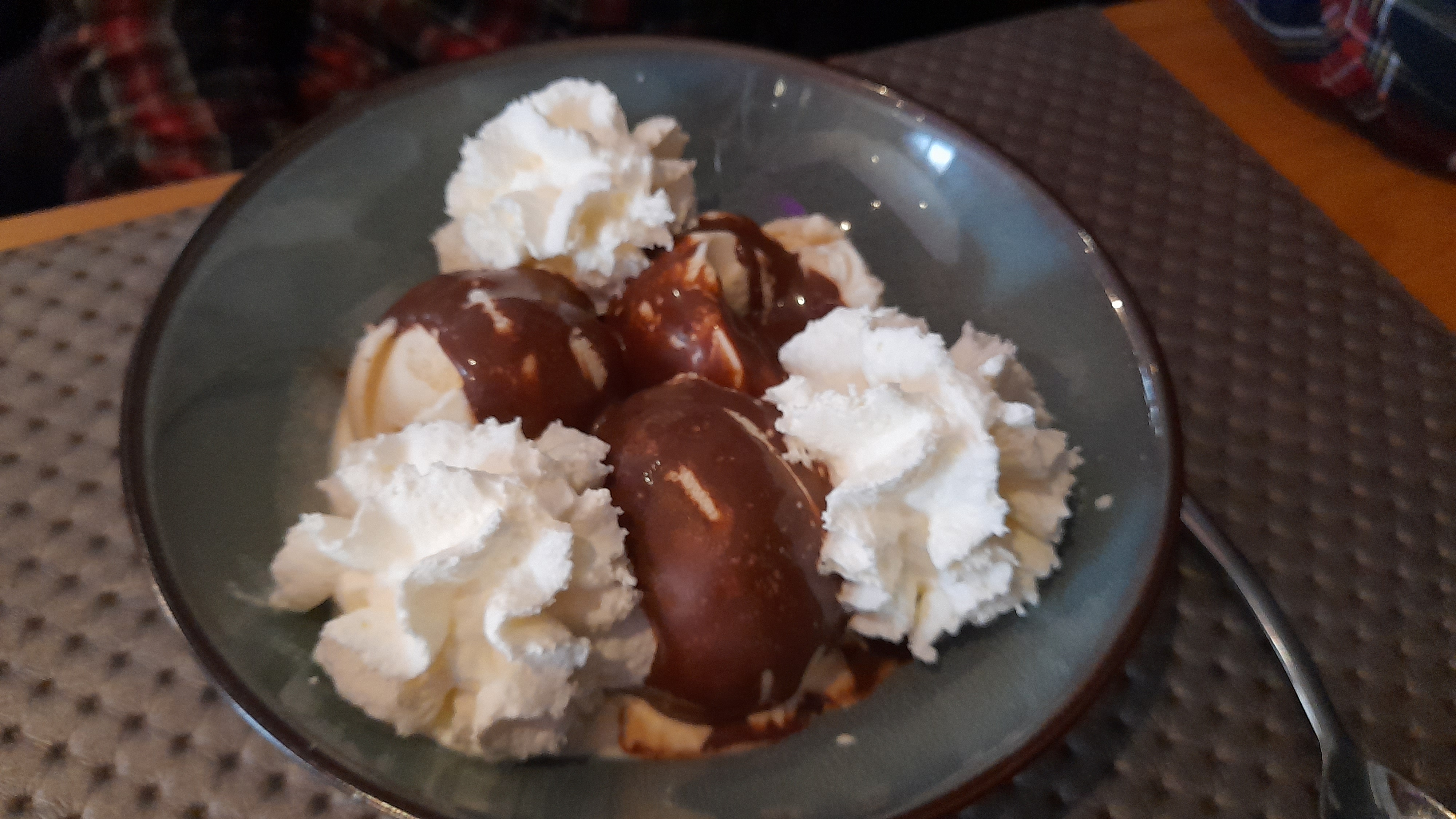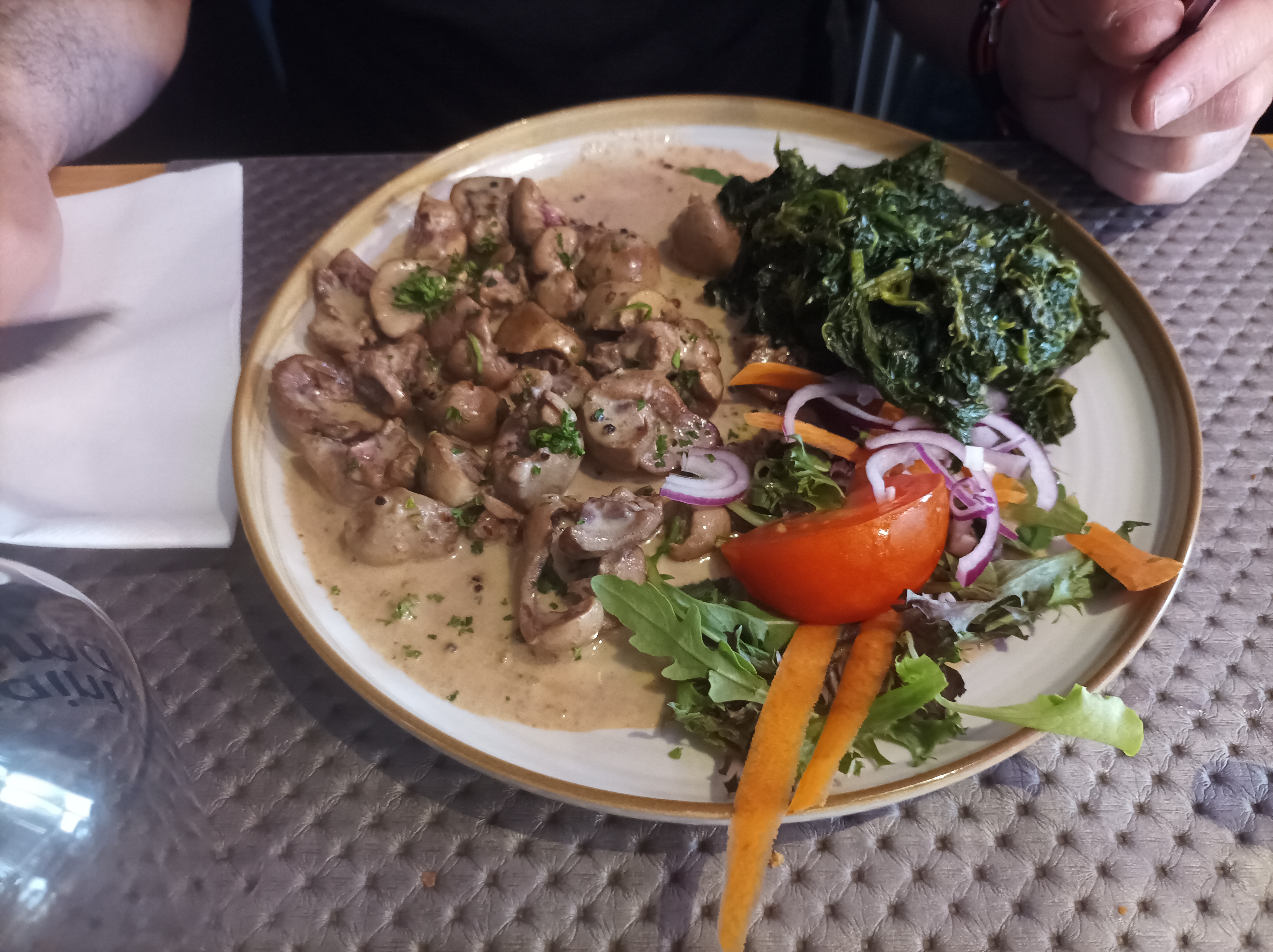 J ai pris le chapon aux champignons et pomme de terre roties C était très bon mais il n'y avait à mon sens pas assez d accompagnement. Pour ne plus avoir faim j ai du manger du pain 😕 Le tiramisu au speculoos était bon mais pas exceptionnel