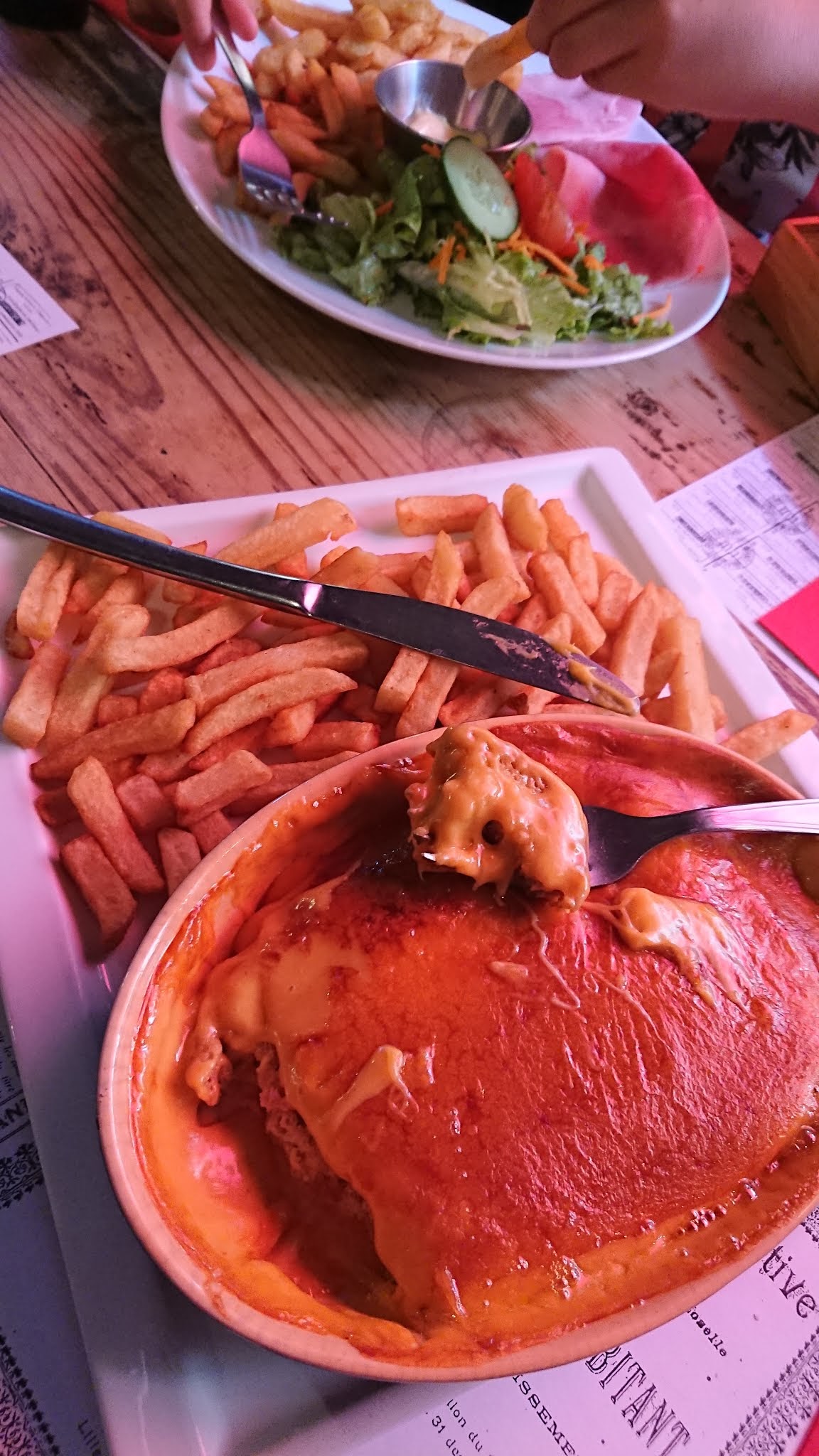 Cuisine réchauffée.welsc avec cheval et non maroilles je pense.fromage fondu dégoulinant de jus... Très vieillot même beaucoup trop.en plus on a eu très froid.pas de chauffage
