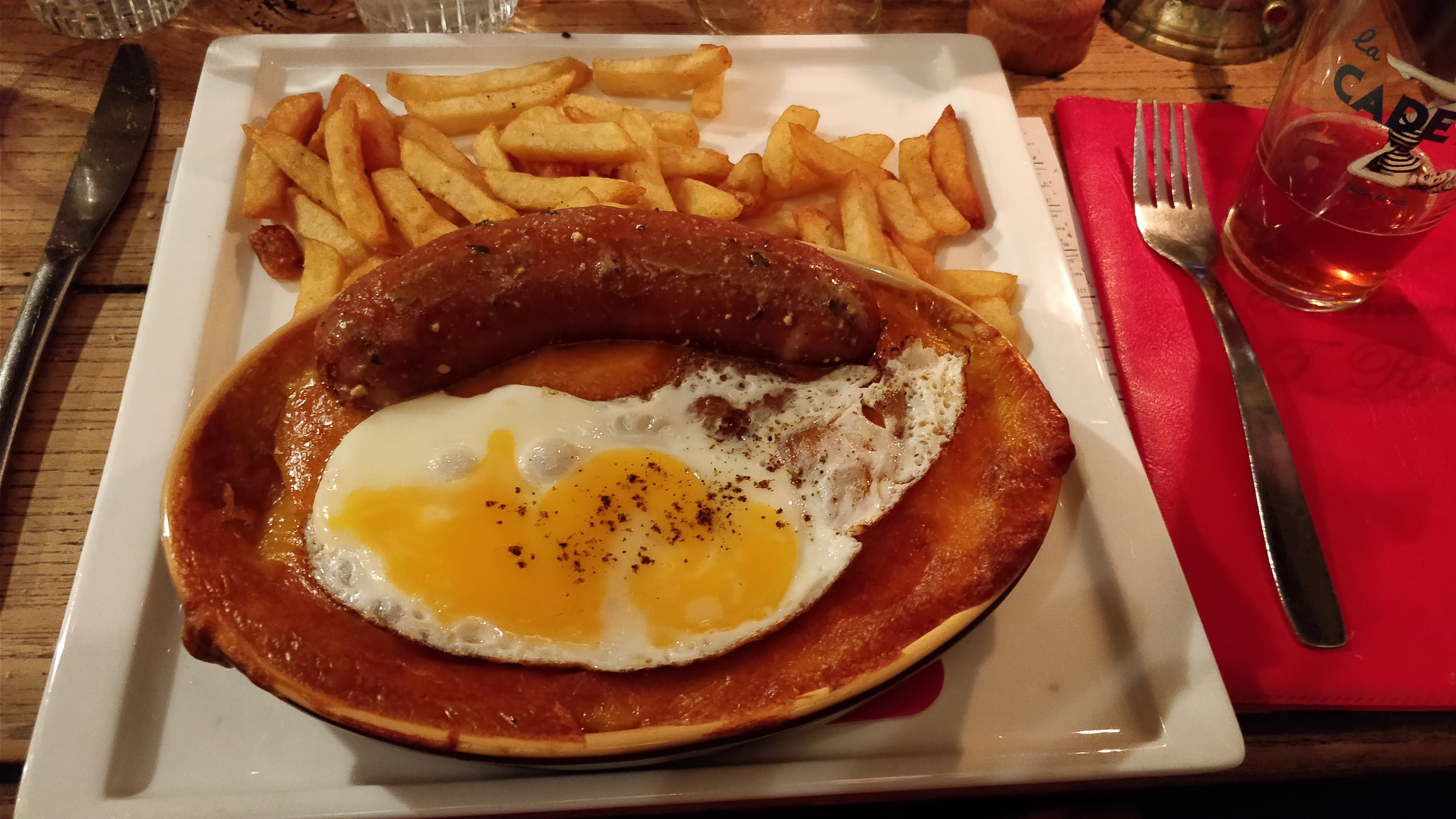 Le cadre est très sympa, le vin est peu cher et bon, l'entrée avec pâté et fromage également. Pourquoi 1 seule étoile alors..? Les plats étaient IMMONDES : viandes froides sorties d'une boîte de conserve avec davantage de gelée que de trucs à manger, frites mauvaises, sauce écœurante. On est parti en courant et sans finir, ce qui ne nous ressemble pas...