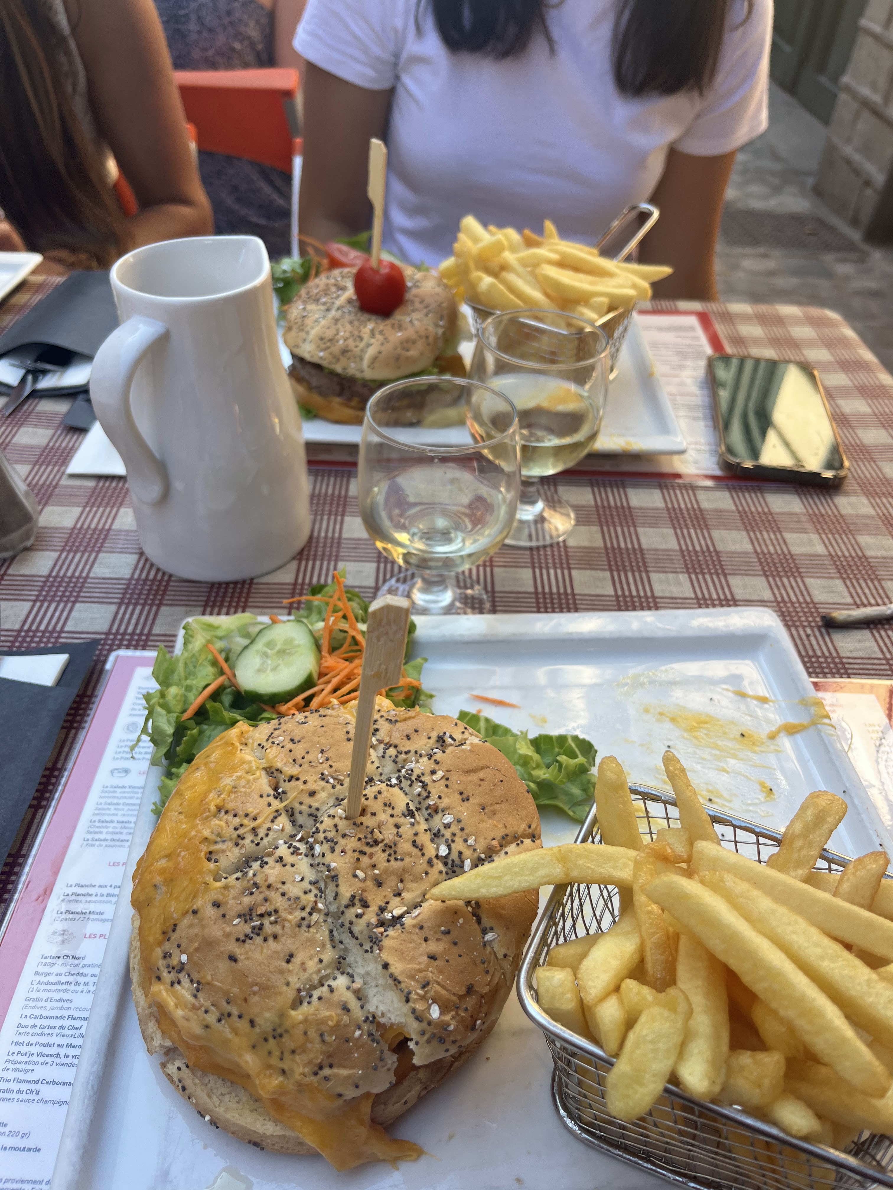 Venus essayer les spécialités locales en bon touristes, nous avons finalement décidés de venir ici après avoir chercher une table dans cette rue remplie d'Estaminet, ce qui permet d'ailleurs d'avoir une très bonne ambiance autour de soi quand on mange en terrasse. Les serveuses étaient blagueuses et très agréables. Le menu est sous la forme de sets de table, chose très pratique qui évite de s'embêter avec des cartes. Celui-ci est d'ailleurs très complet, vous retrouverez pléthore d'entrées, plats, desserts et boissons (alcools et bières variés compris). Nous avons commencé par commander des bières, pour finalement jeter notre dévolu sur la carbonade flamande et le welsh, tout deux accompagnés de frites. Les deux étaient excellents, des portions gourmandes et généreuses (ne venez pas le ventre moitié plein). Aussi, les frites avaient très bon goût. Après une longue bataille contre nos plats de résistances, nous avons demandé un café gourmand, celui-ci était composé de quatre gourmandises dont trois au spéculoos (le tiramisu était succulent). Je recommande vivement !