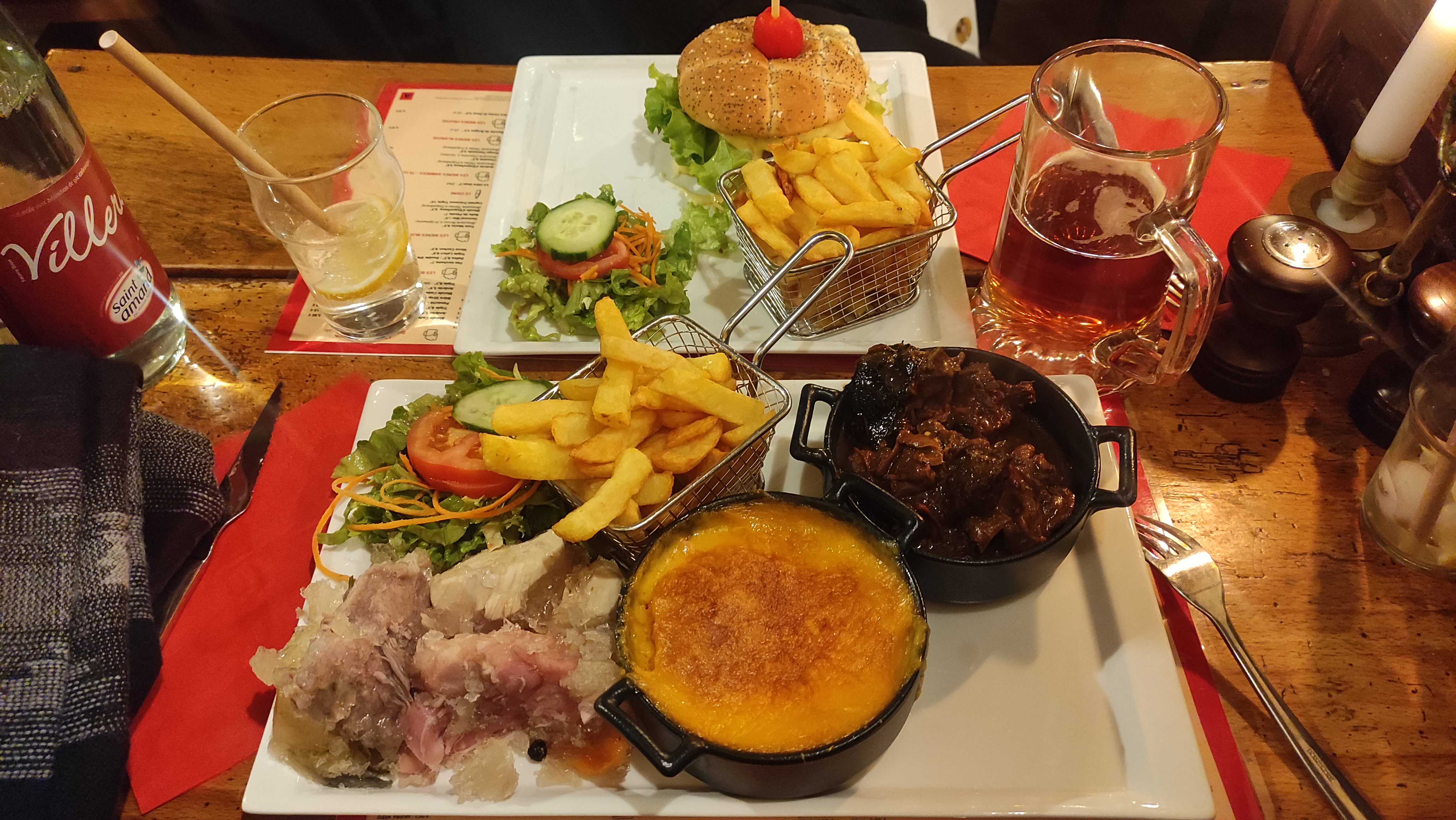 Plus que décevant. Commande carbonnade :en cuisson. Passons commande potchwelch :attention nous dit on il est très vinaigré. Passons donc au petit salé lillois insipide et les frites sont en petite quantité et trop cuites je dirais même de coloris plus que foncé. En colère pour ce service, nous en avions un bon souvenir. Que se passe t'il?