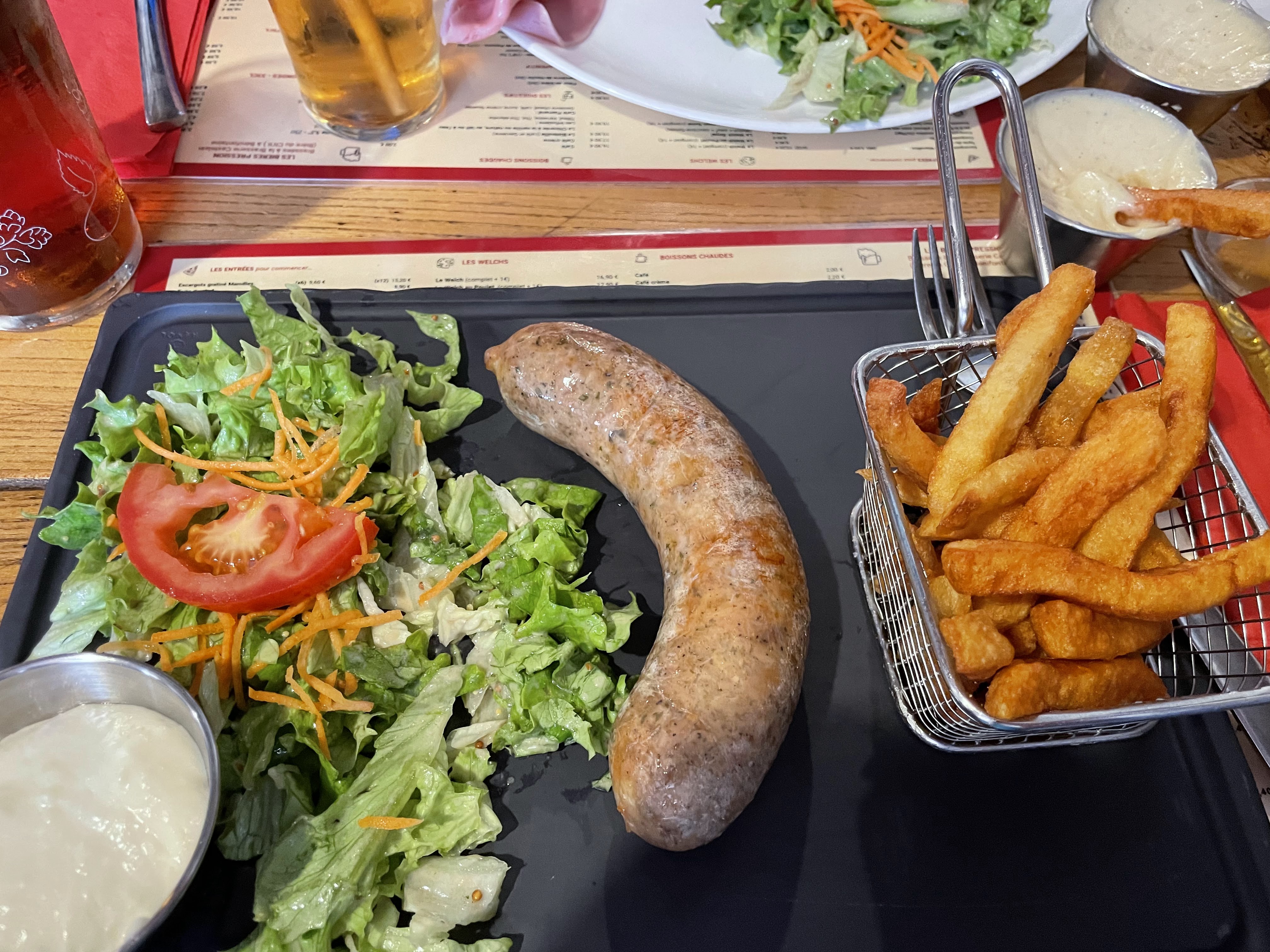 C'est le Meilleur welsh que j'ai mangé sur Lille. Frites cuites à la graisse de bœuf. Excellentes. La déco est chouette. Service efficace et rapide.