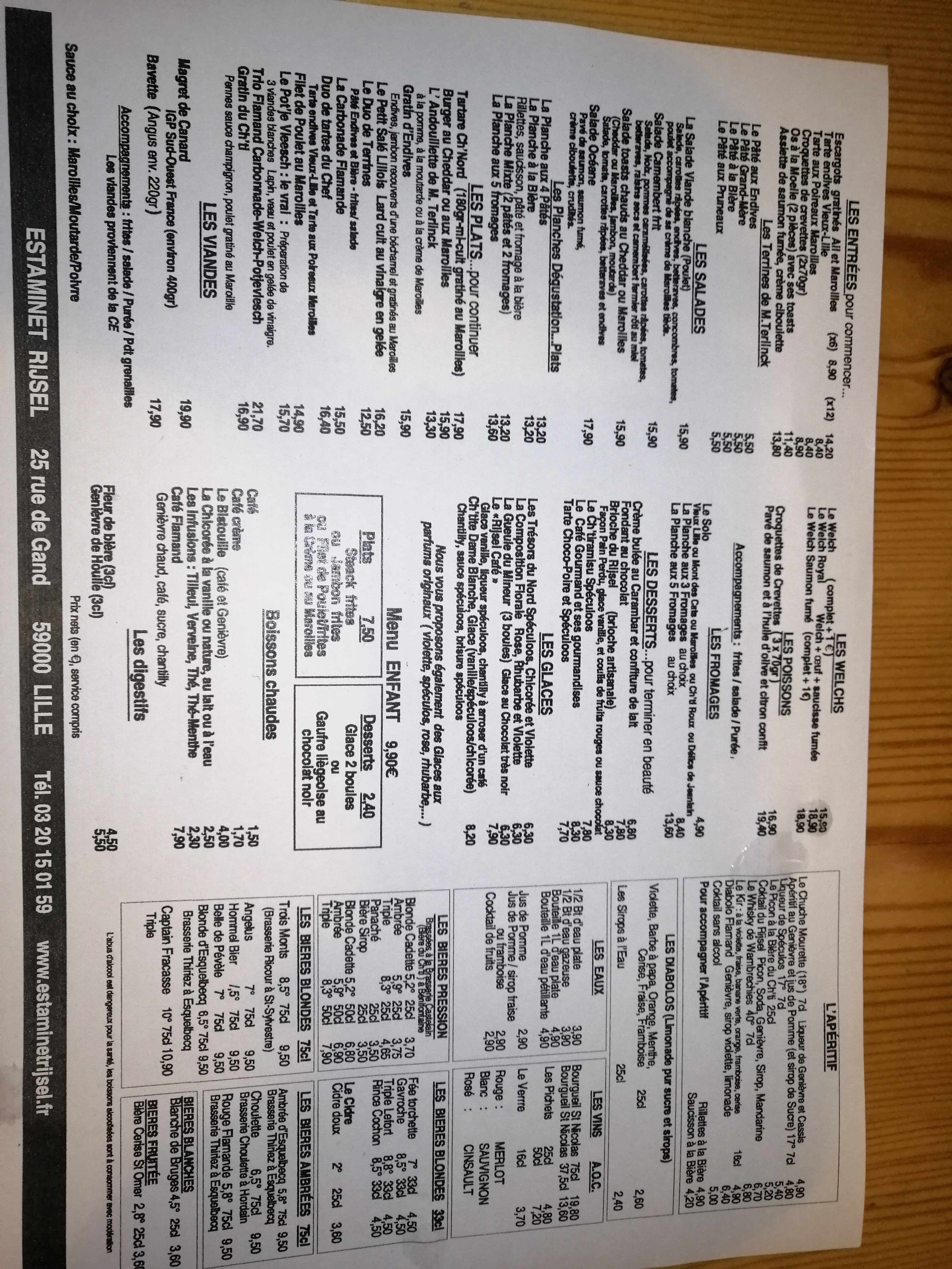 Accueil chaleureux,décoration typique du Nord, Cuisine excellente avec ses menus de ch'nord....et proposition de trois menus pour enfants. Je recommande fortement cet Estaminet et nous y retournerons avec plaisir !!!