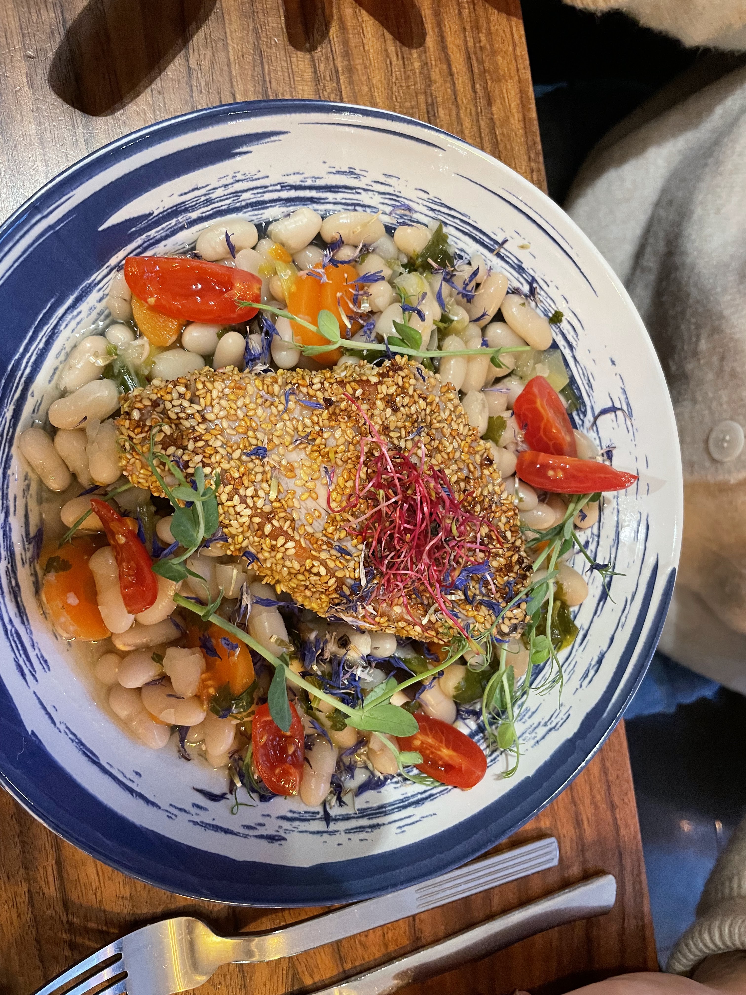 Au top. Accueil chaleureux et identifié par une ardoise avec son prénom. On avait réservé. Belle présentation dans l'assiette et jolie décoration murale Bravo l'artiste.