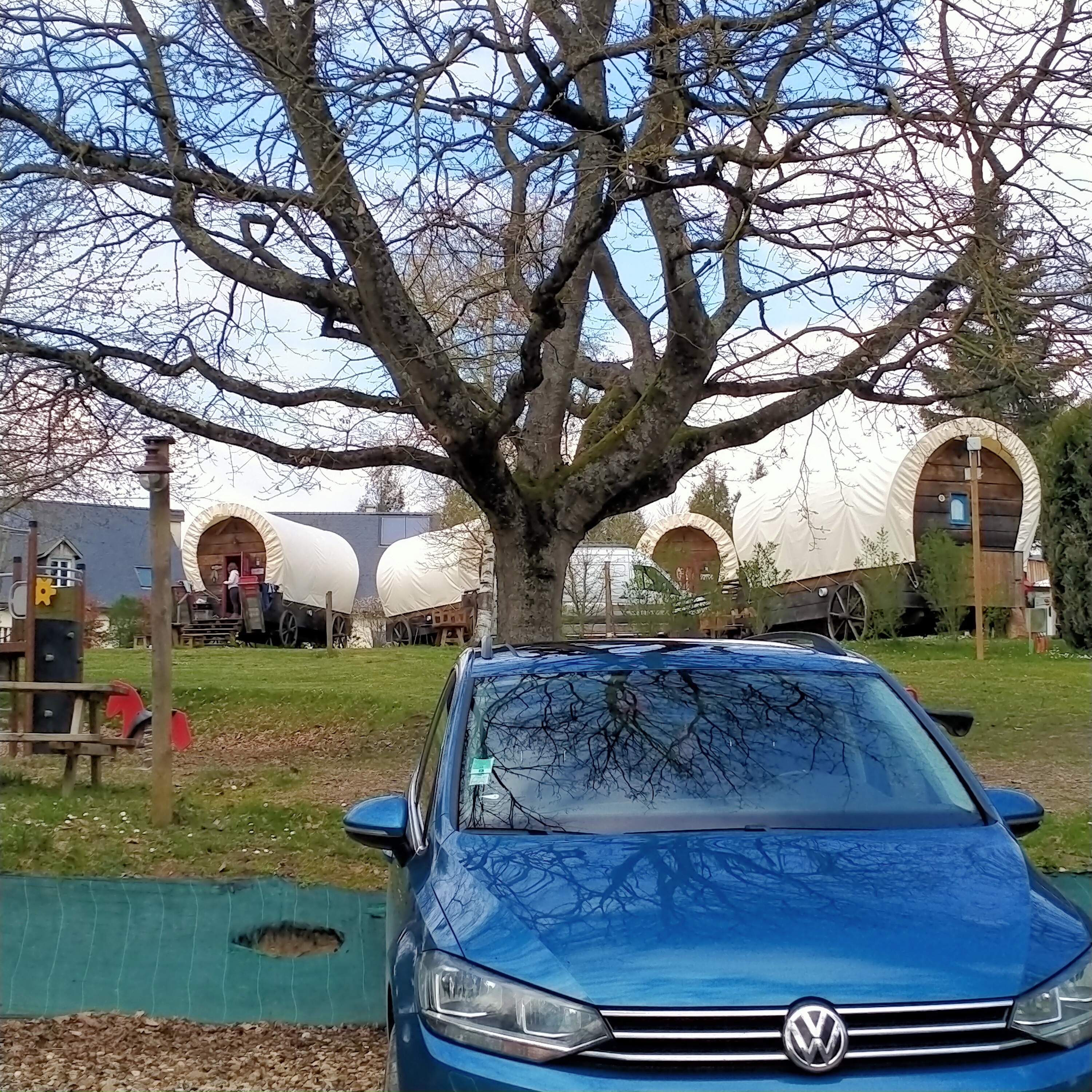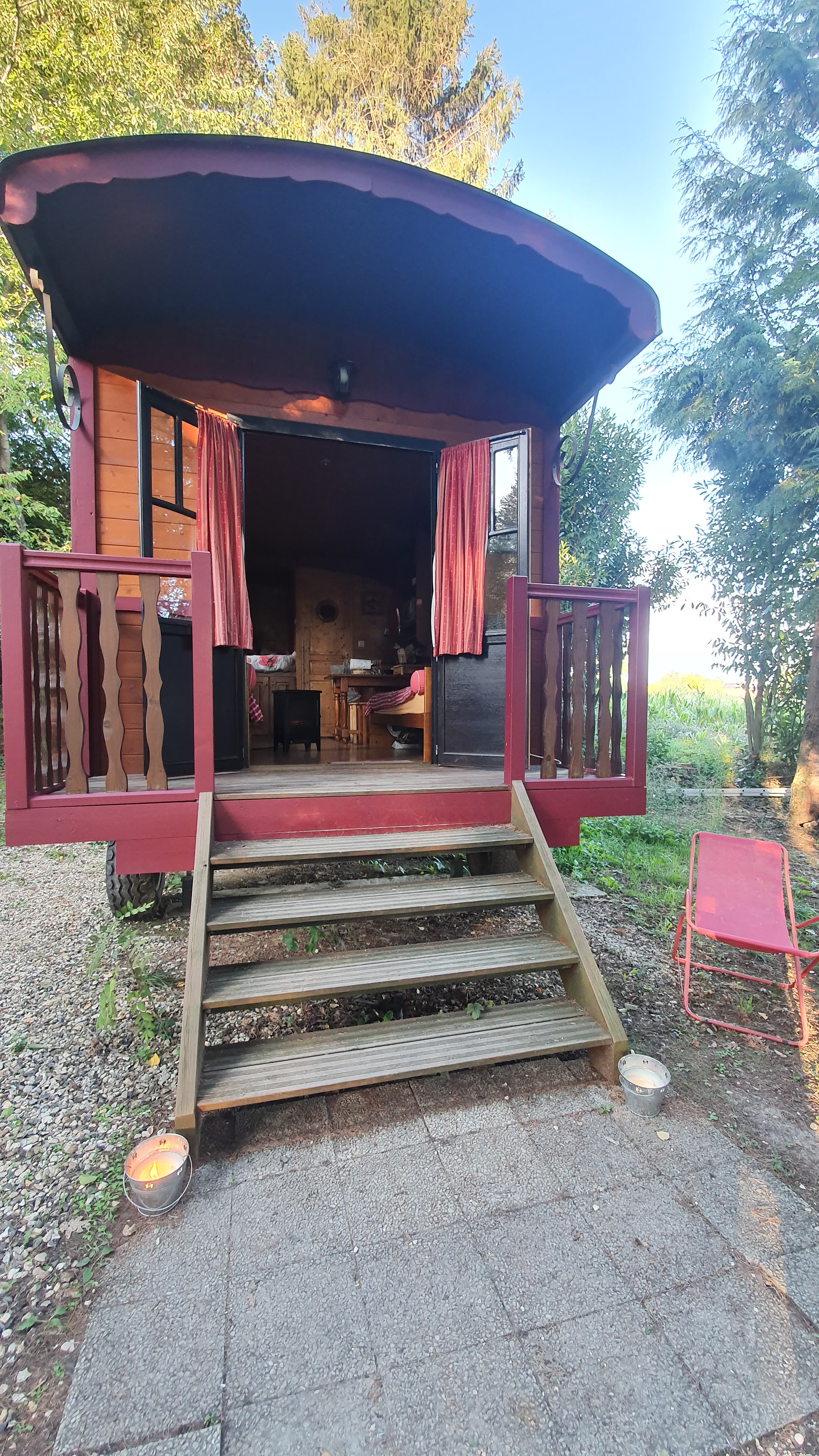 Les enfants étaient ravis du lieu, du dépaysement, de la couchette en hauteur dans le chariot. Le petit déjeuner nickel. Une ballade dans le domaine pour voir les jolies cabanes pour un prochain séjour. Les enfants ont pu jouer a un petit parc de jeux et aller a la piscine. Qui était un peu fraîche pour nous mais eux n ont pas eu froid aux yeux. Nous reviendrons